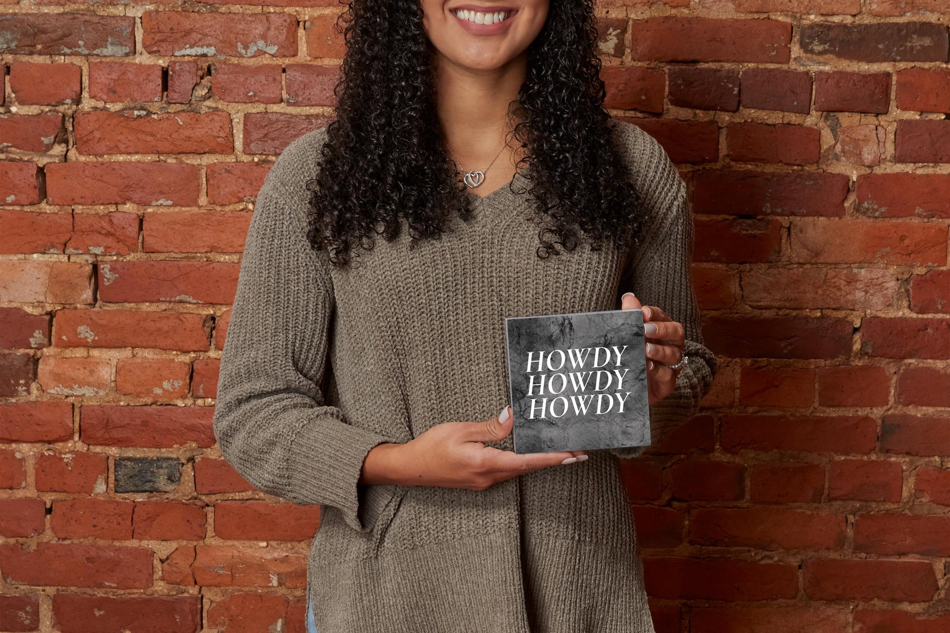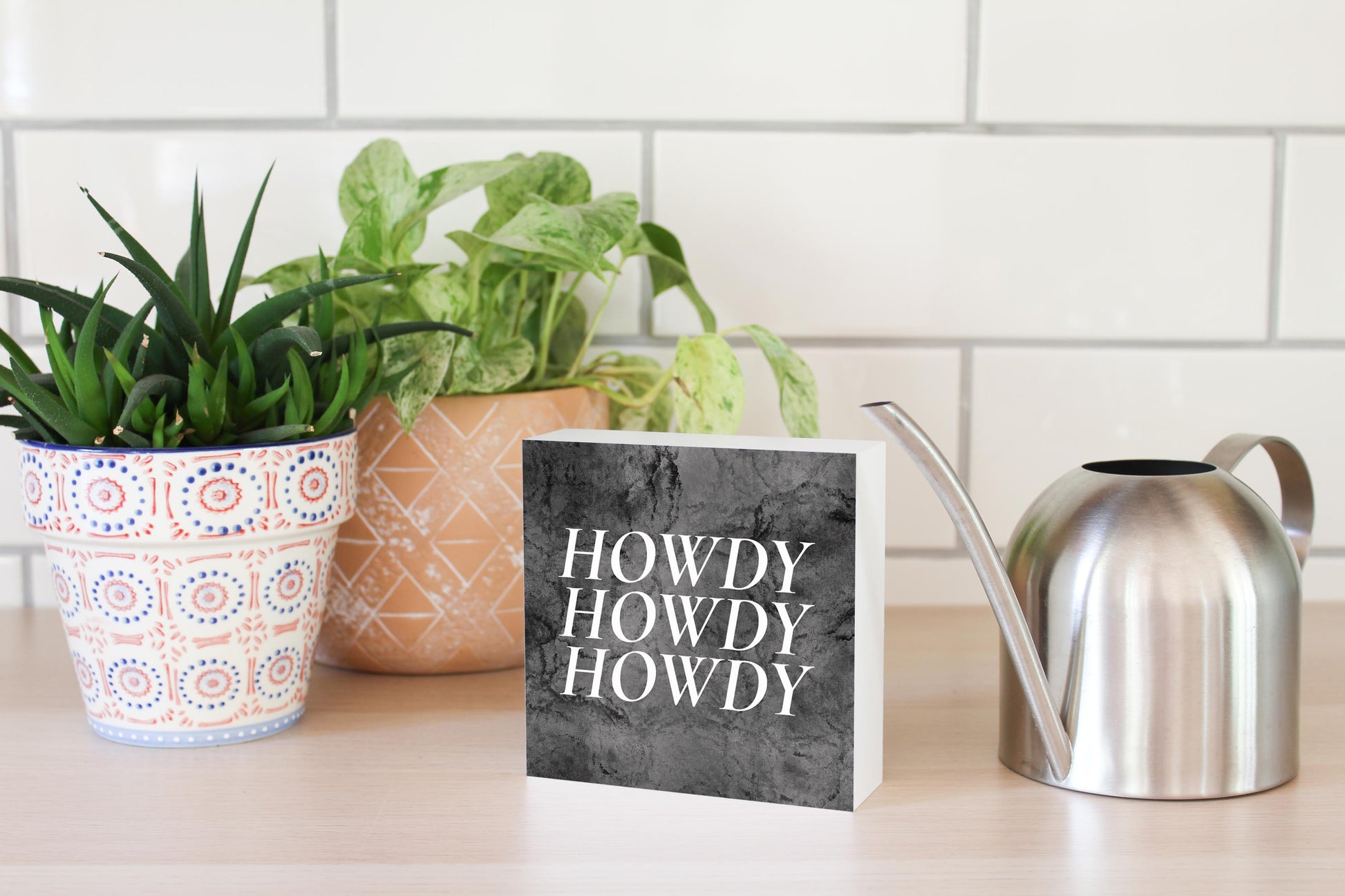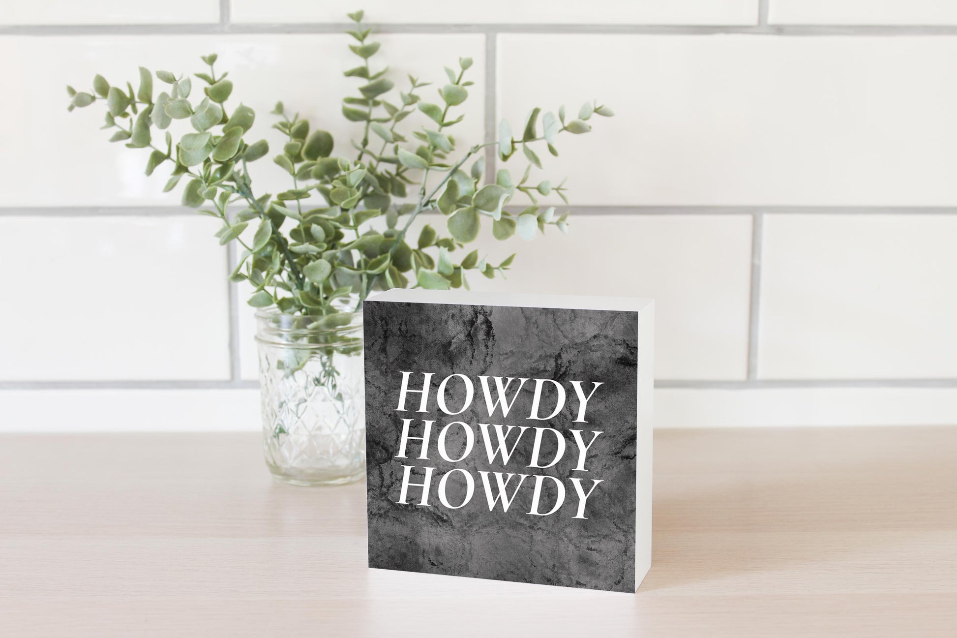 Minimalistic B&W Texas Textured Howdy | Wood Block | Eaches | Min 4
