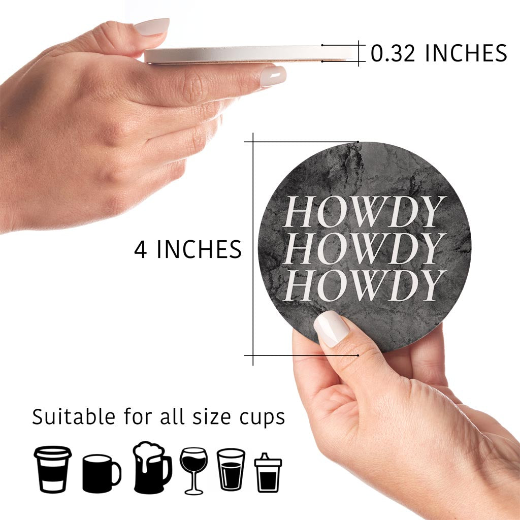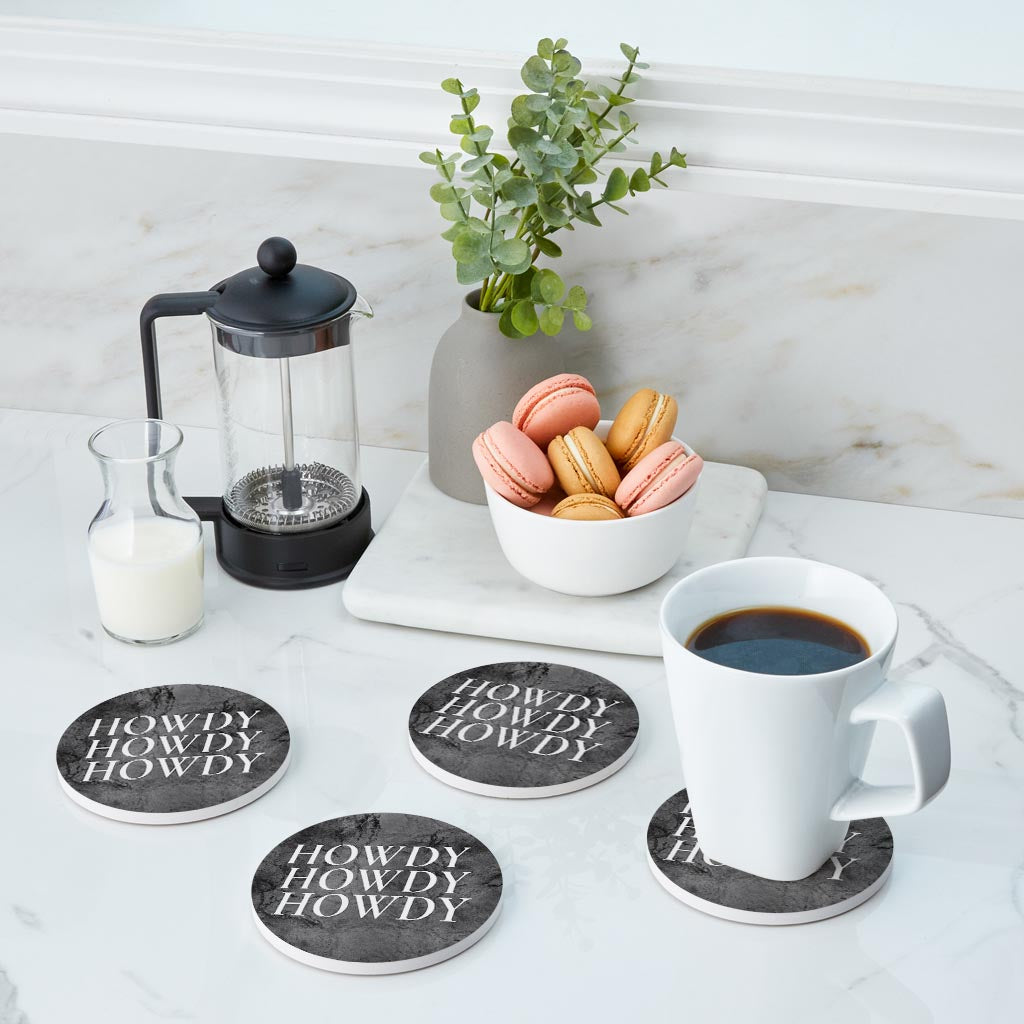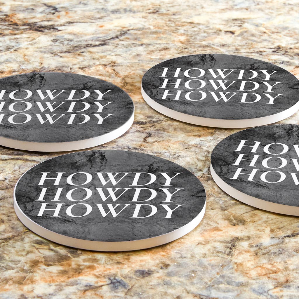Minimalistic B&W Texas Textured Howdy | Absorbent Coasters | Set of 4 | Min 2