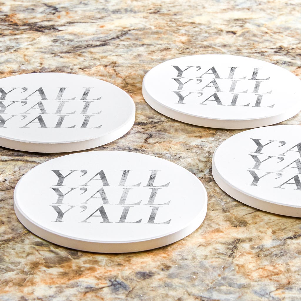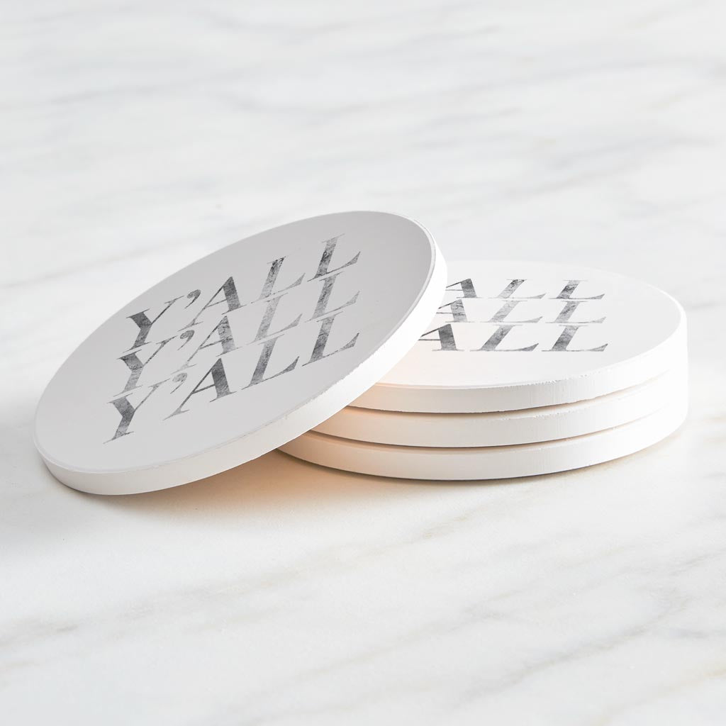 Minimalistic B&W Texas Textured Yall | Absorbent Coasters | Set of 4 | Min 2