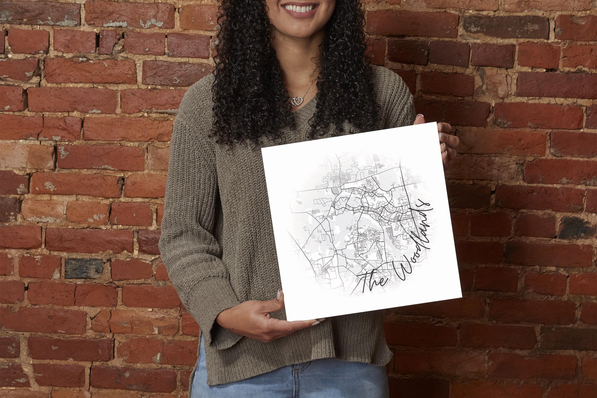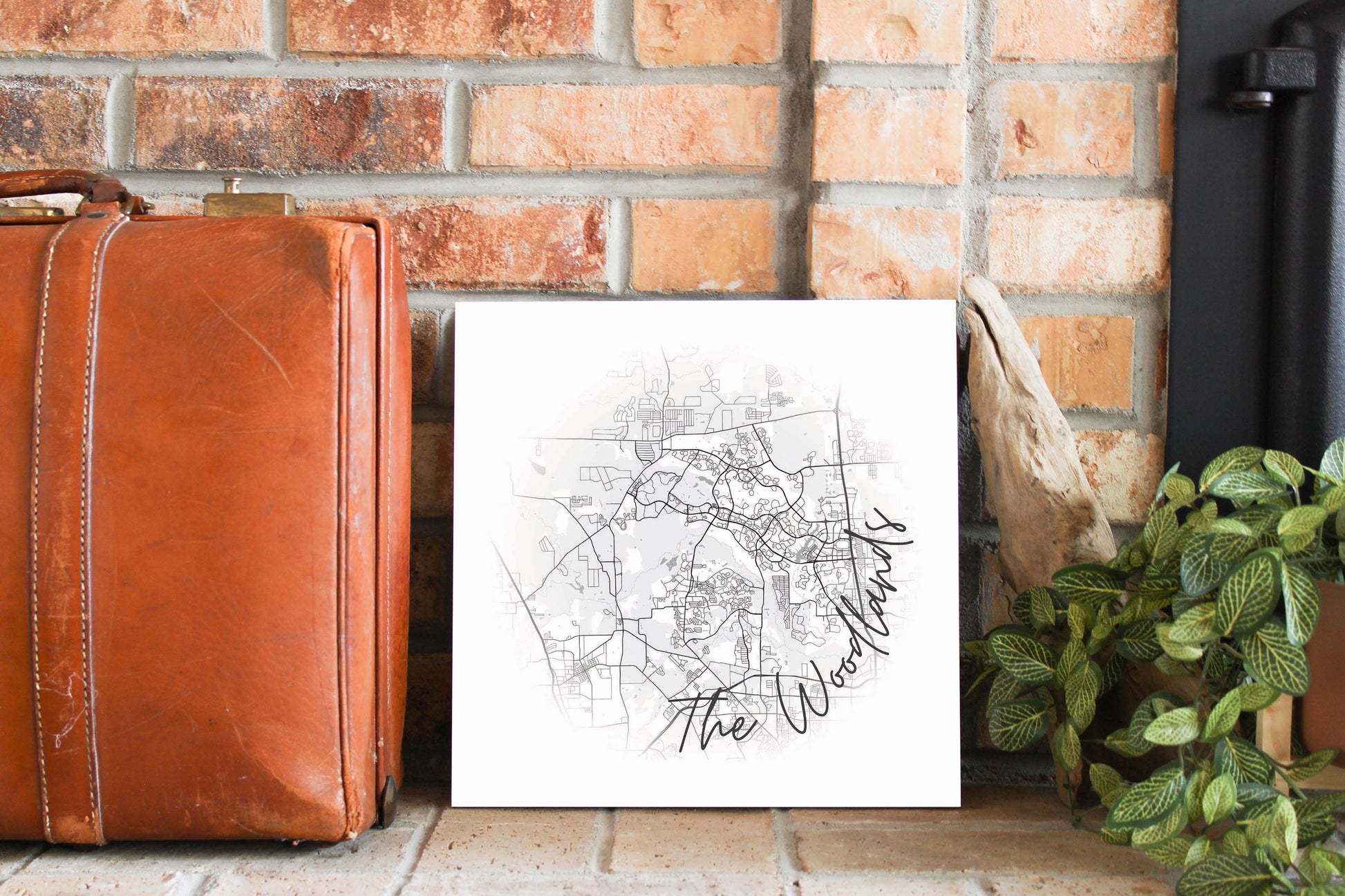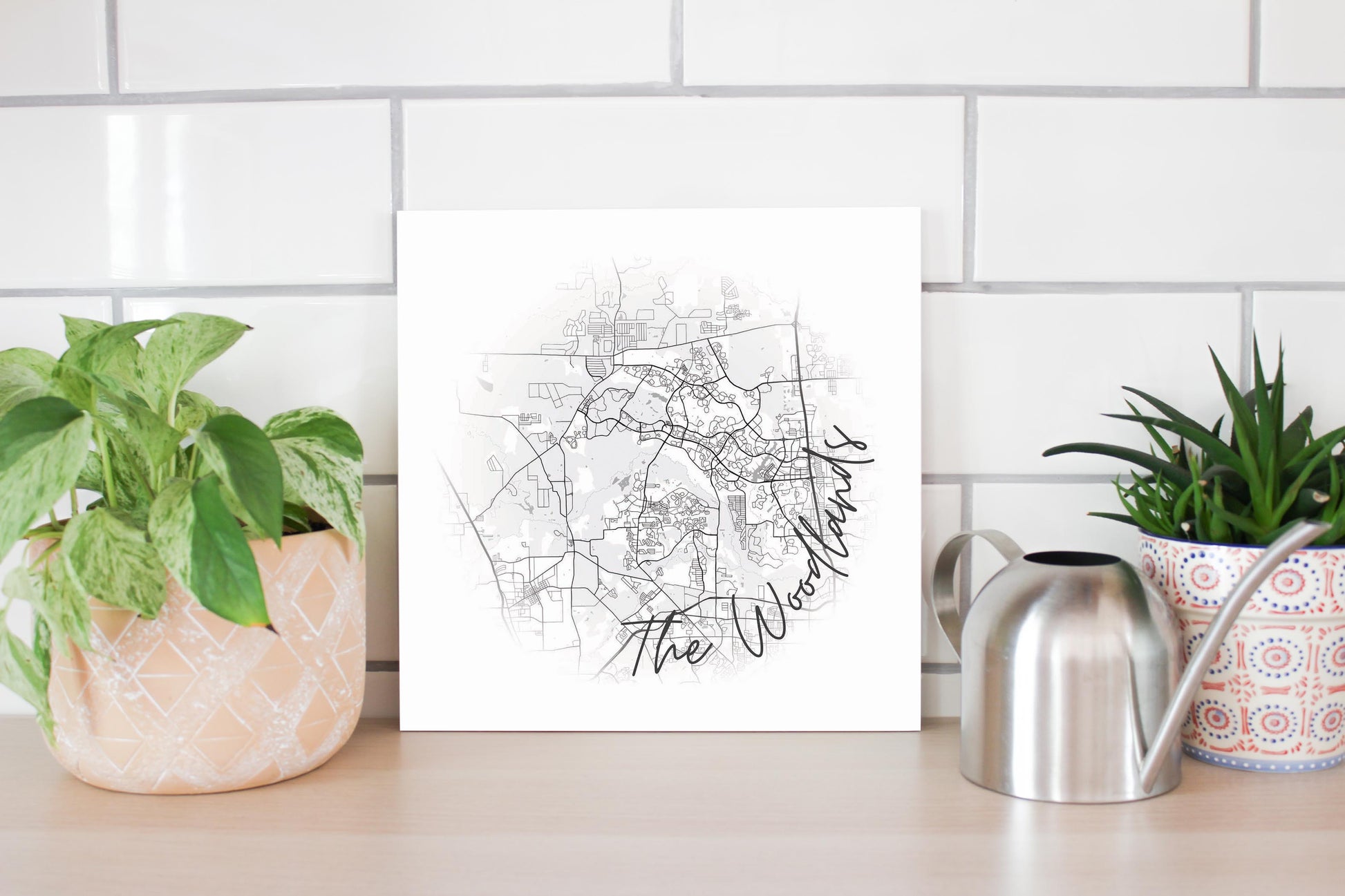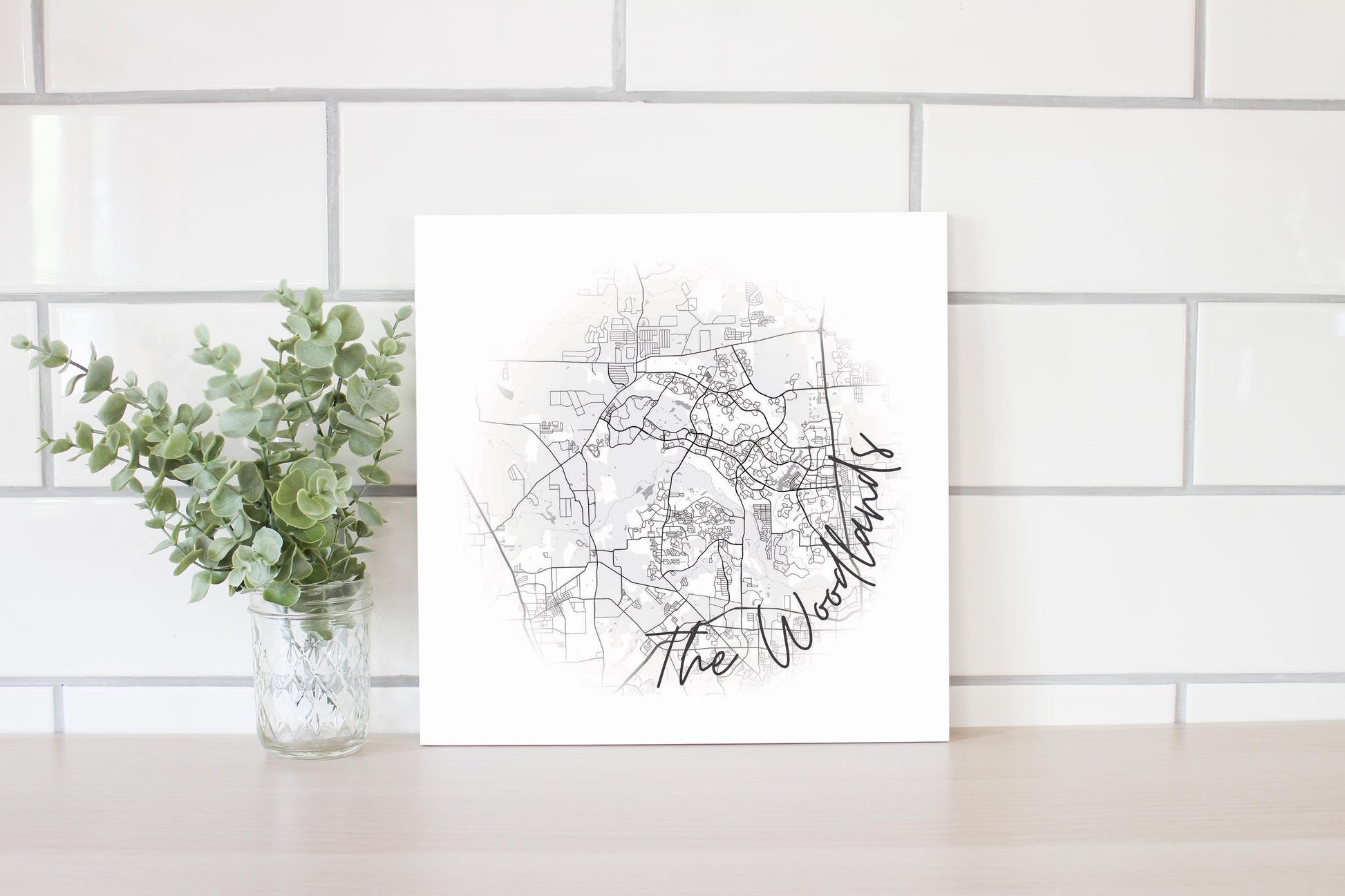 Minimalistic B&W Texas The Woodlands Circle Map | Wood Sign | Eaches | Min 2