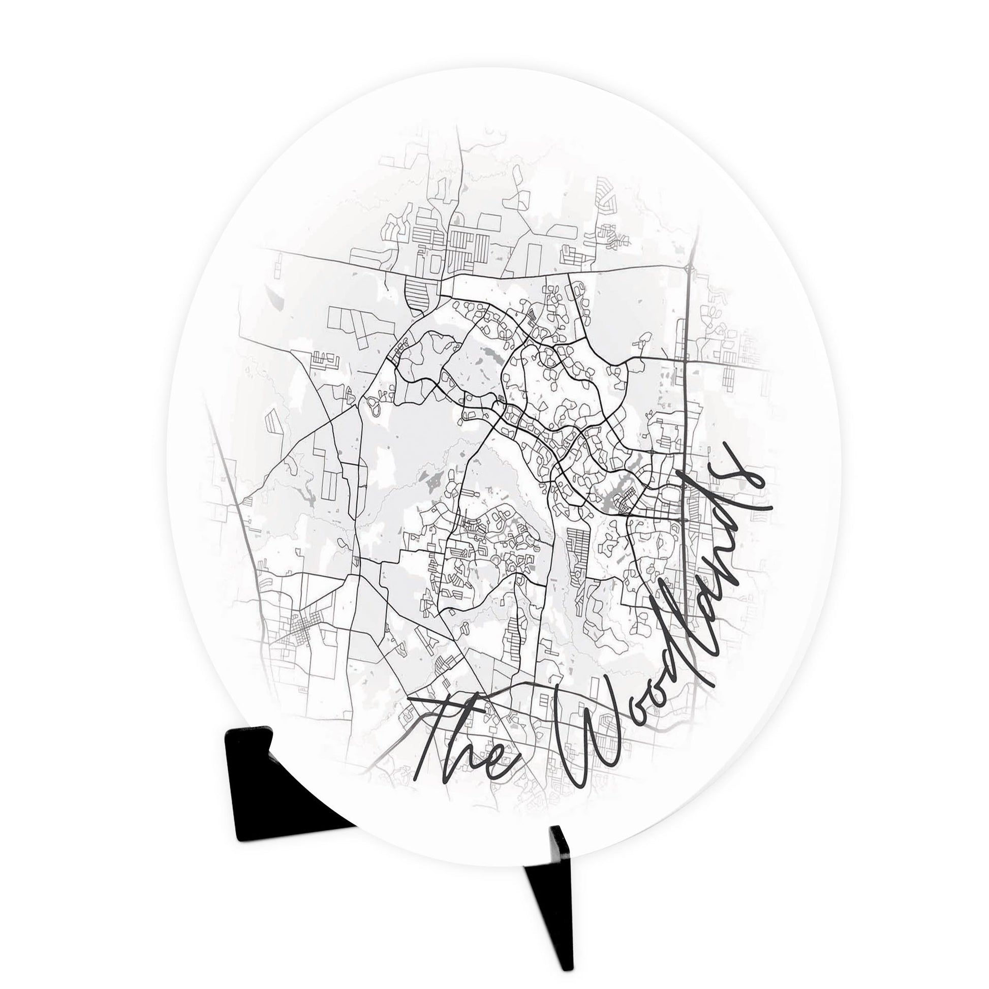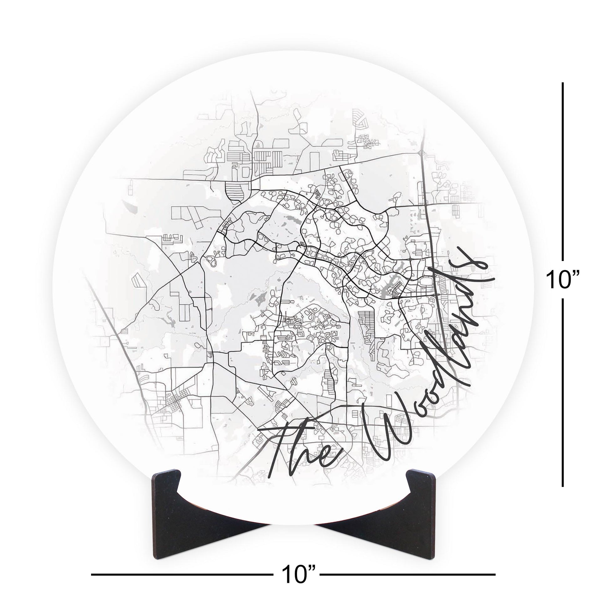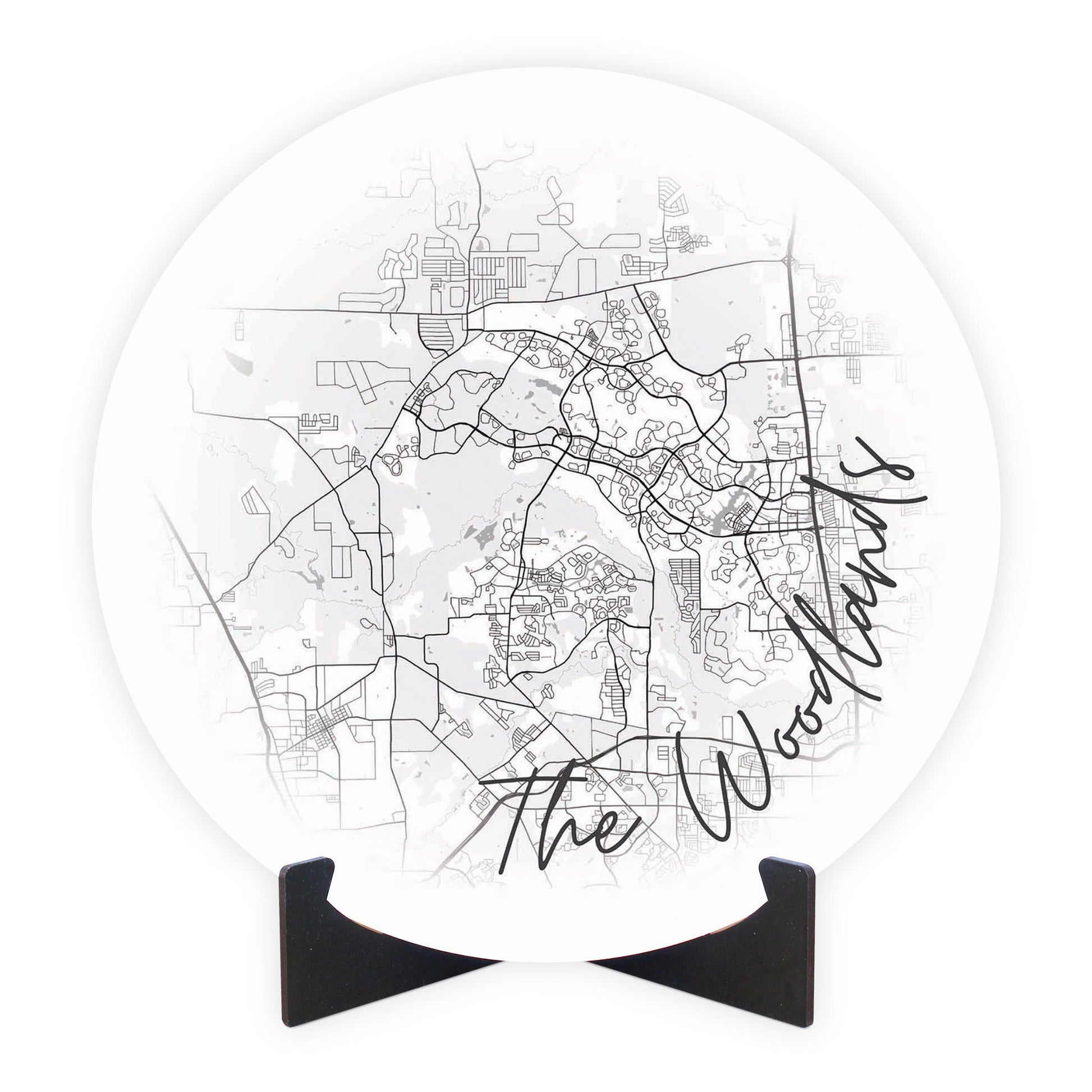 Minimalistic B&W Texas The Woodlands Circle Map | Wood Sign | Eaches | Min 1