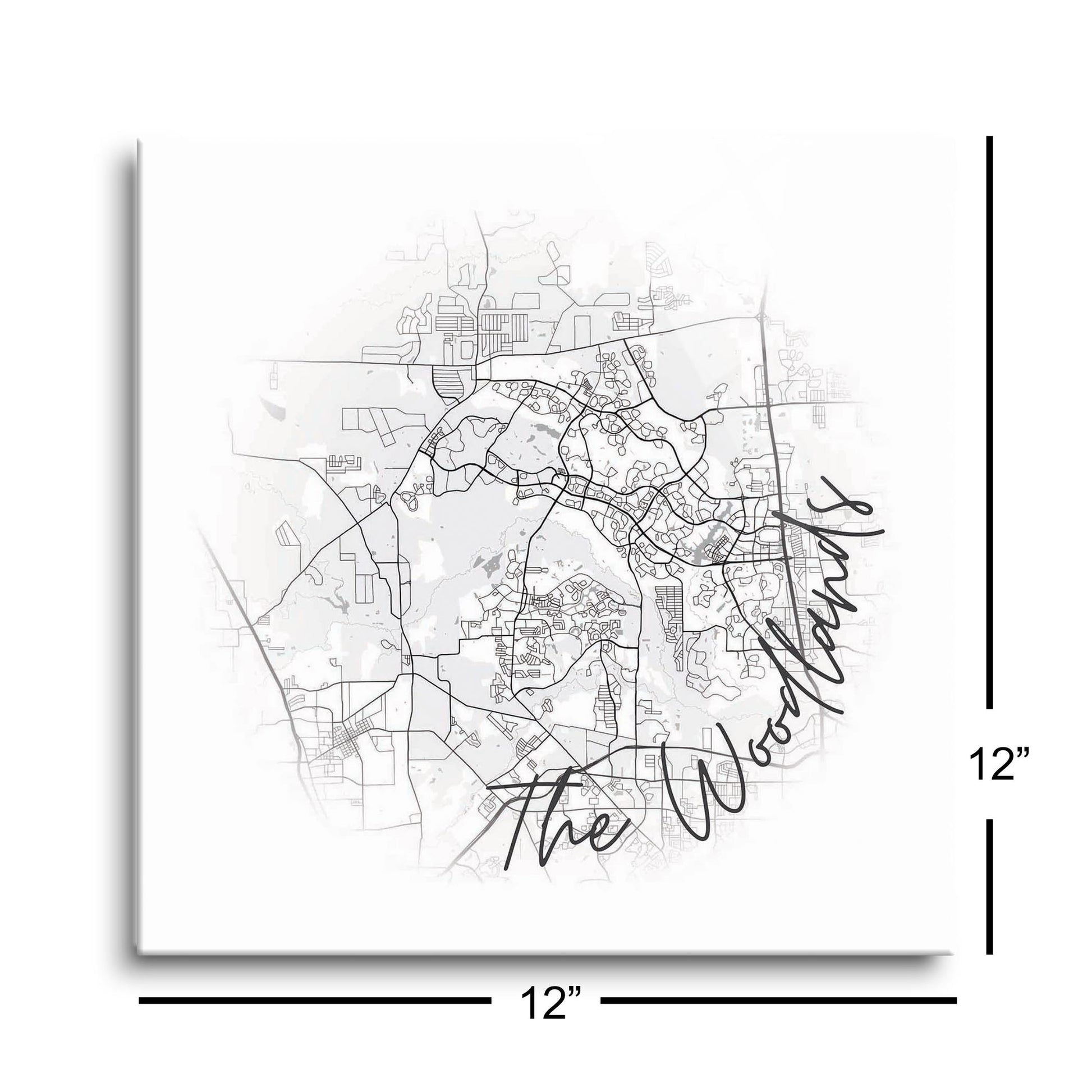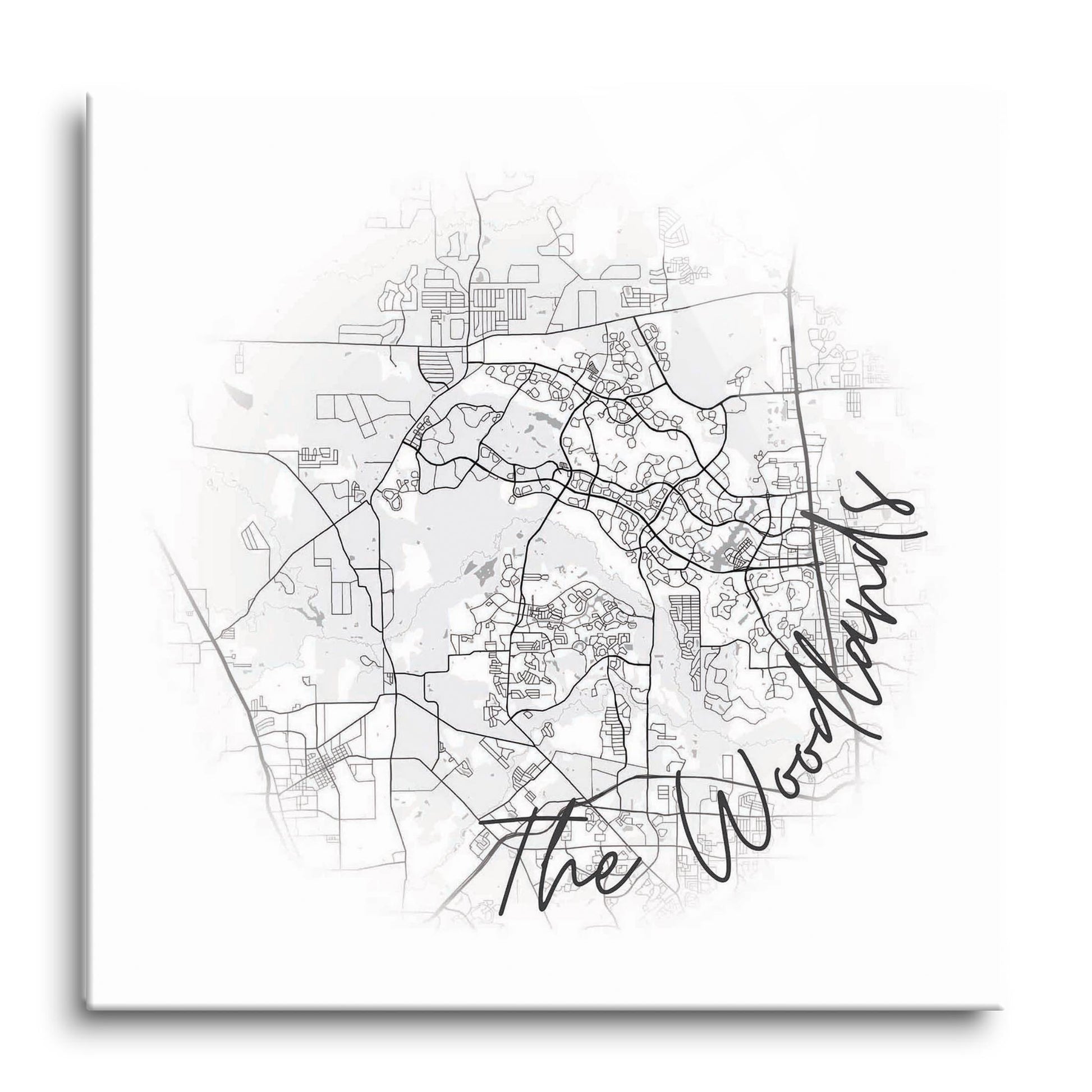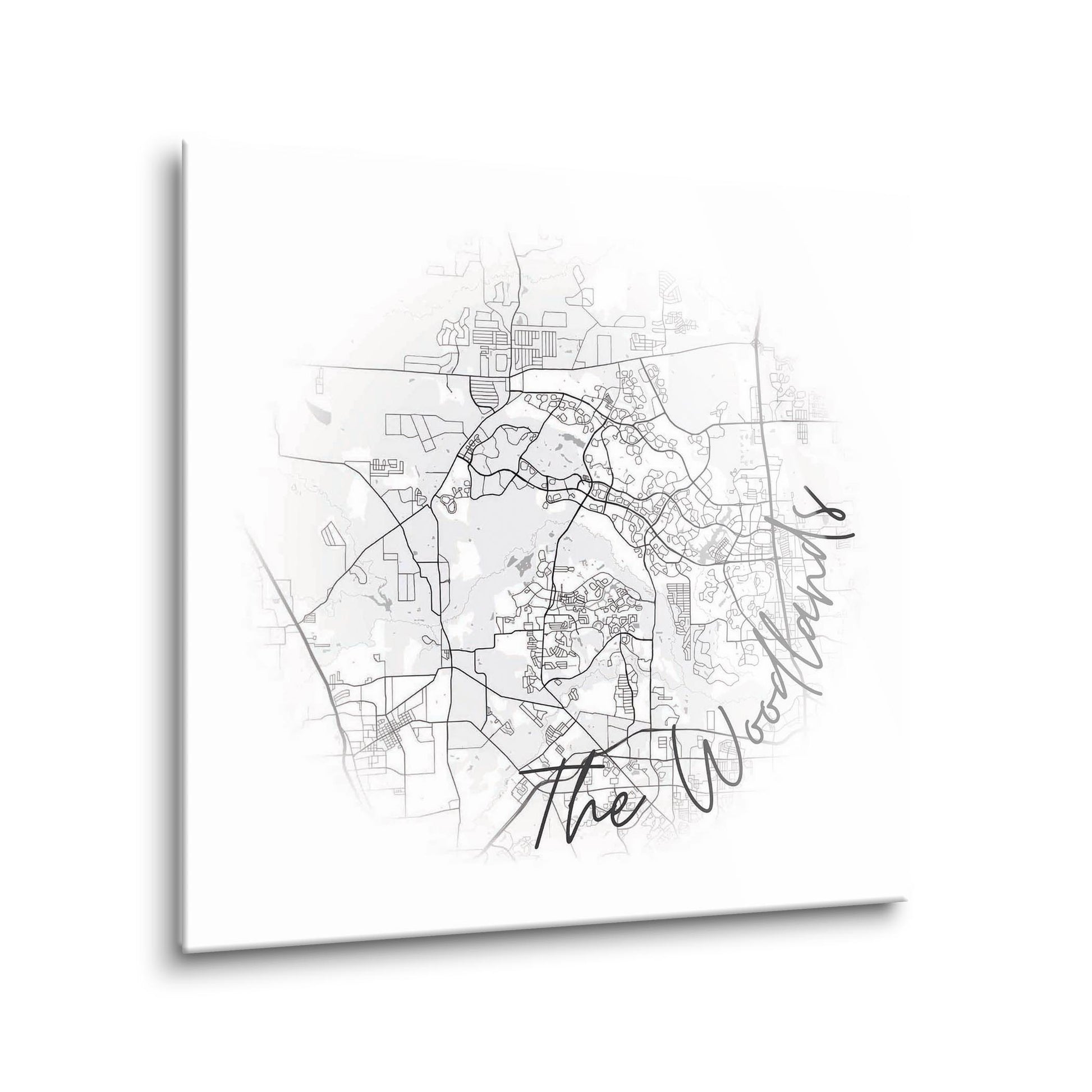 Minimalistic B&W Texas The Woodlands Circle Map | Hi-Def Glass Art | Eaches | Min 1