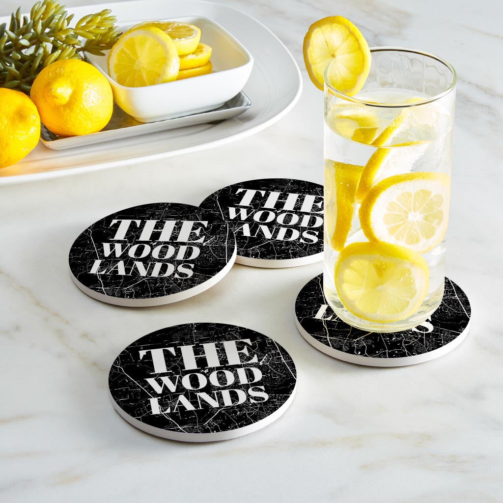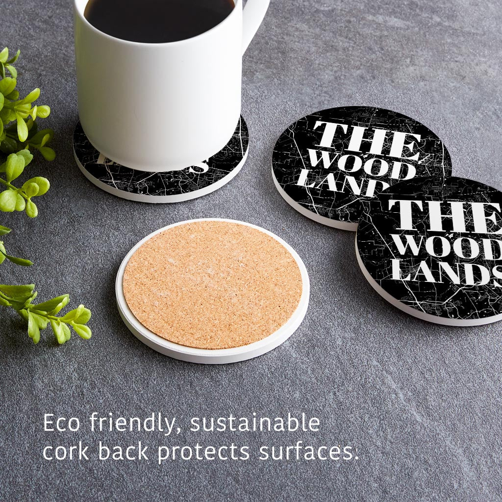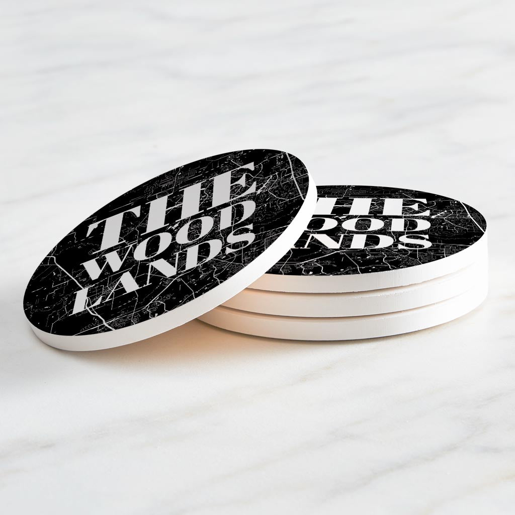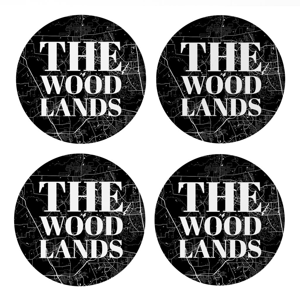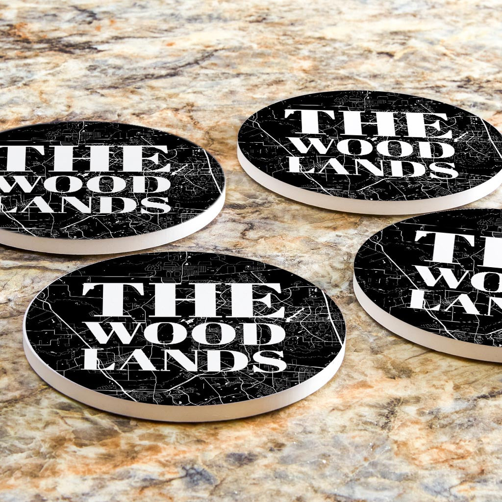 Minimalistic B&W Texas The Woodlands Map| Absorbent Coasters | Set of 4 | Min 2