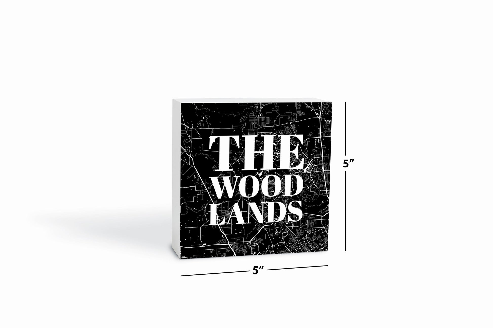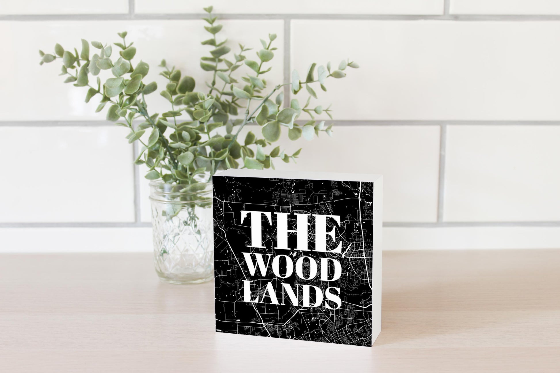 Minimalistic B&W Texas The Woodlands Map | Wood Block | Eaches | Min 4