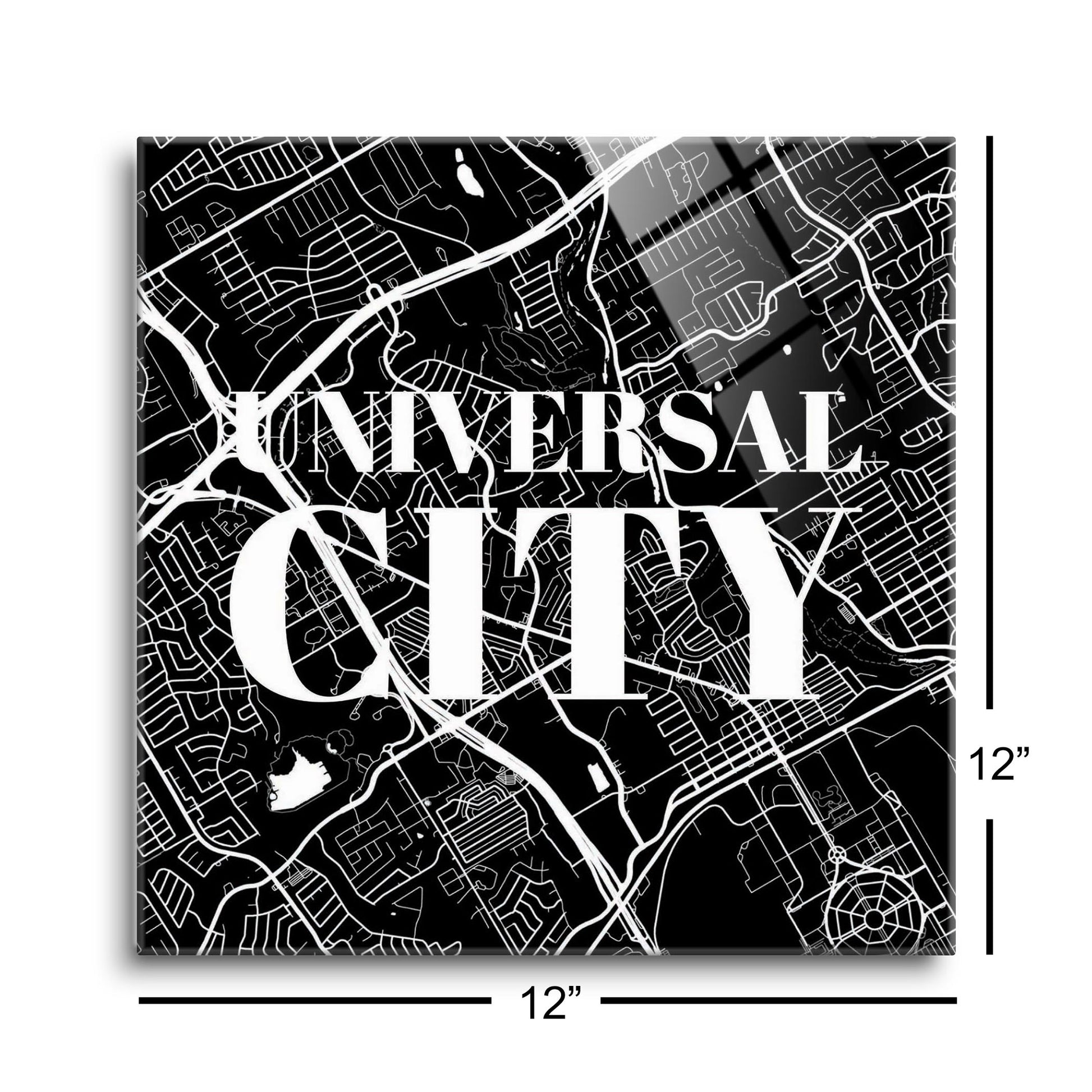 Minimalistic B&W Texas Universal City Map | Hi-Def Glass Art | Eaches | Min 1