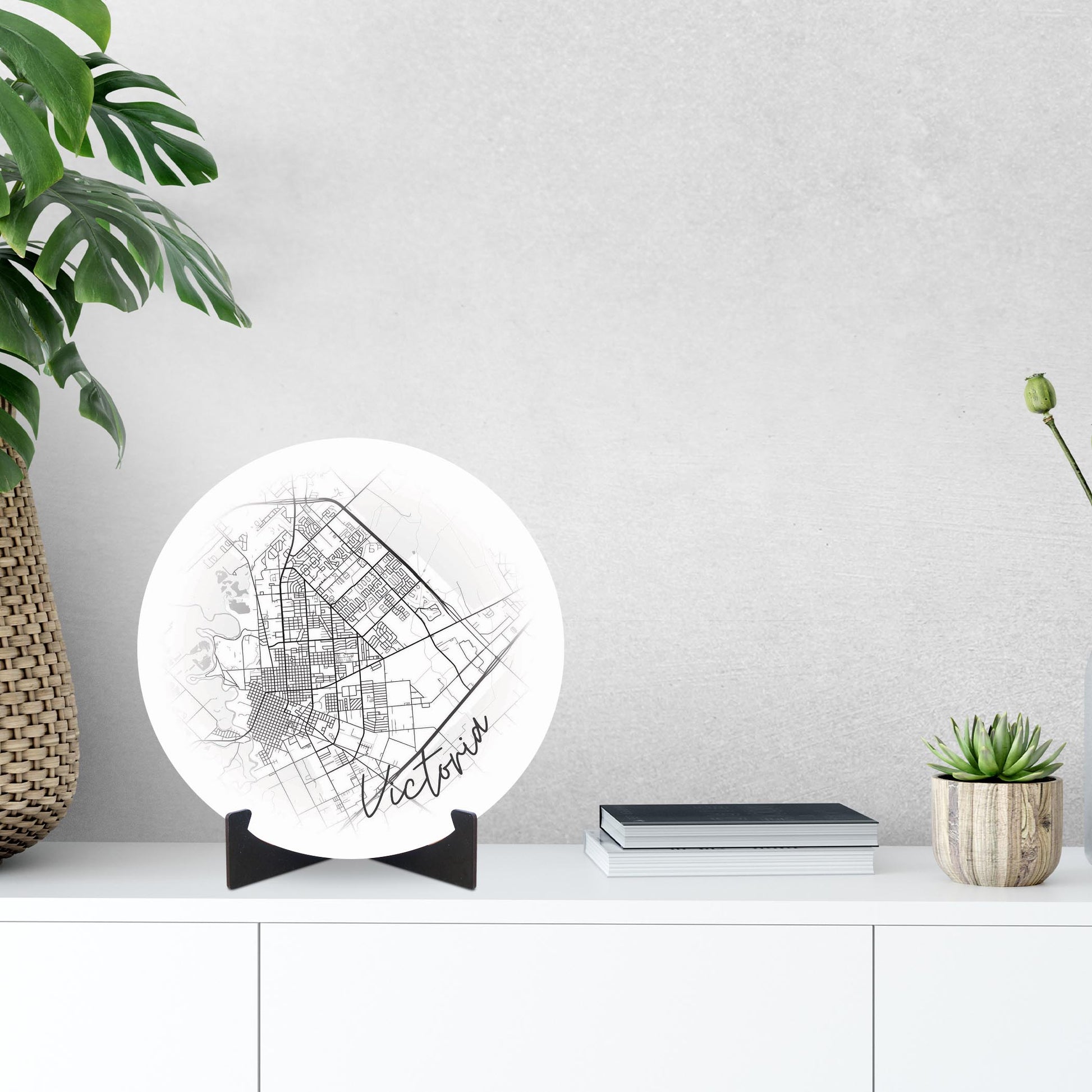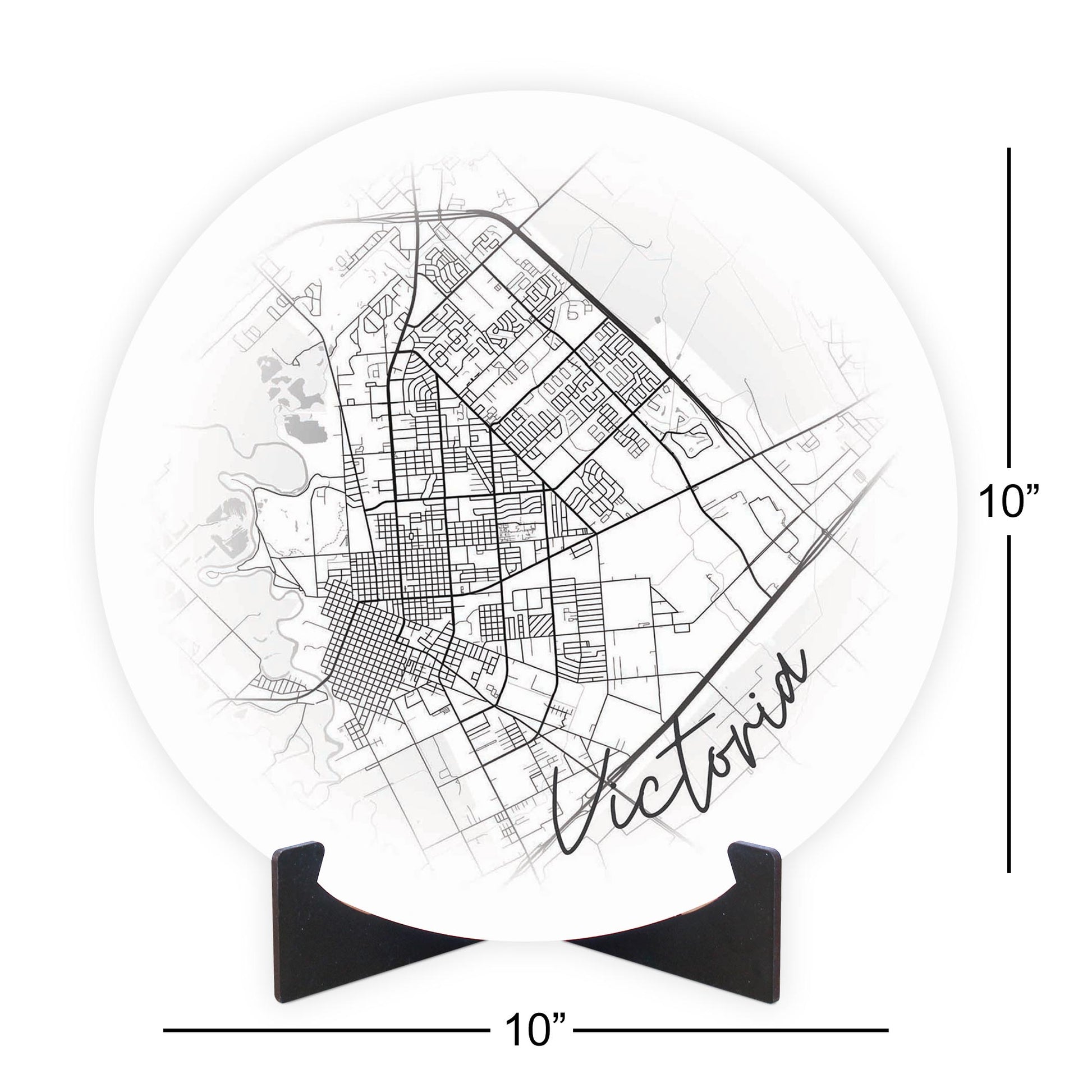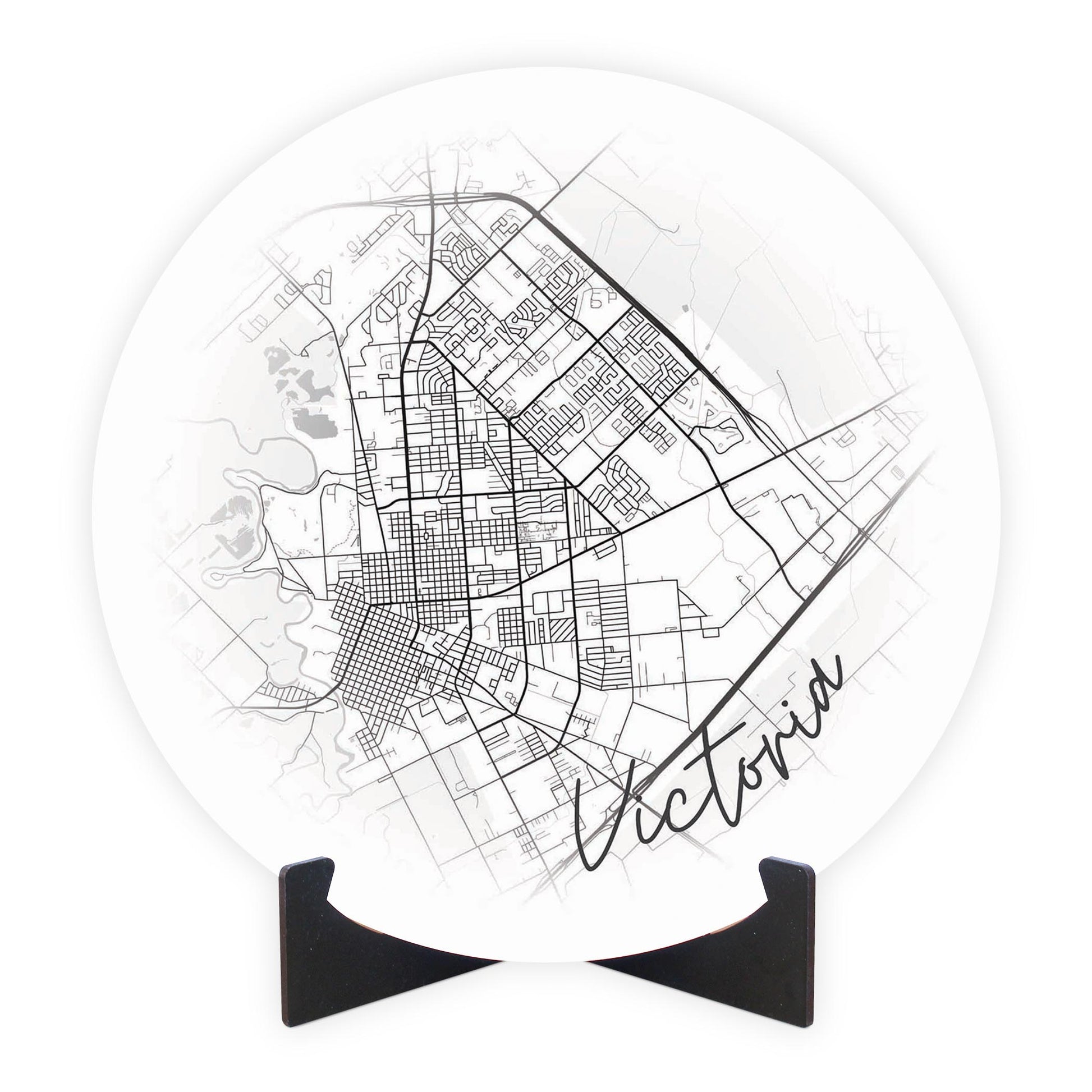 Minimalistic B&W Texas Victoria Circle Map| Wood Sign | Eaches | Min 1
