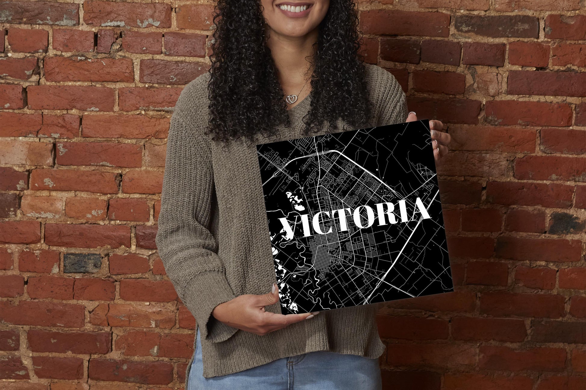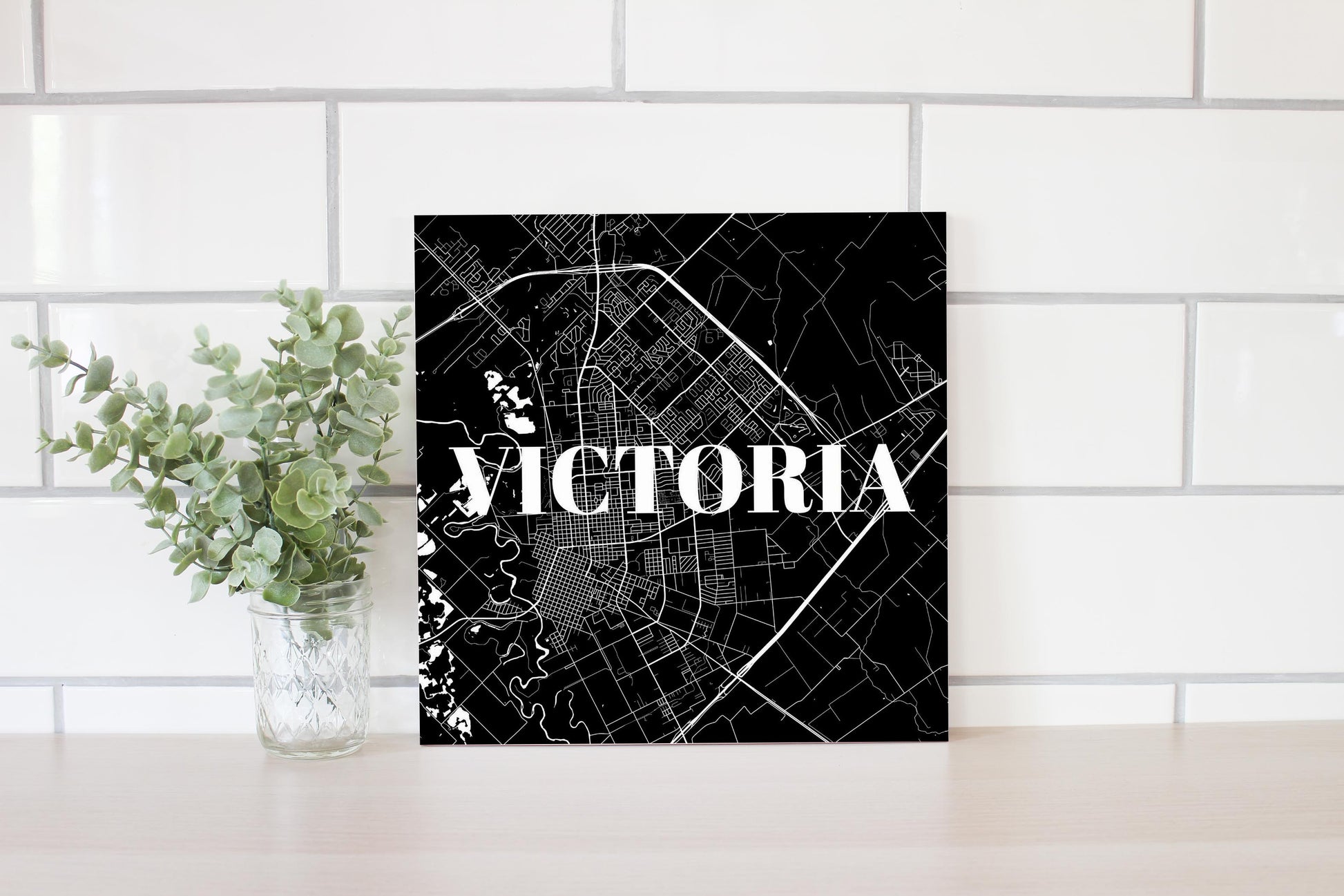 Minimalistic B&W Texas Victoria Map | Wood Sign | Eaches | Min 2