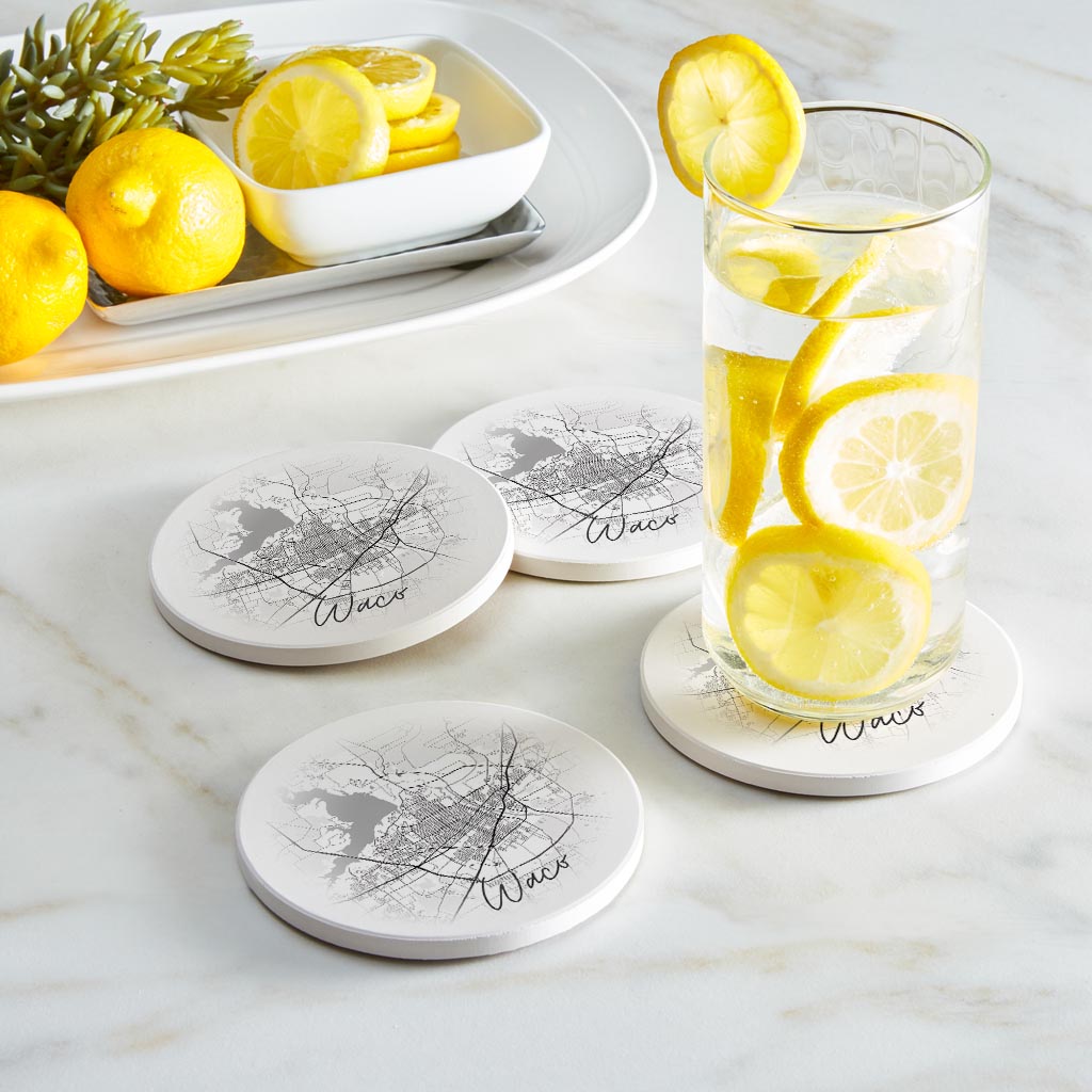 Minimalistic B&W Texas Waco Circle Map | Absorbent Coasters | Set of 4 | Min 2
