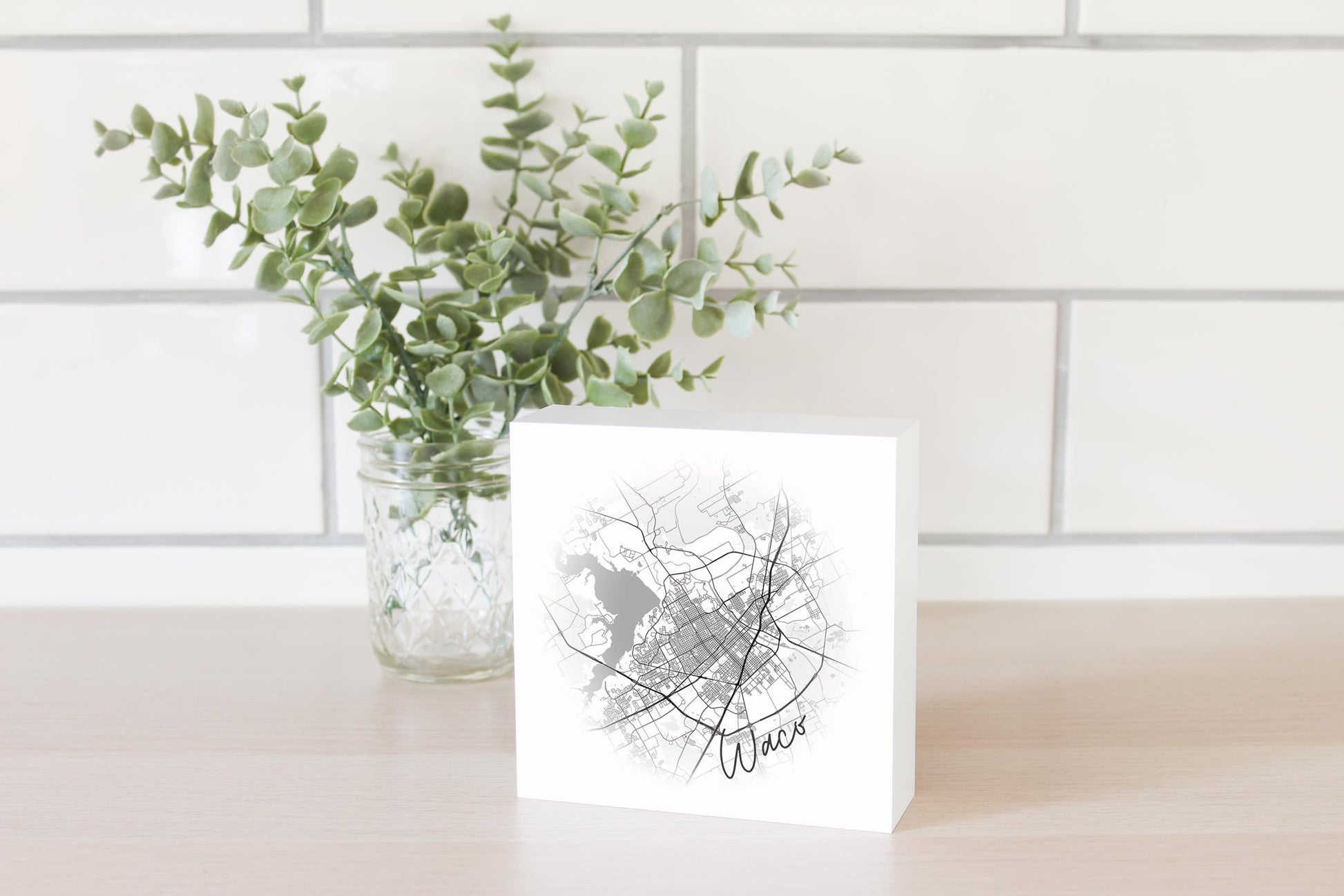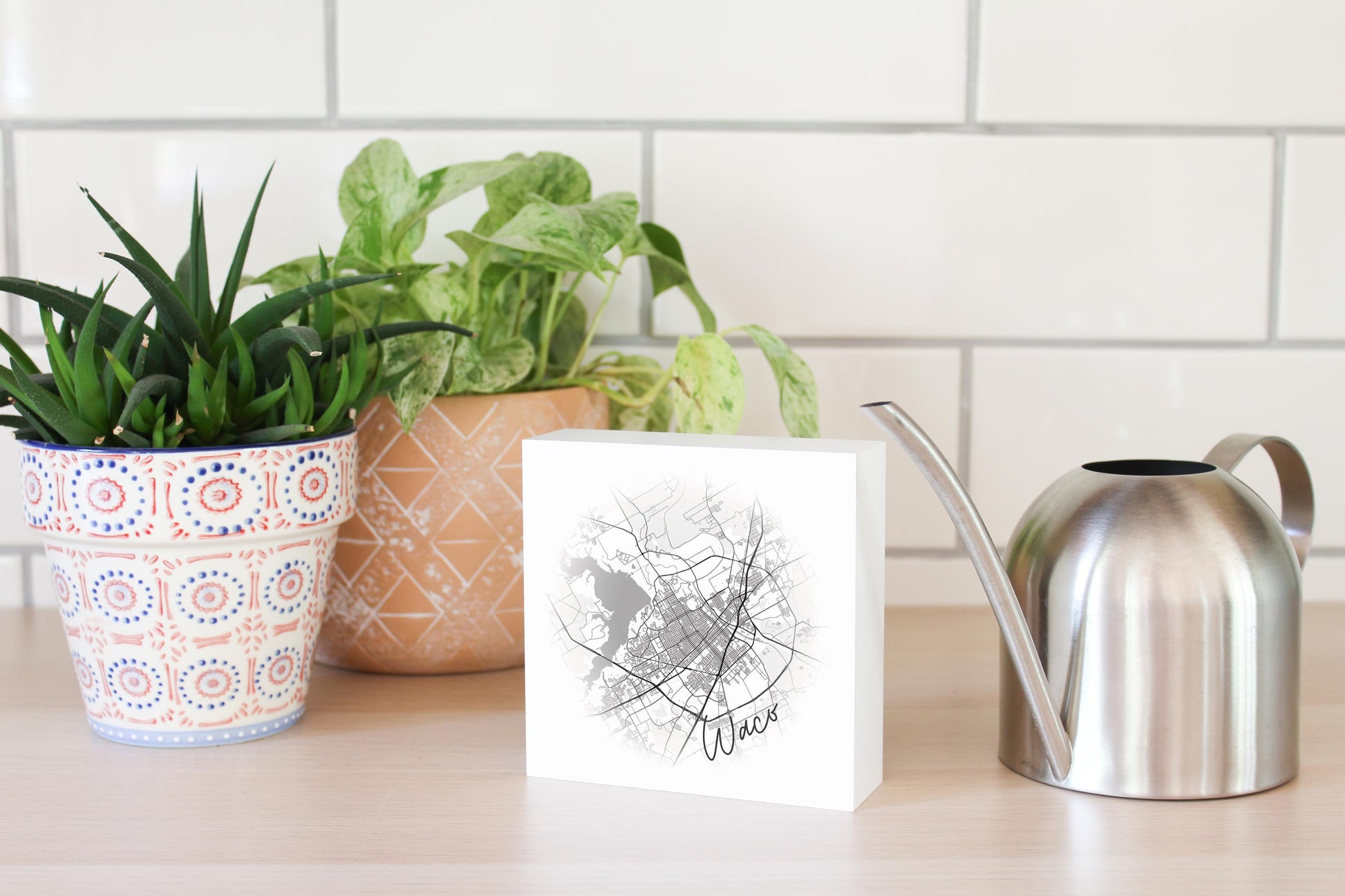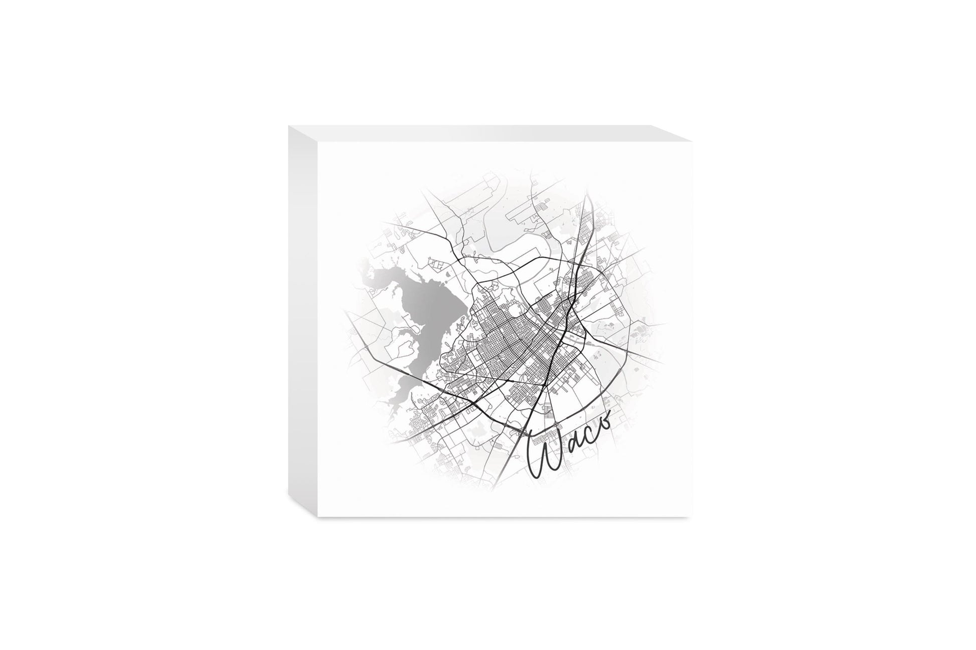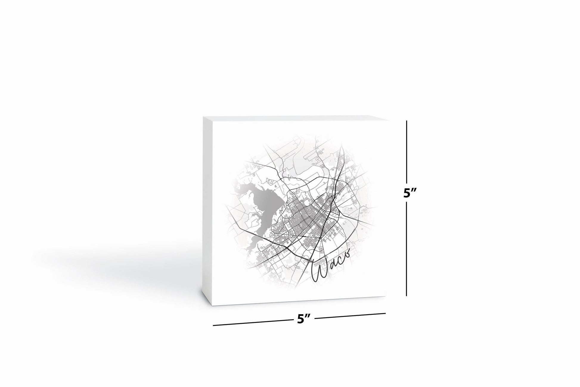 Minimalistic B&W Texas Waco Circle Map | Wood Block | Eaches | Min 4