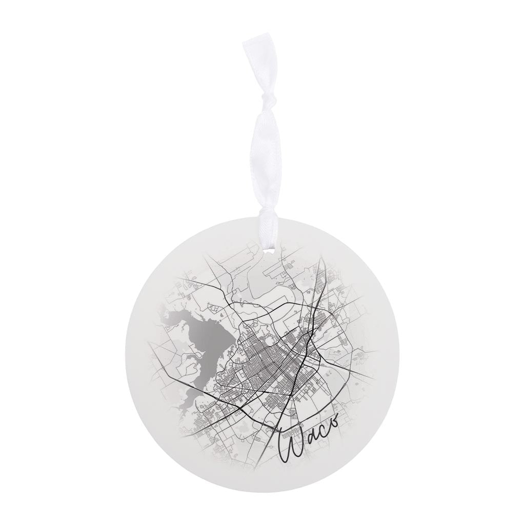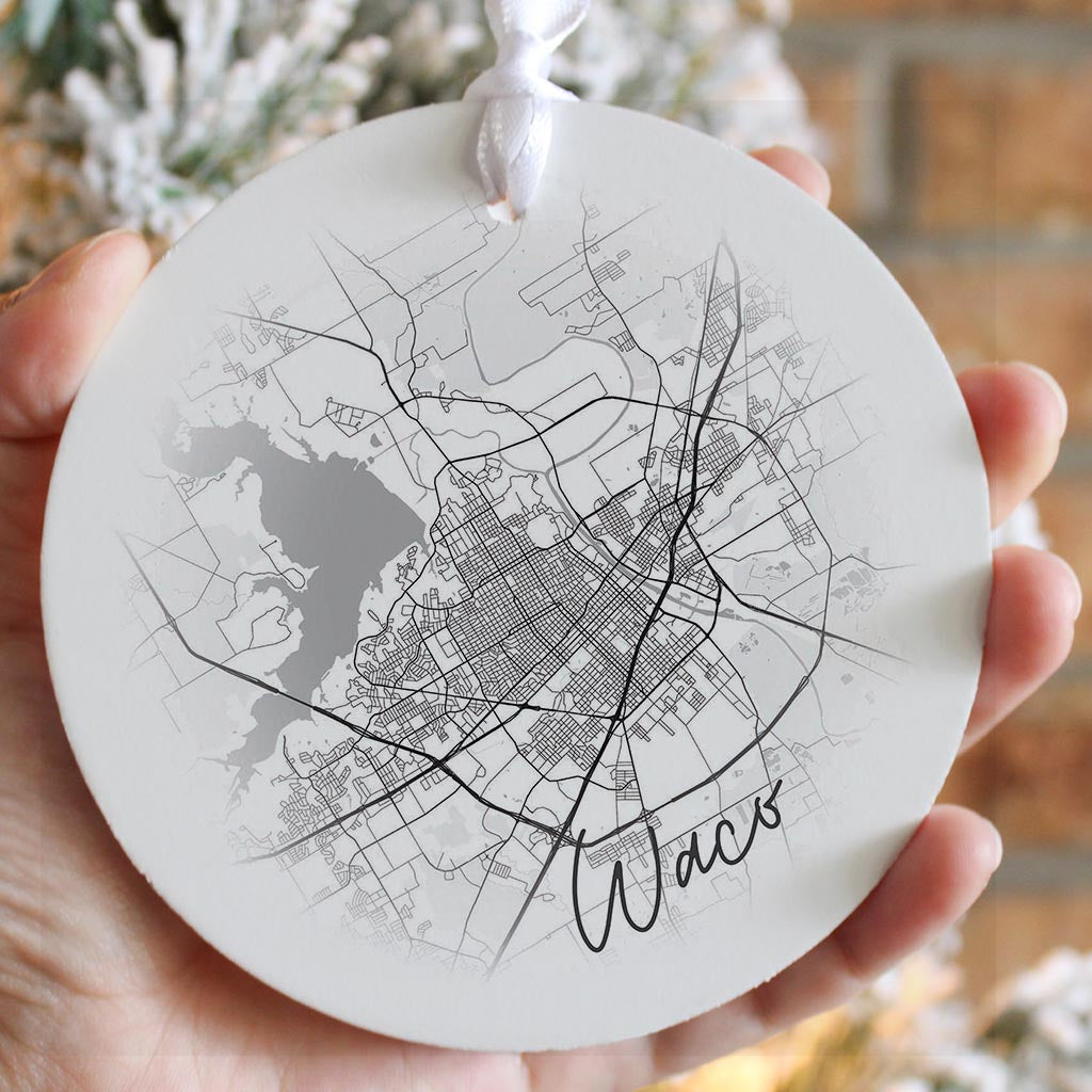 Minimalistic B&W Texas Waco Circle Map | Wood Ornament | Eaches | Min 6