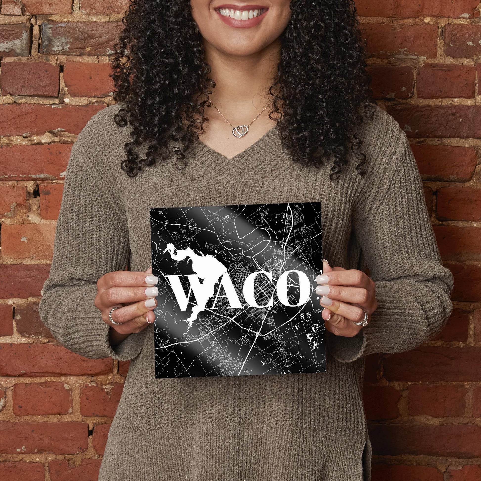 Minimalistic B&W Texas Waco Map | Hi-Def Glass Art | Eaches | Min 2