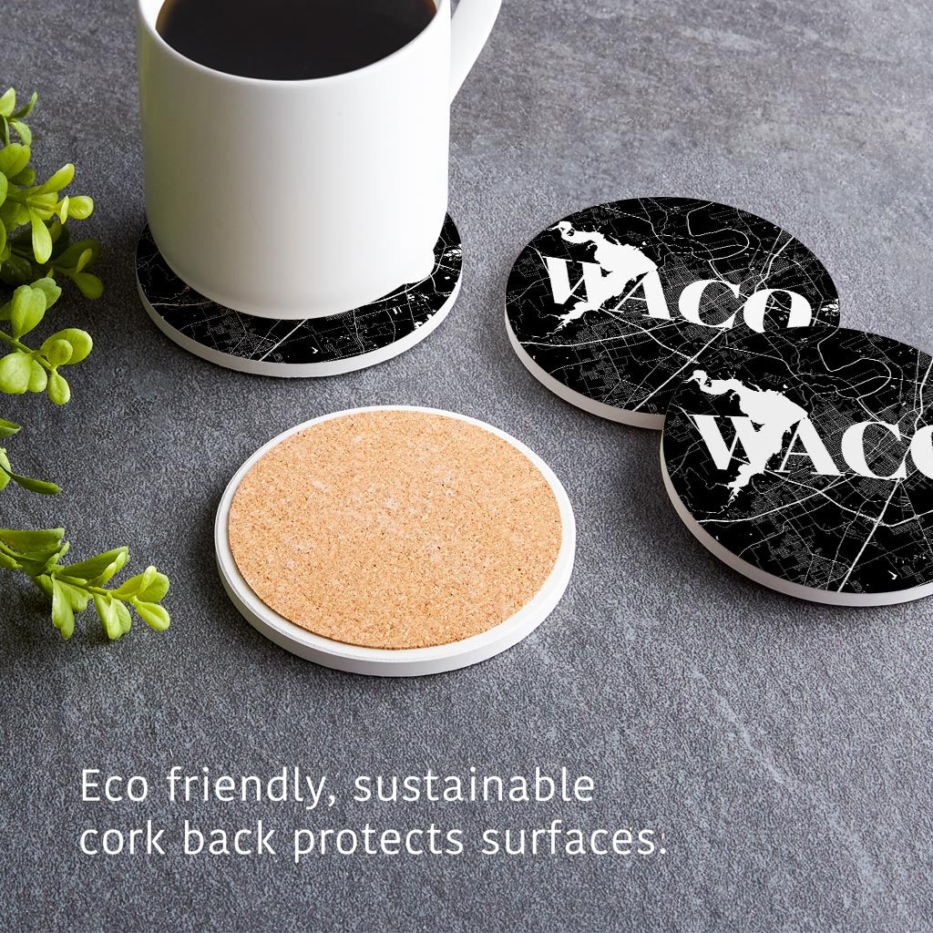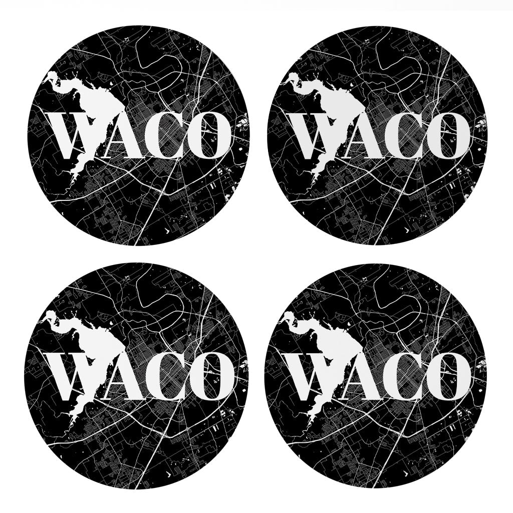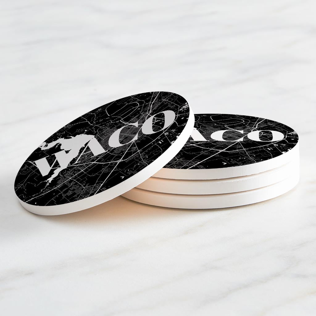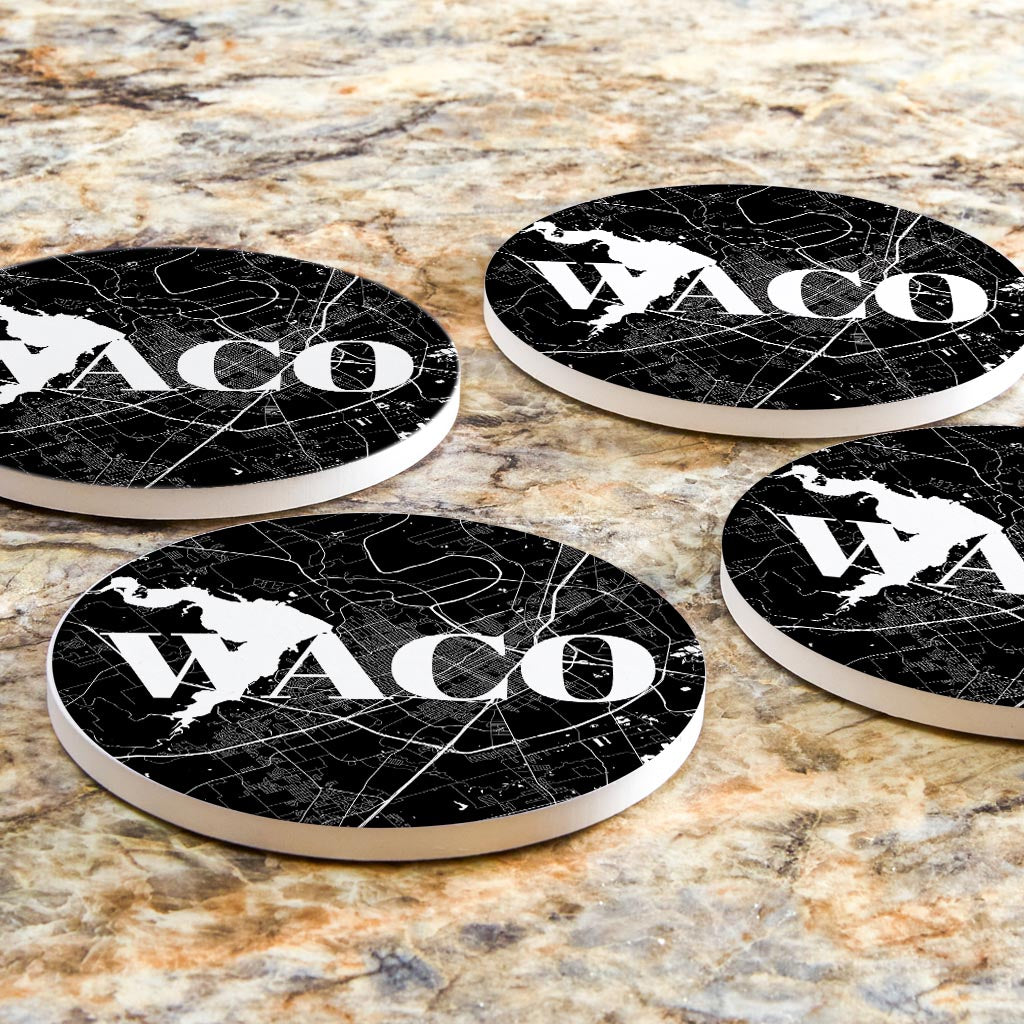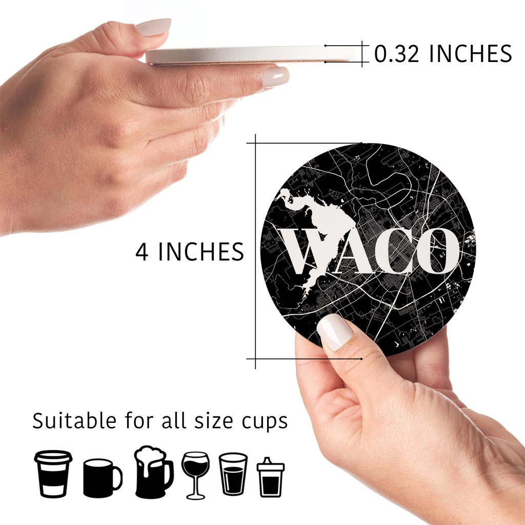 Minimalistic B&W Texas Waco Map | Absorbent Coasters | Set of 4 | Min 2