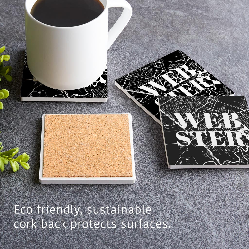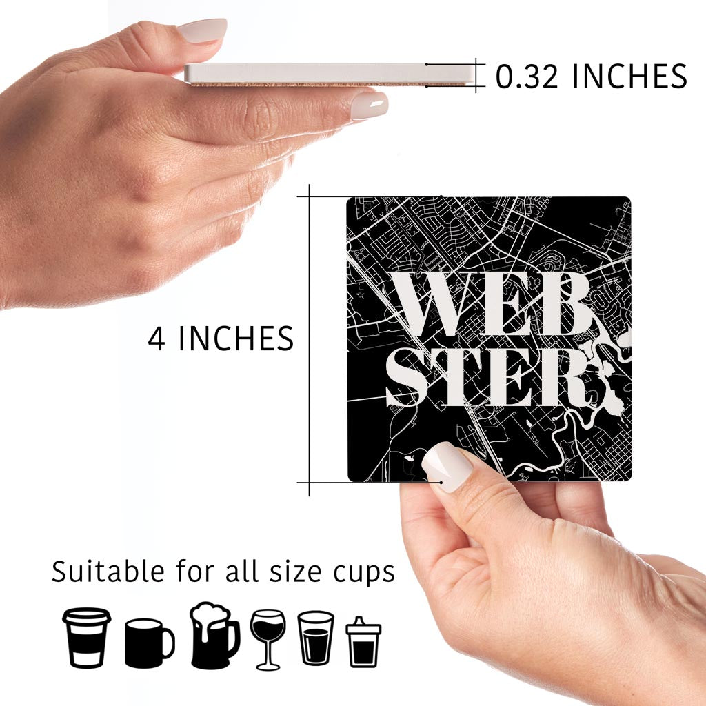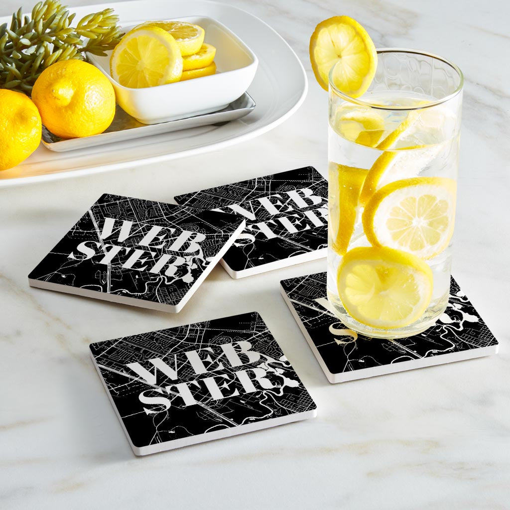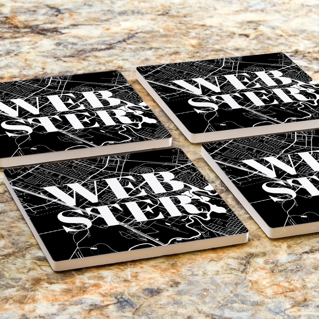 Minimalistic B&W Texas Webster Map | Absorbent Coasters | Set of 4 | Min 2