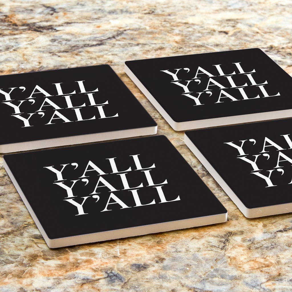 Minimalistic B&W Texas Yall | Absorbent Coasters | Set of 4 | Min 2