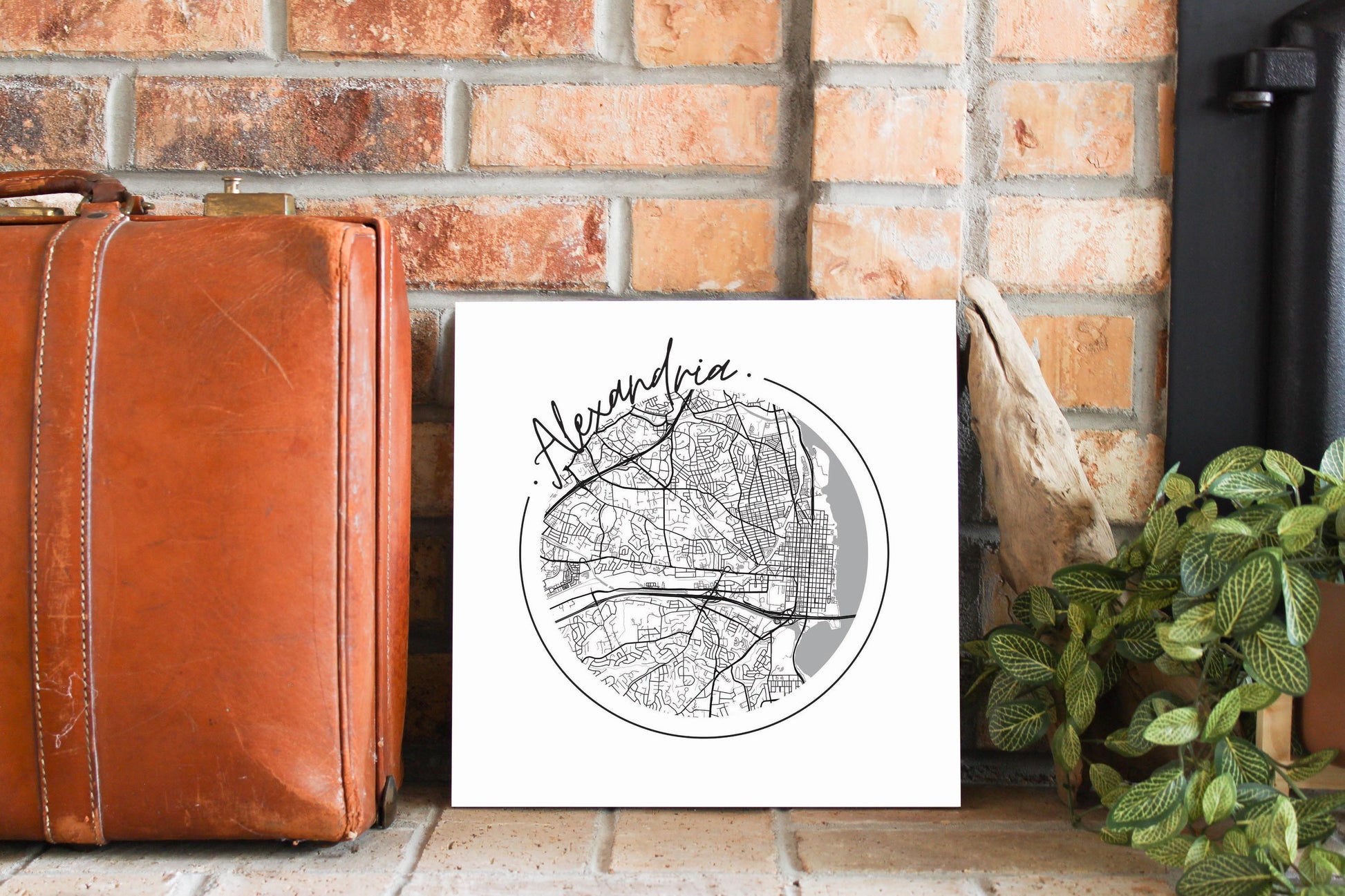 Minimalistic B&W Virginia Alexandria Circle Map | Wood Sign | Eaches | Min 2