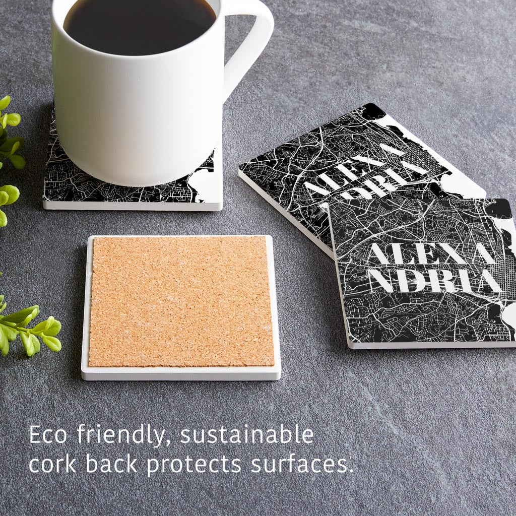 Minimalistic B&W Virginia Alexandria Map| Absorbent Coasters | Set of 4 | Min 2