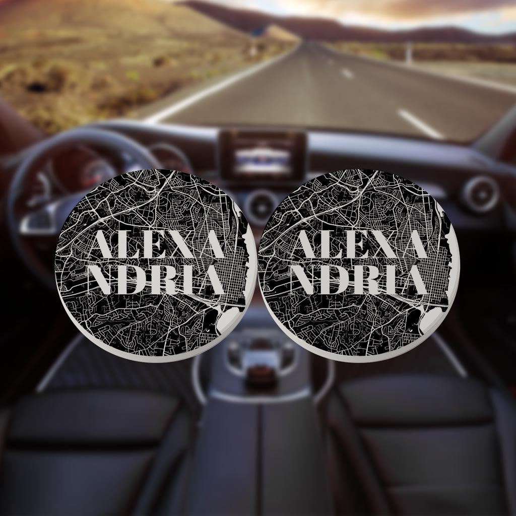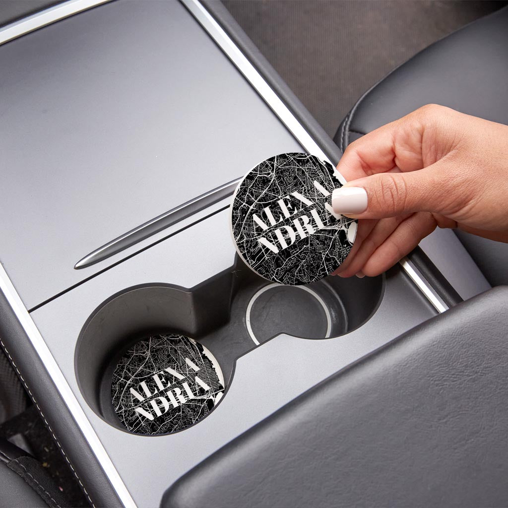 Minimalistic B&W Virginia Alexandria Map | Absorbent Car Coasters | Set of 2 | Min 4