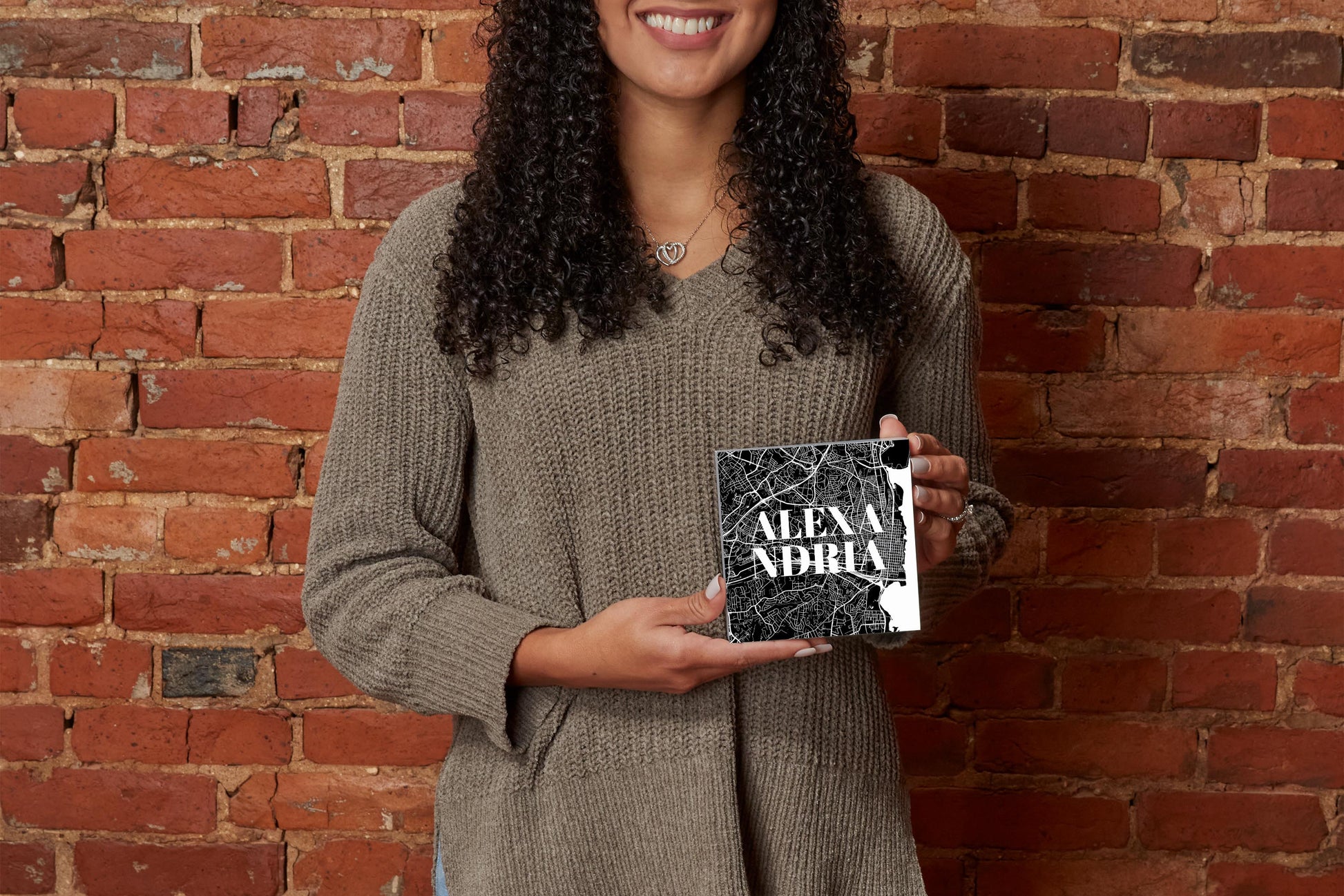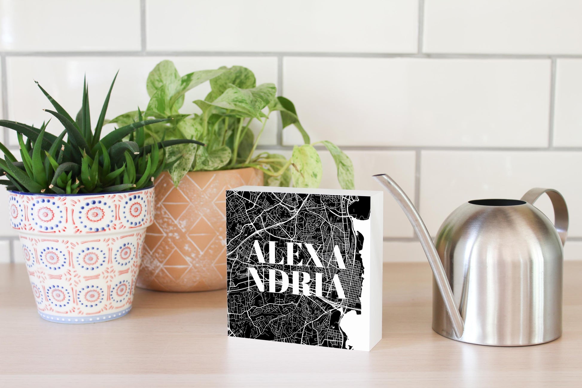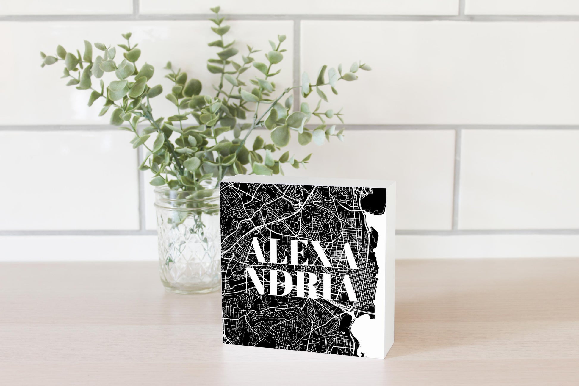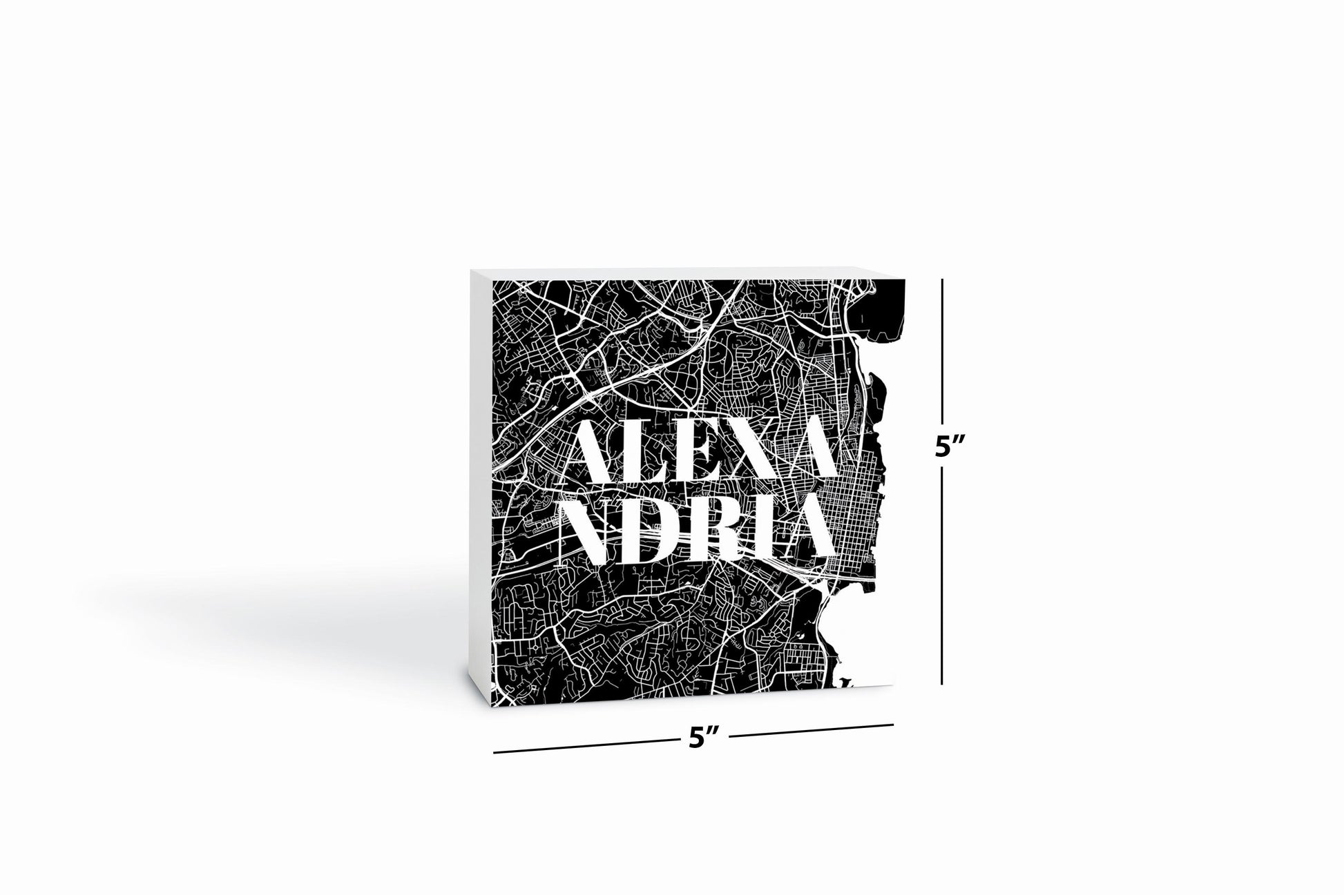 Minimalistic B&W Virginia Alexandria Map | Wood Block | Eaches | Min 4