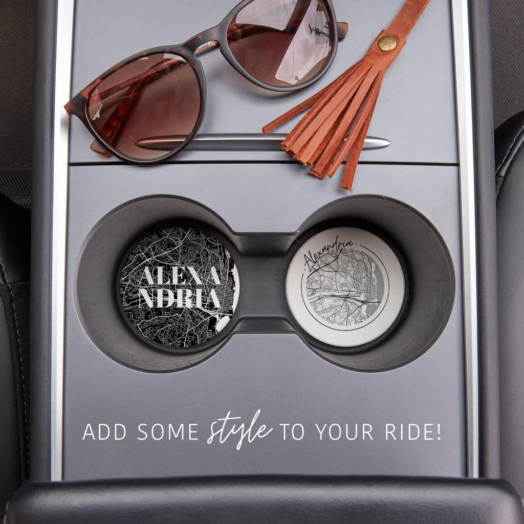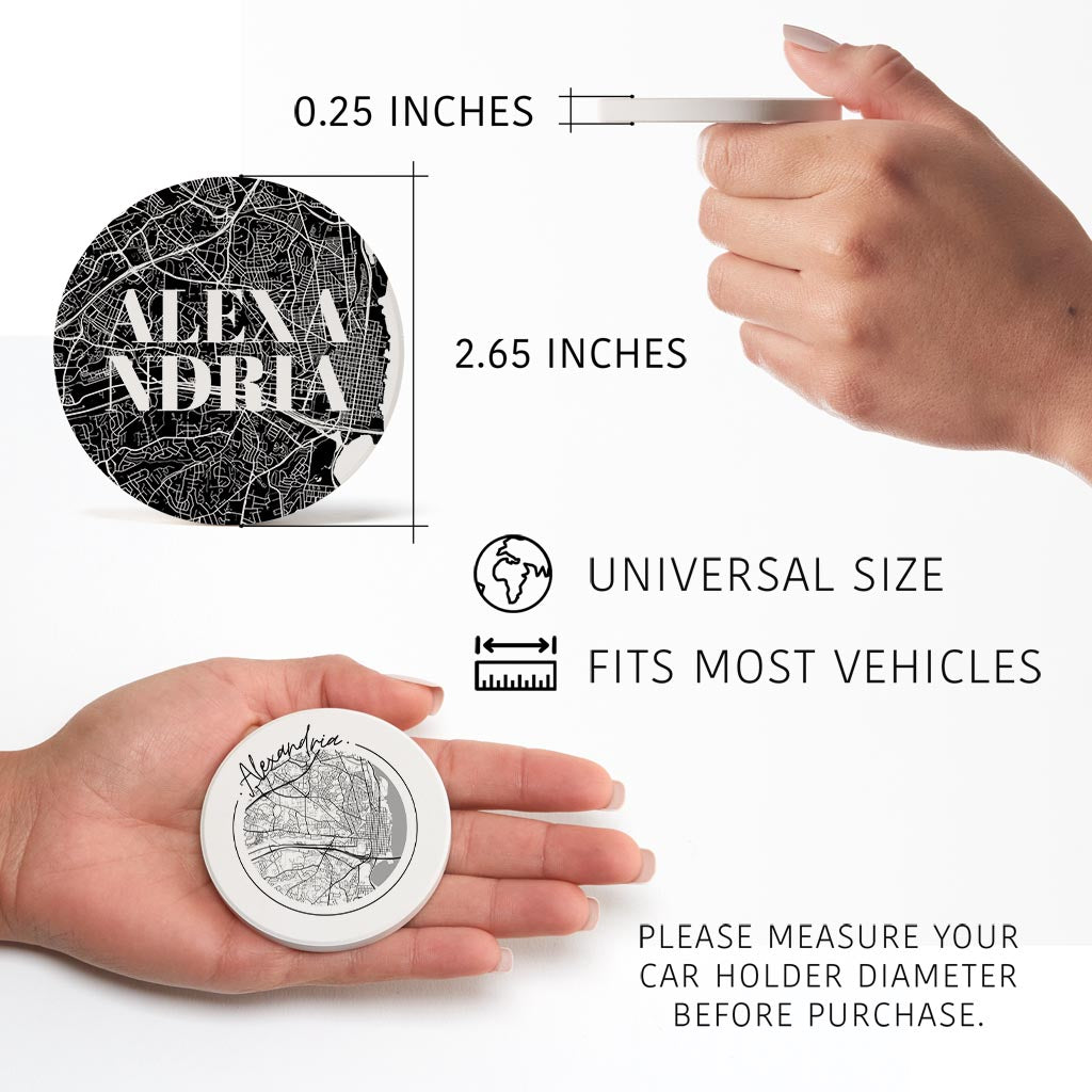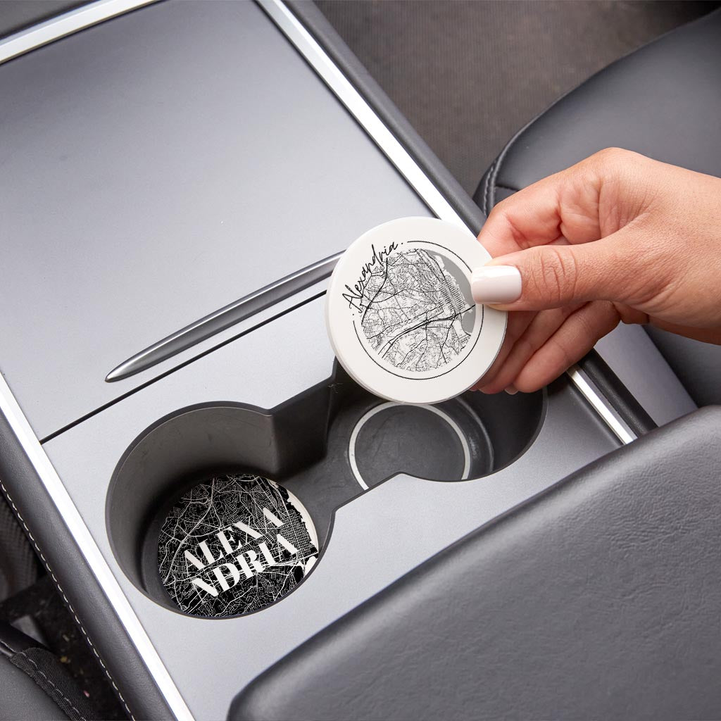 Minimalistic B&W Virginia Alexandria Maps | Absorbent Car Coasters | Set of 2 | Min 4