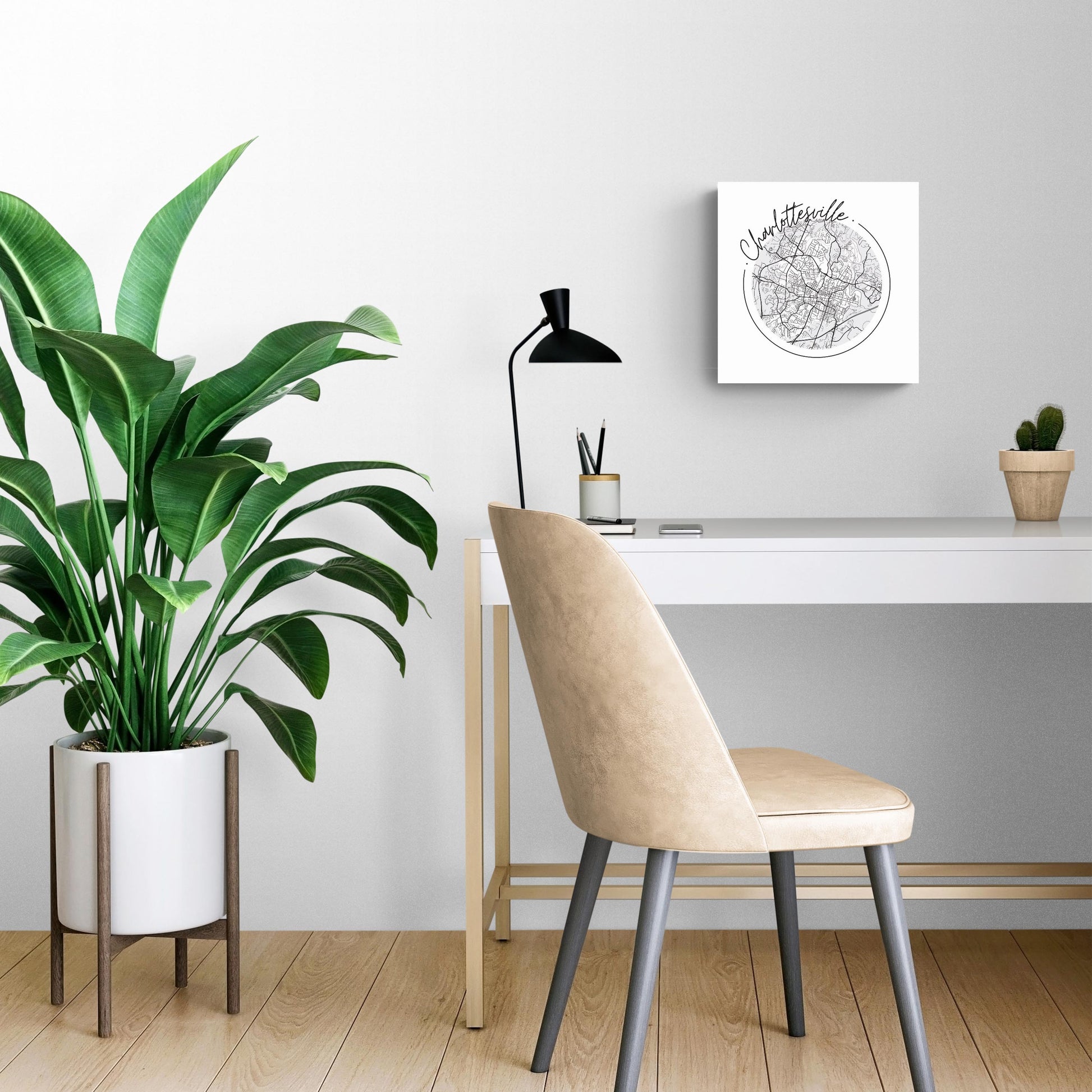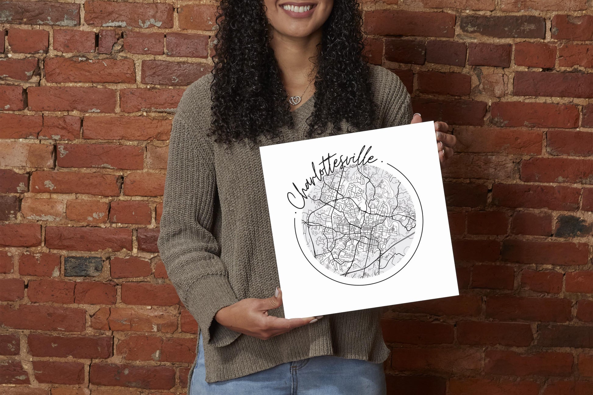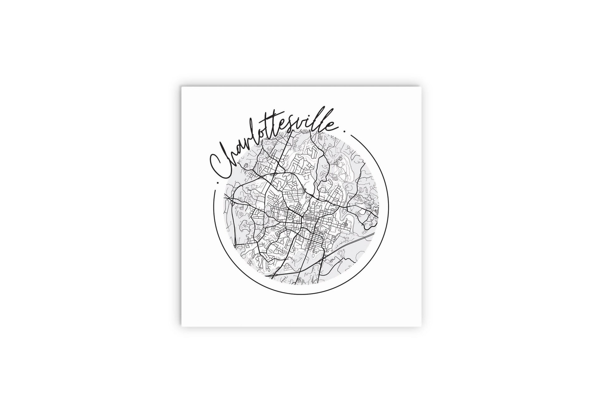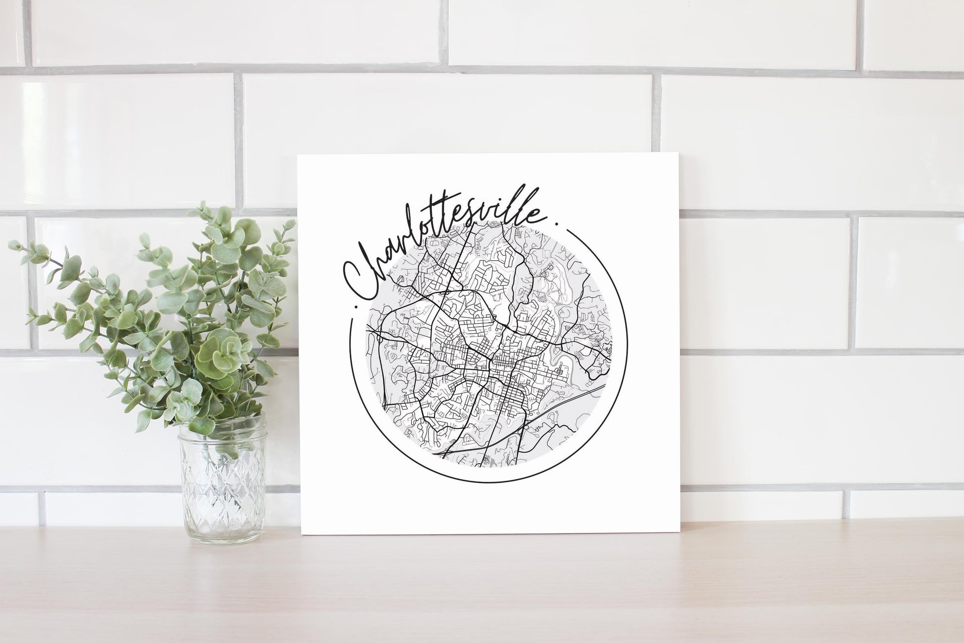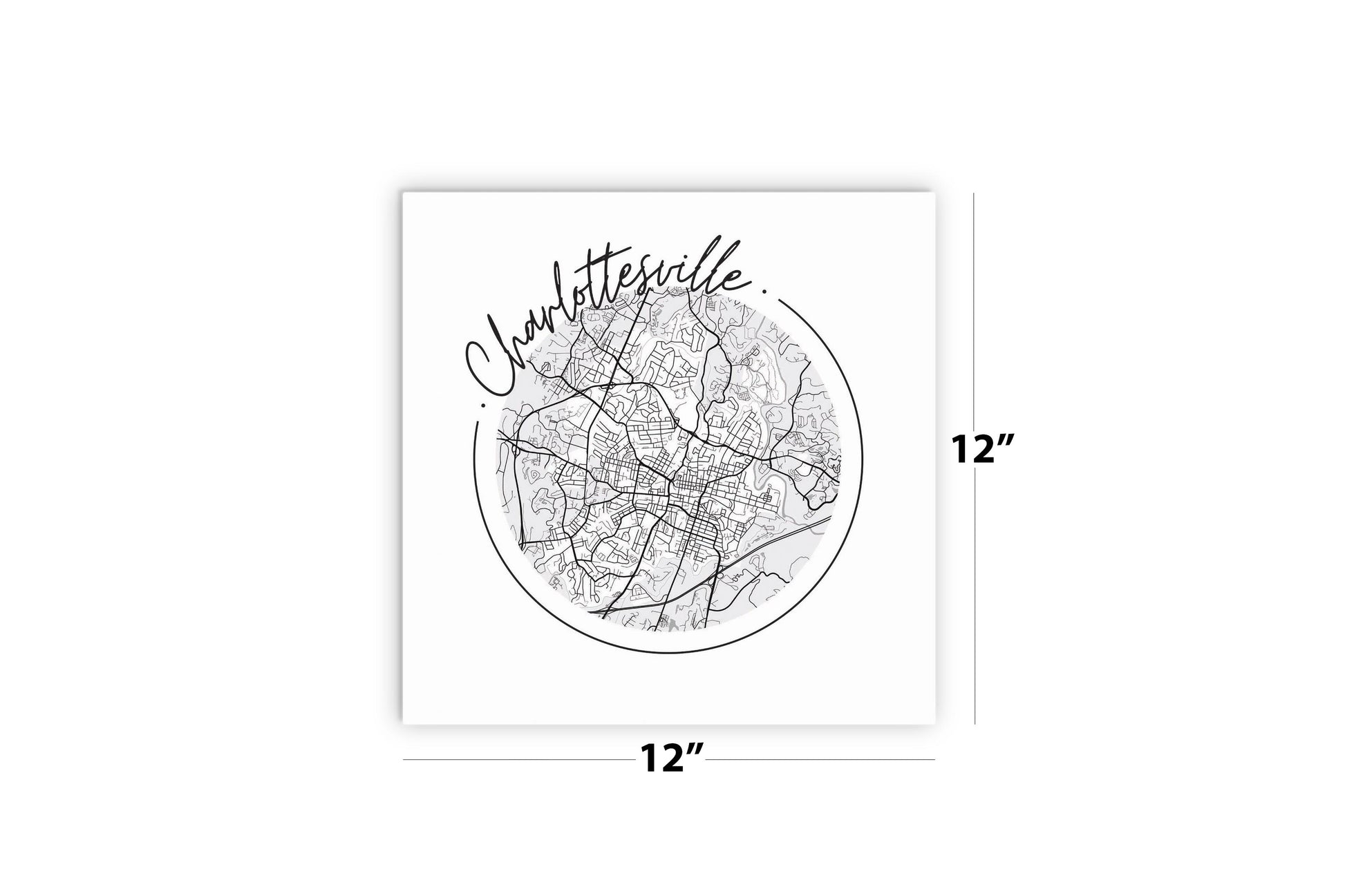 Minimalistic B&W Virginia Charlottesville Circle Map | Wood Sign | Eaches | Min 2