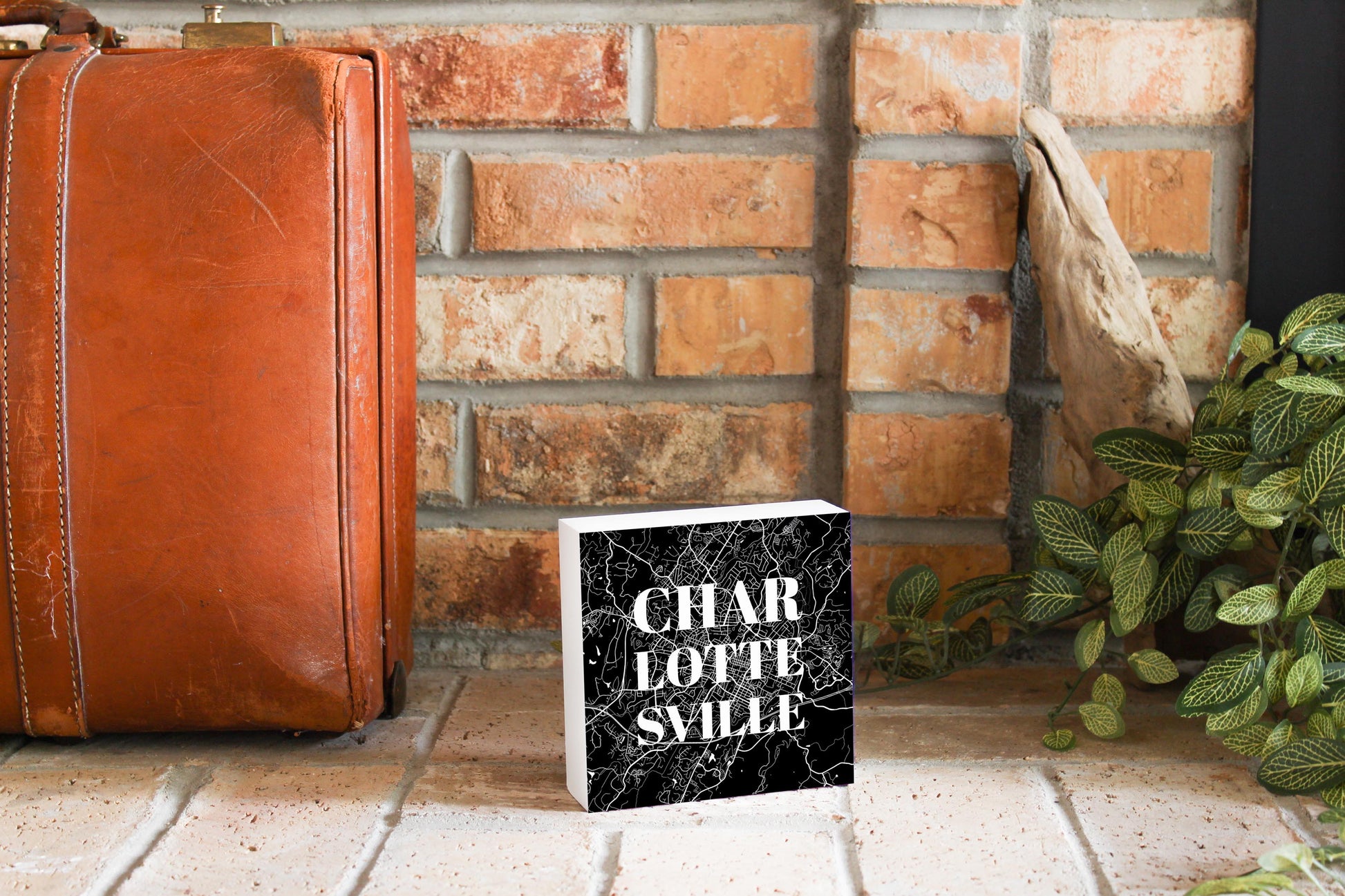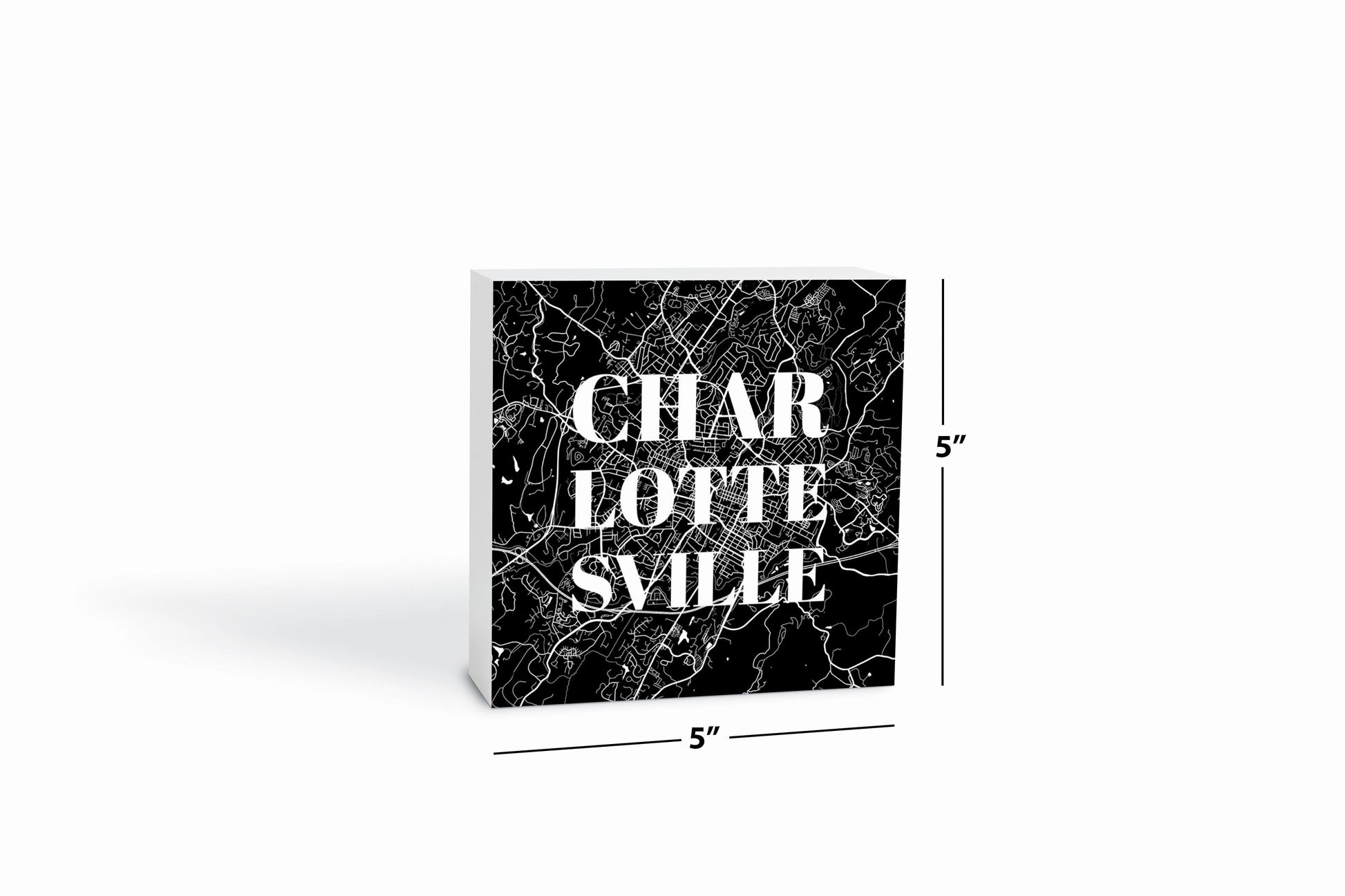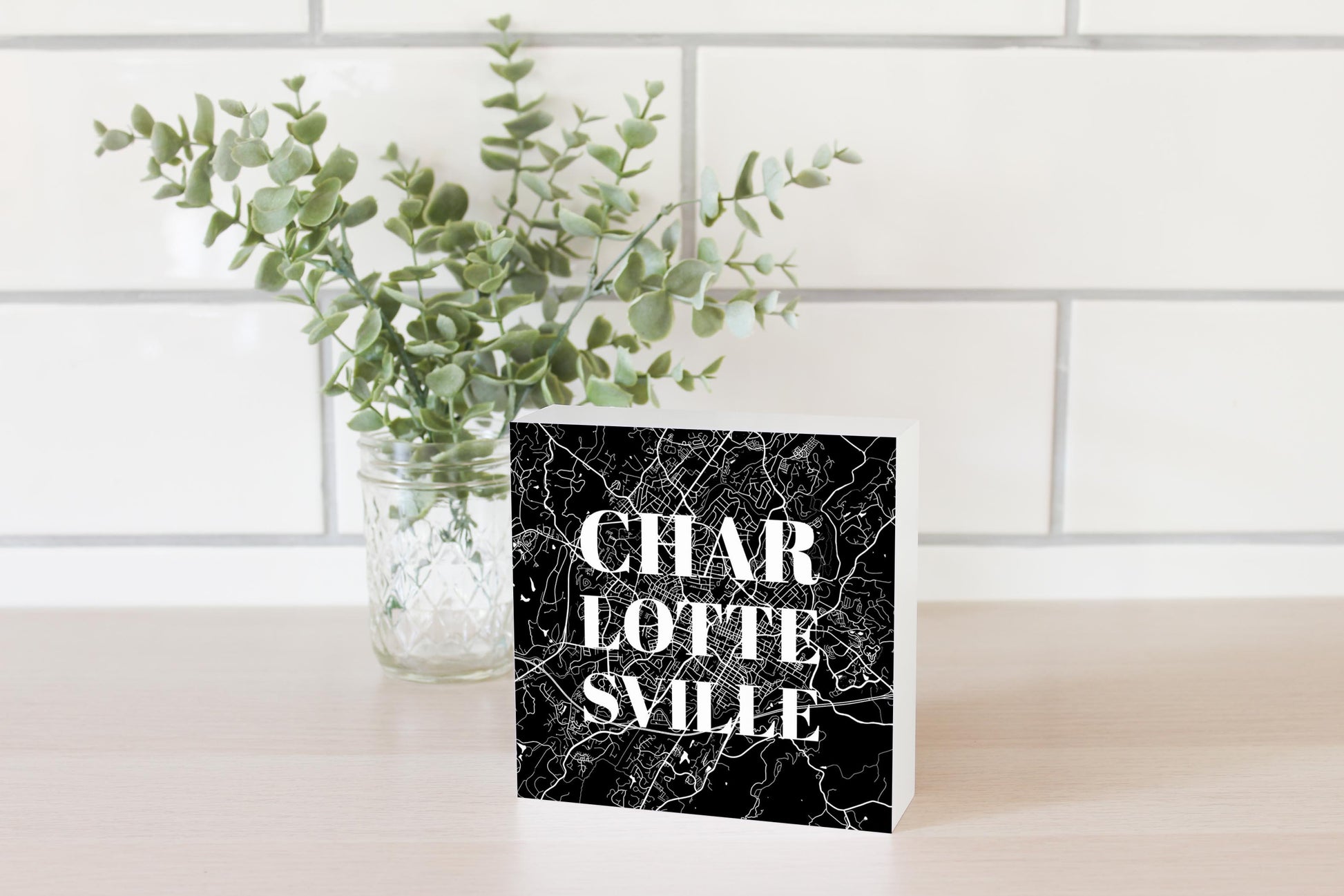Minimalistic B&W Virginia Charlottesville Map | Wood Block | Eaches | Min 4