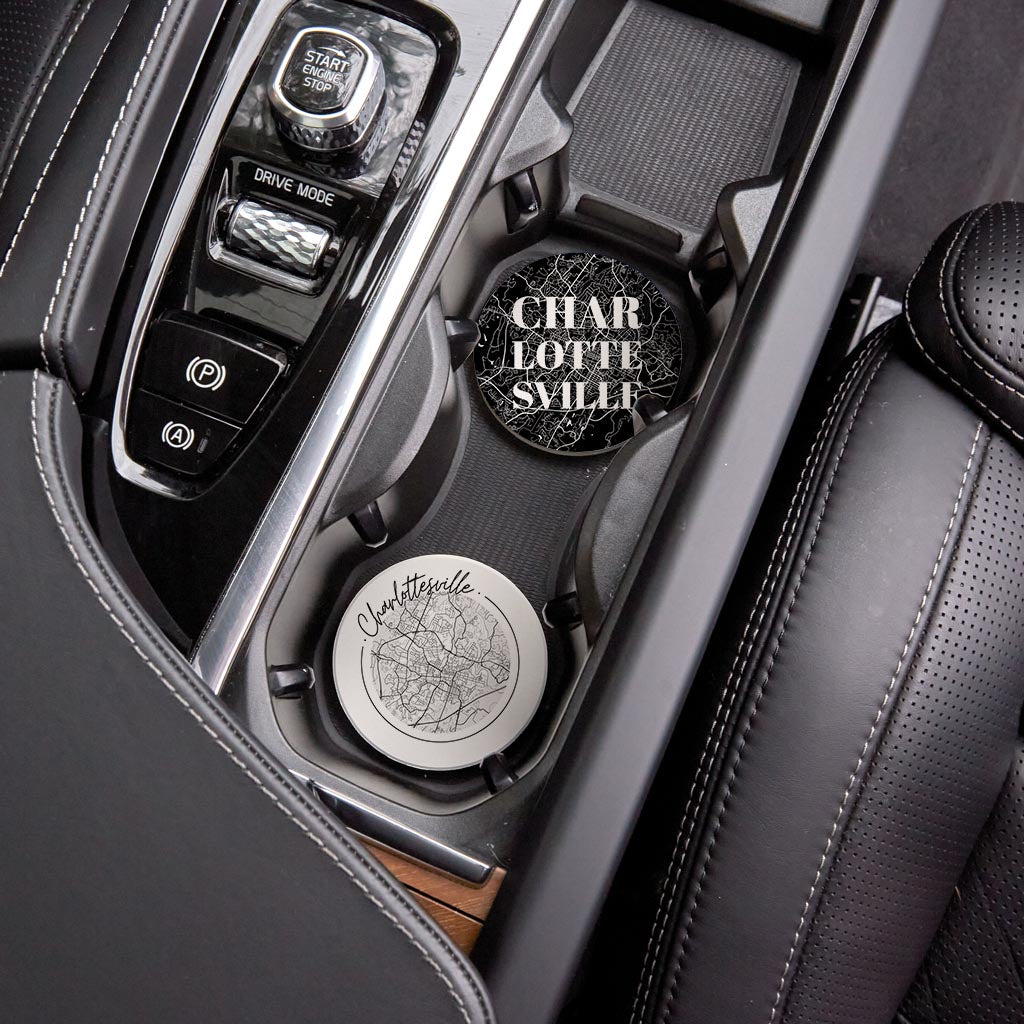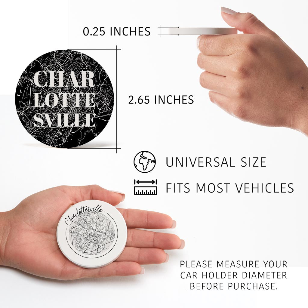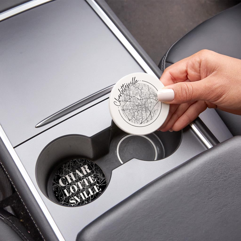 Minimalistic B&W Virginia Charlottesville Maps | Absorbent Car Coasters | Set of 2 | Min 4