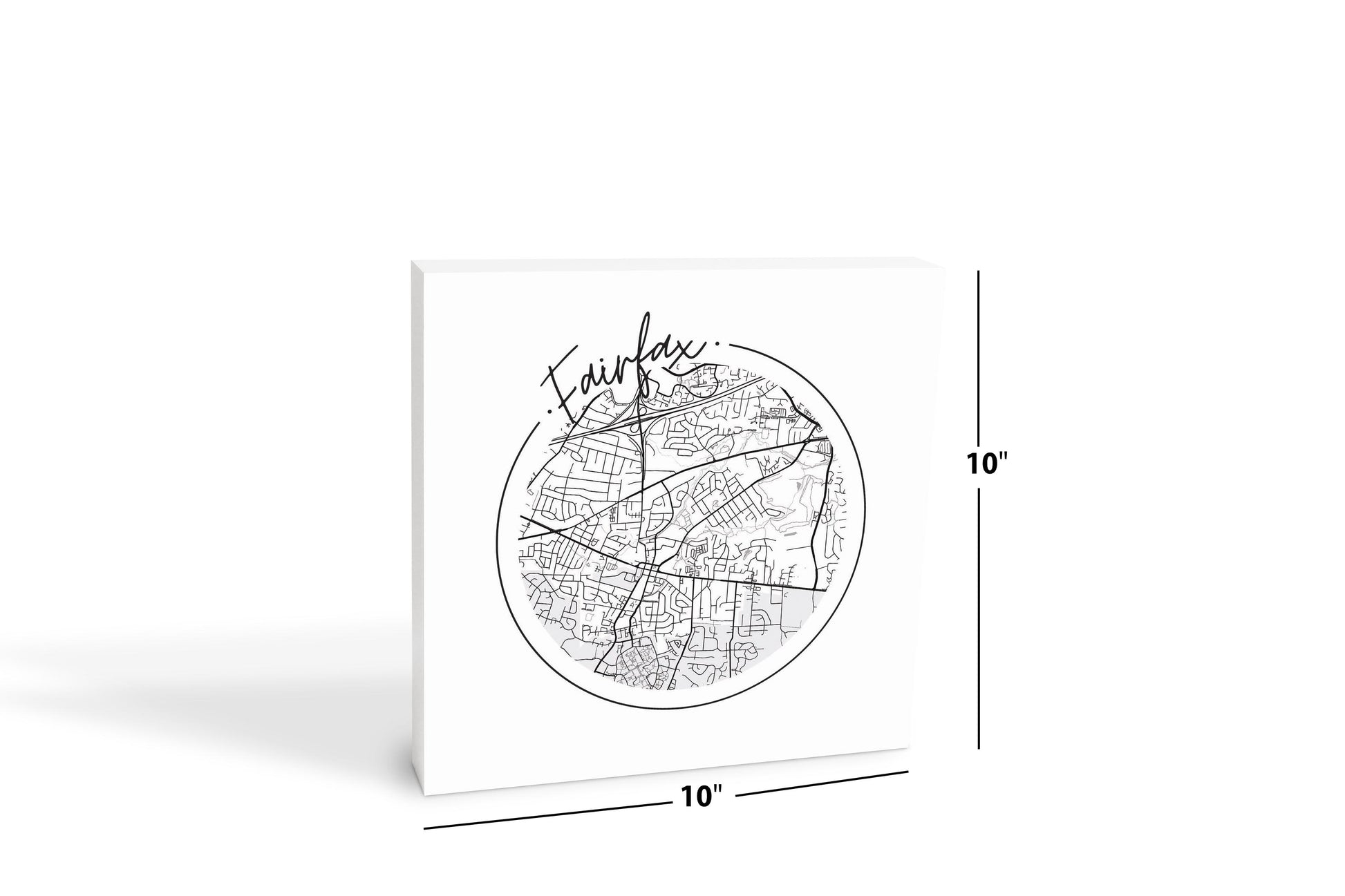 Minimalistic B&W Virginia Fairfax Circle Map | Wood Block | Eaches | Min 2