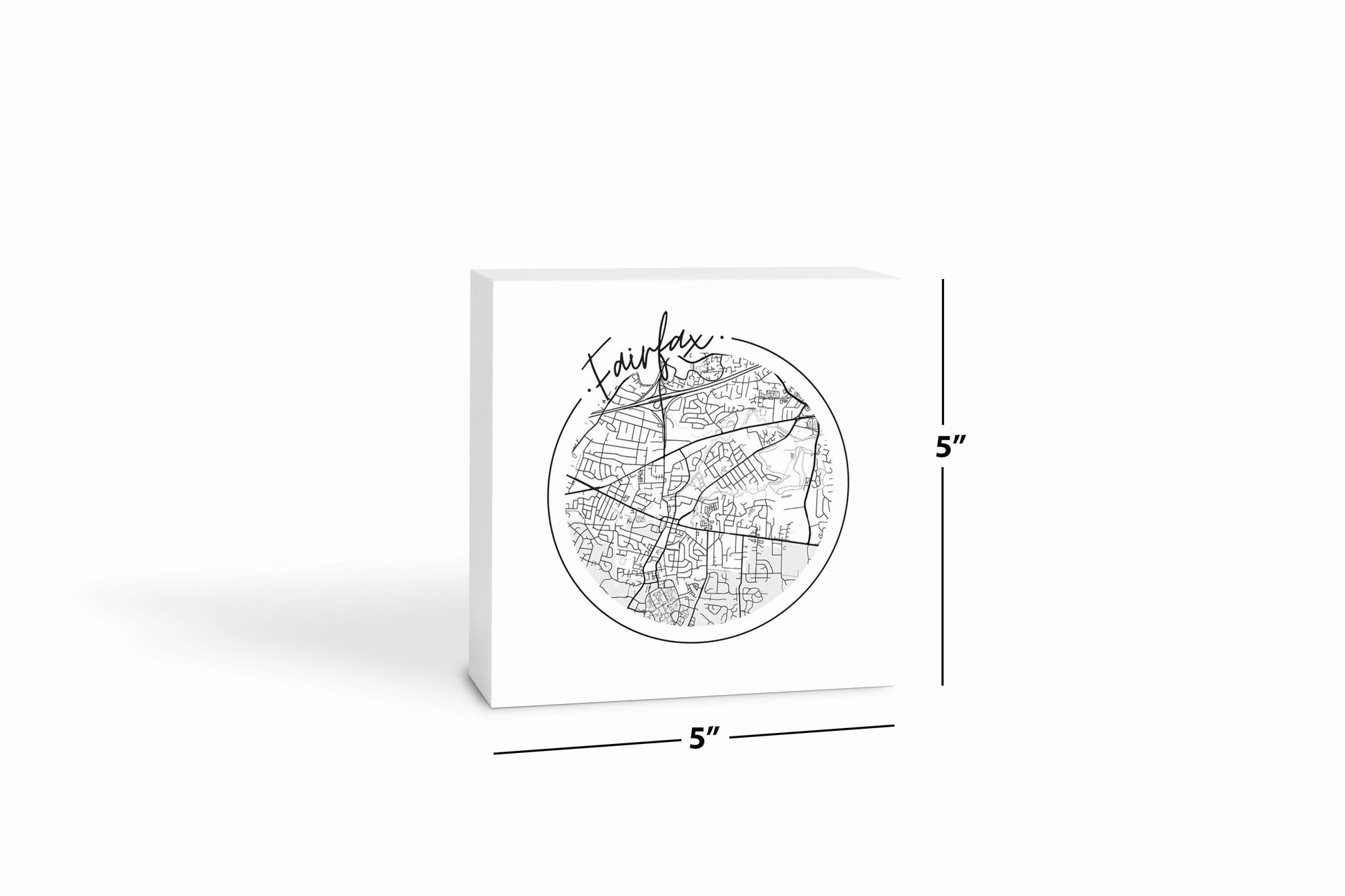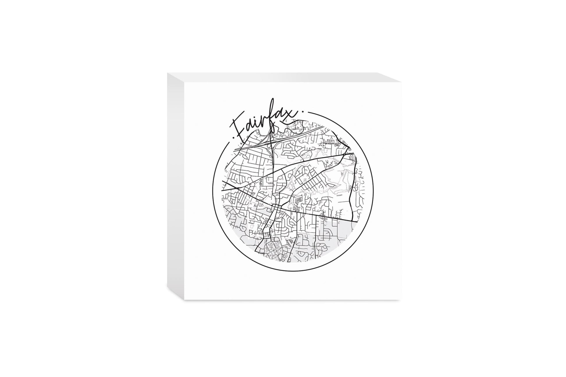 Minimalistic B&W Virginia Fairfax Circle Map | Wood Block | Eaches | Min 4
