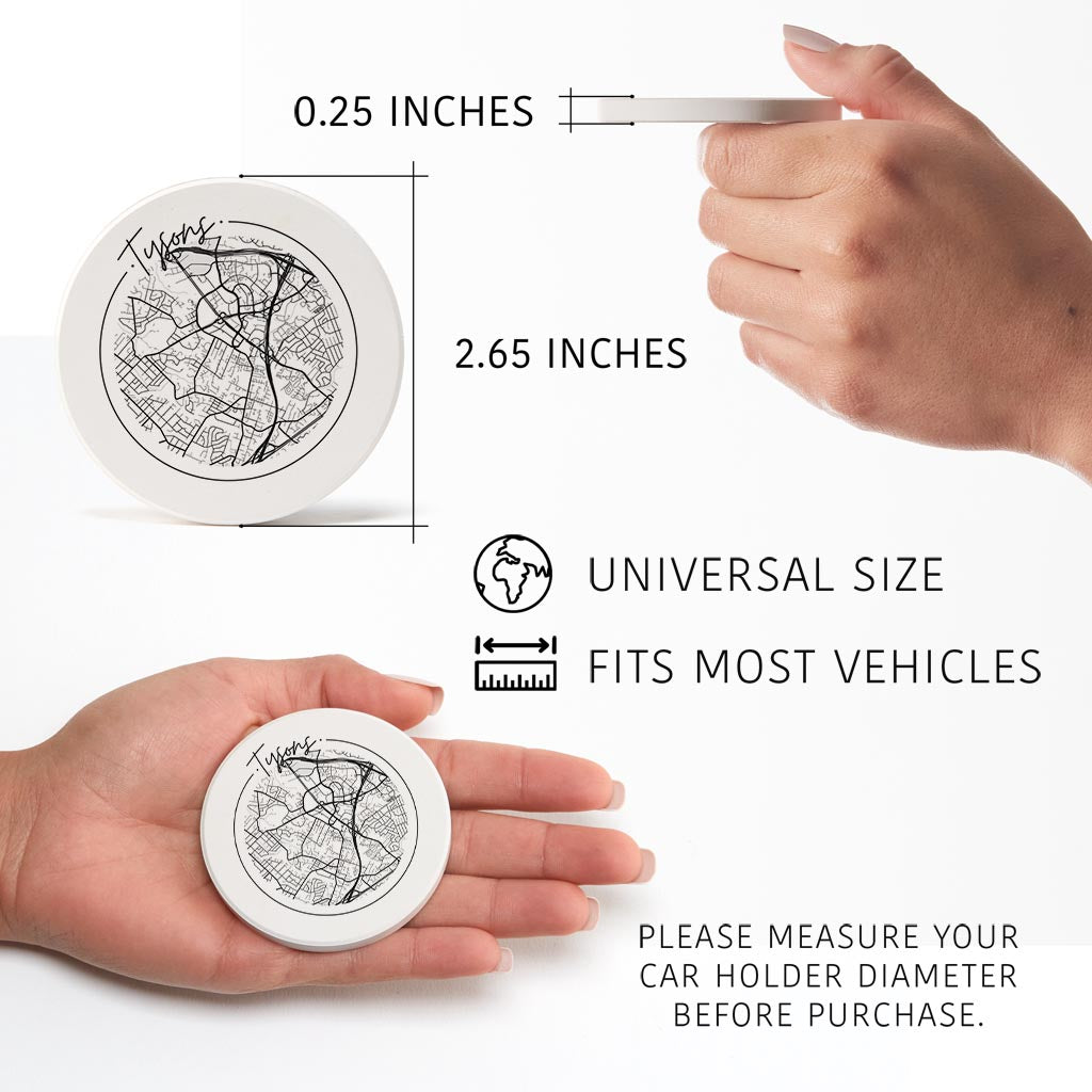Minimalistic B&W Virginia Tysons Circle Map | Absorbent Car Coasters | Set of 2 | Min 4