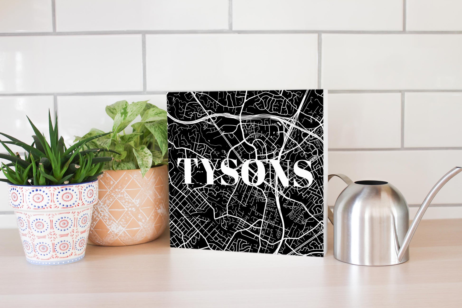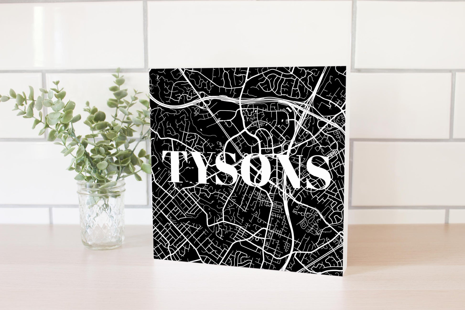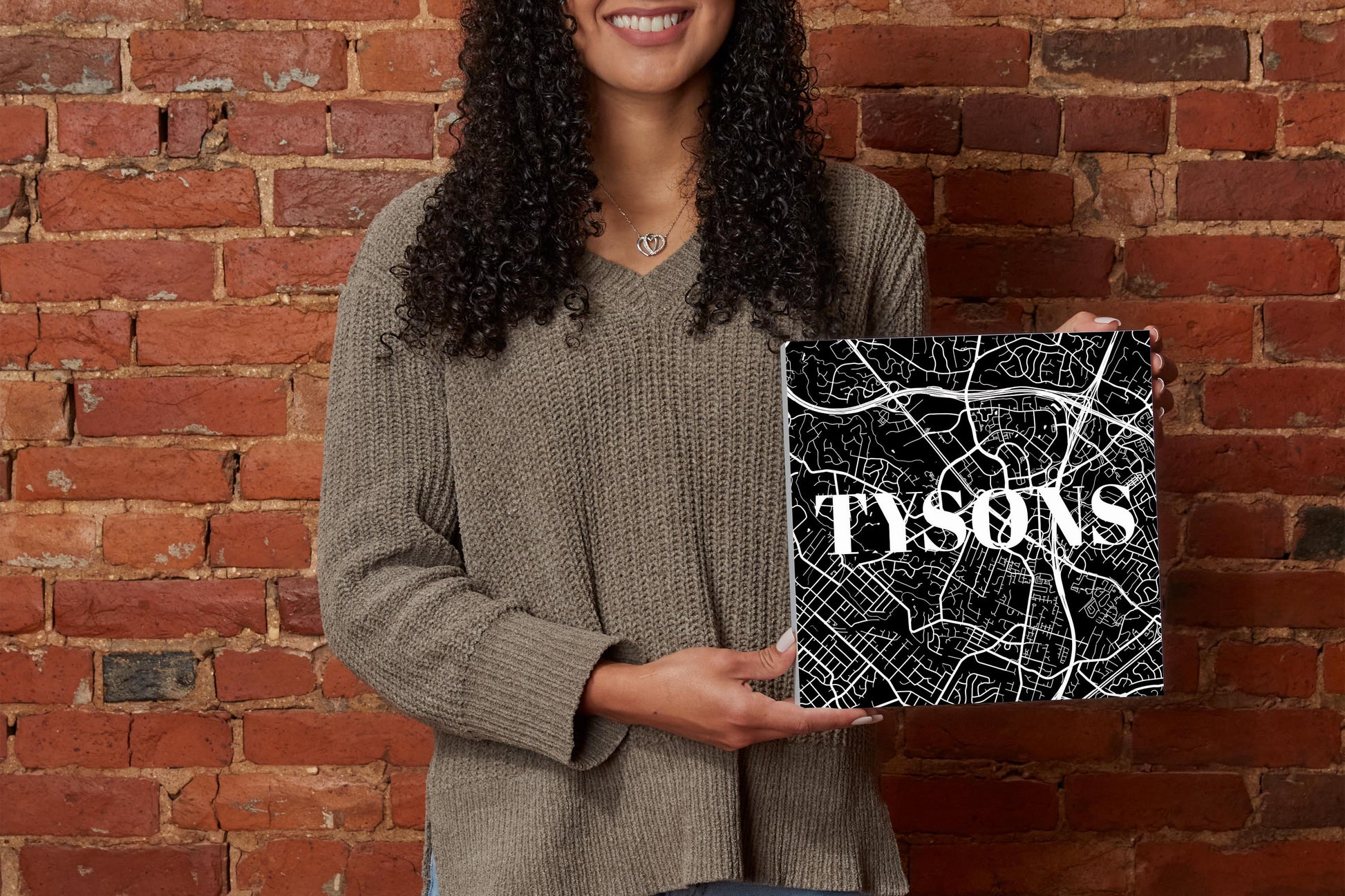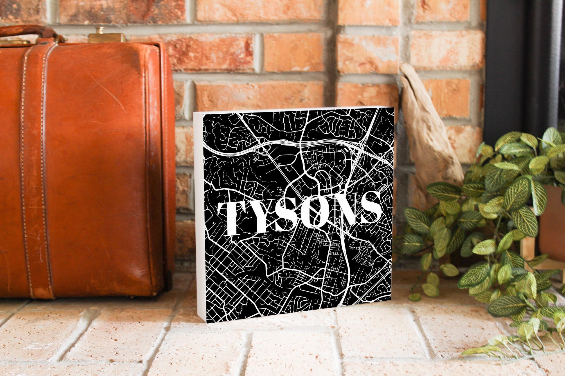 Minimalistic B&W Virginia Tysons Map | Wood Block | Eaches | Min 2