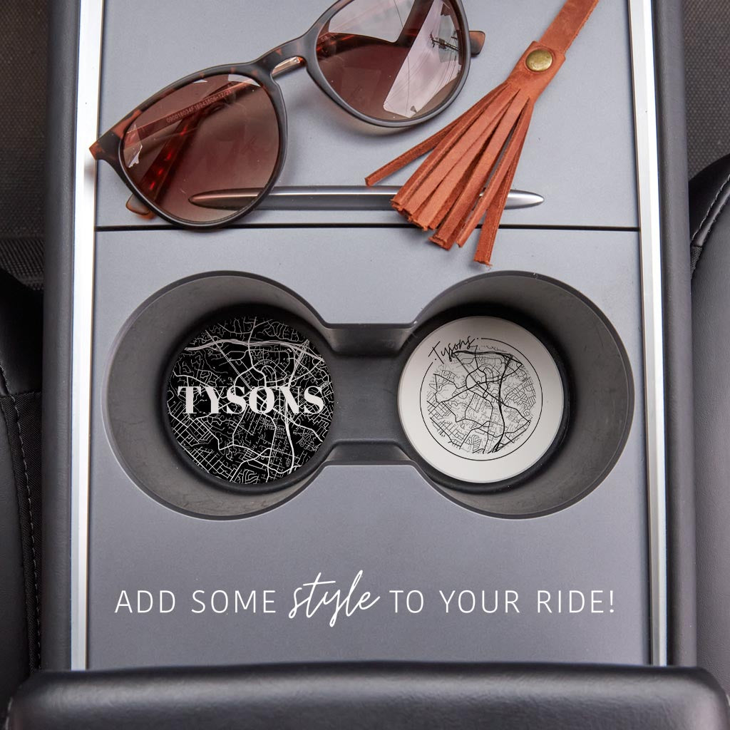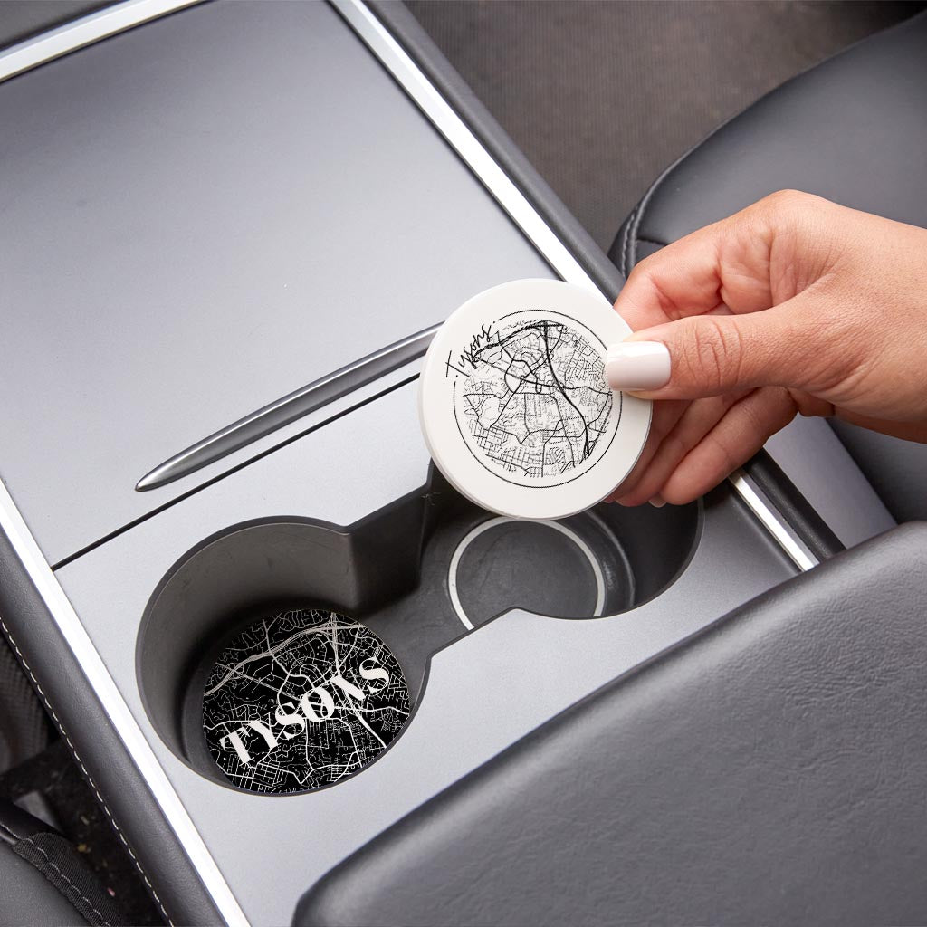 Minimalistic B&W Virginia Tysons Maps | Absorbent Car Coasters | Set of 2 | Min 4