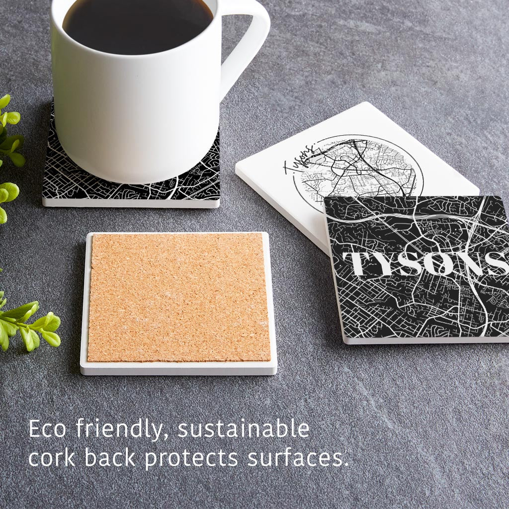 Minimalistic B&W Virginia Tysons Maps | Absorbent Coasters | Set of 4 | Min 2