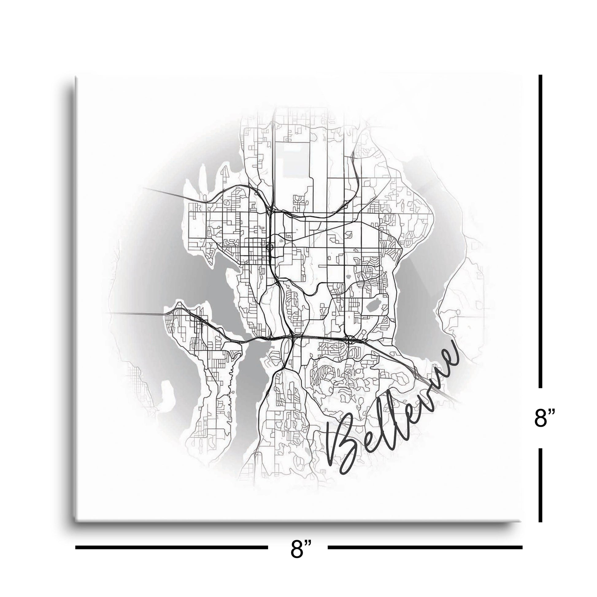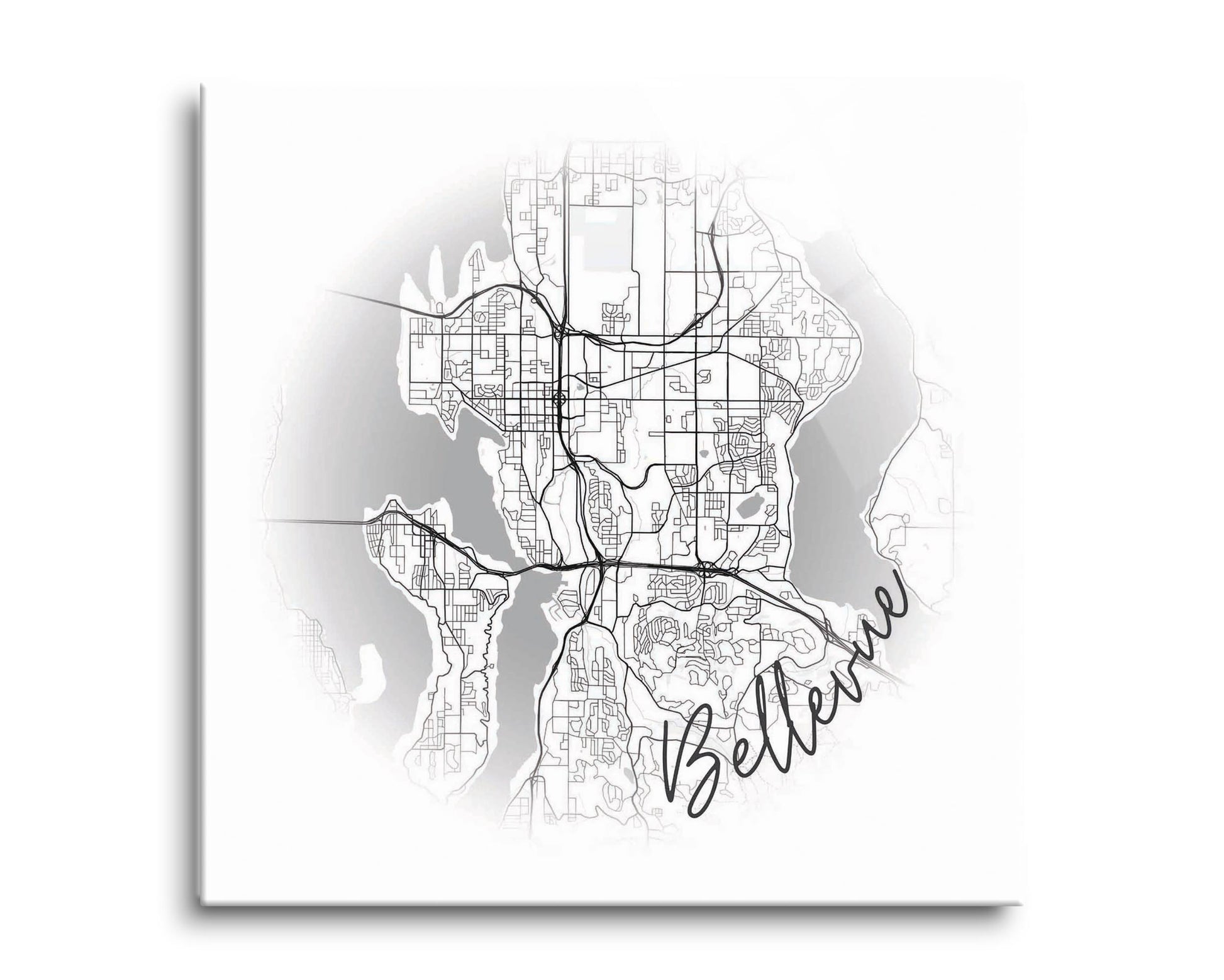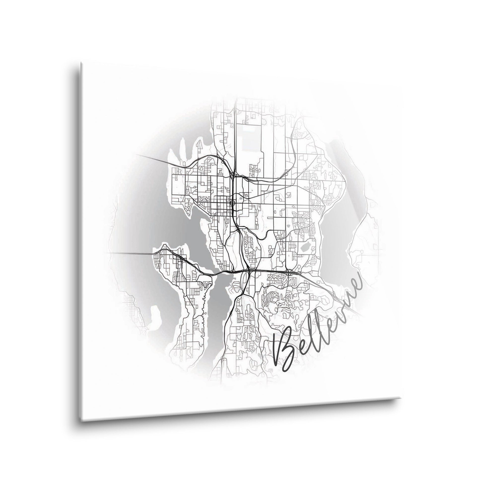 Minimalistic B&W Washington Bellevue Circle Map | Hi-Def Glass Art | Eaches | Min 2