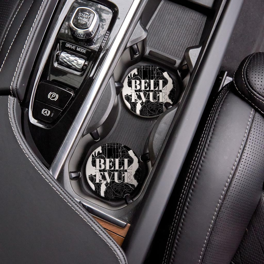 Minimalistic B&W Washington Bellevue Map| Absorbent Car Coasters | Set of 2 | Min 4