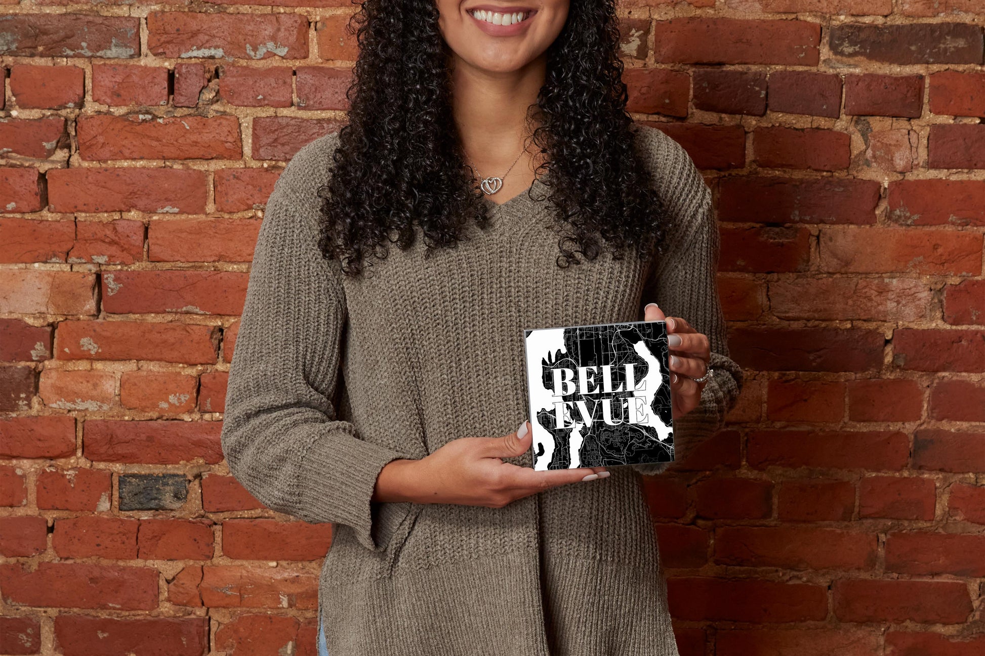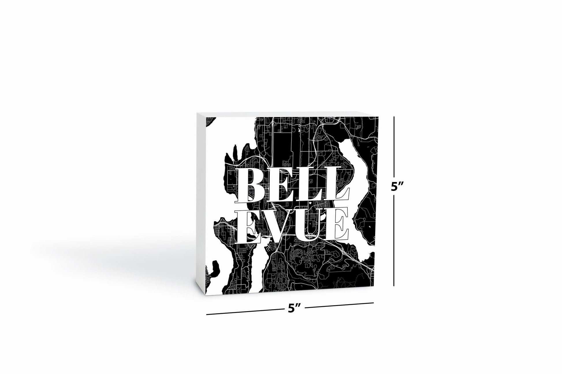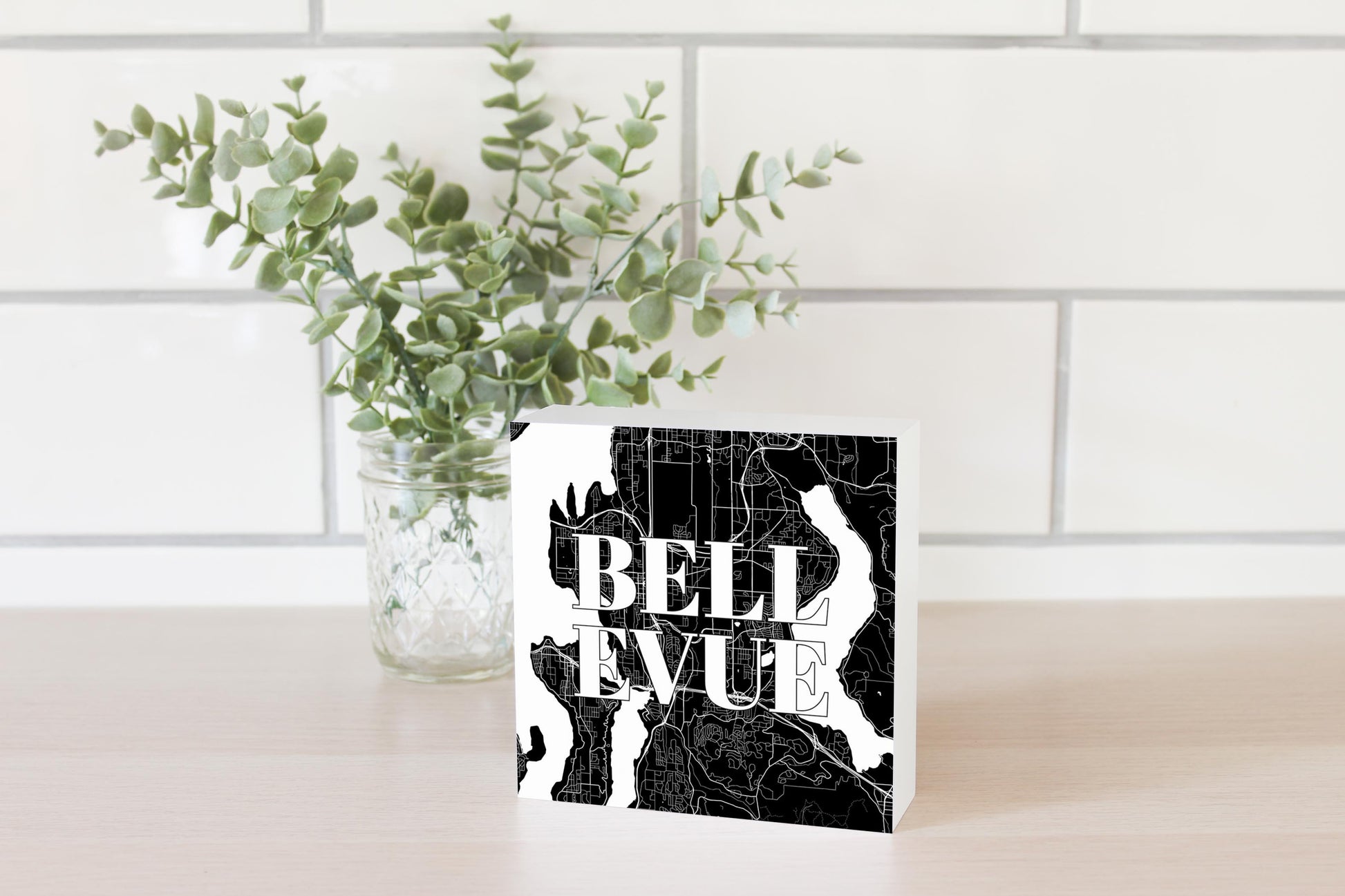 Minimalistic B&W Washington Bellevue Map | Wood Block | Eaches | Min 4