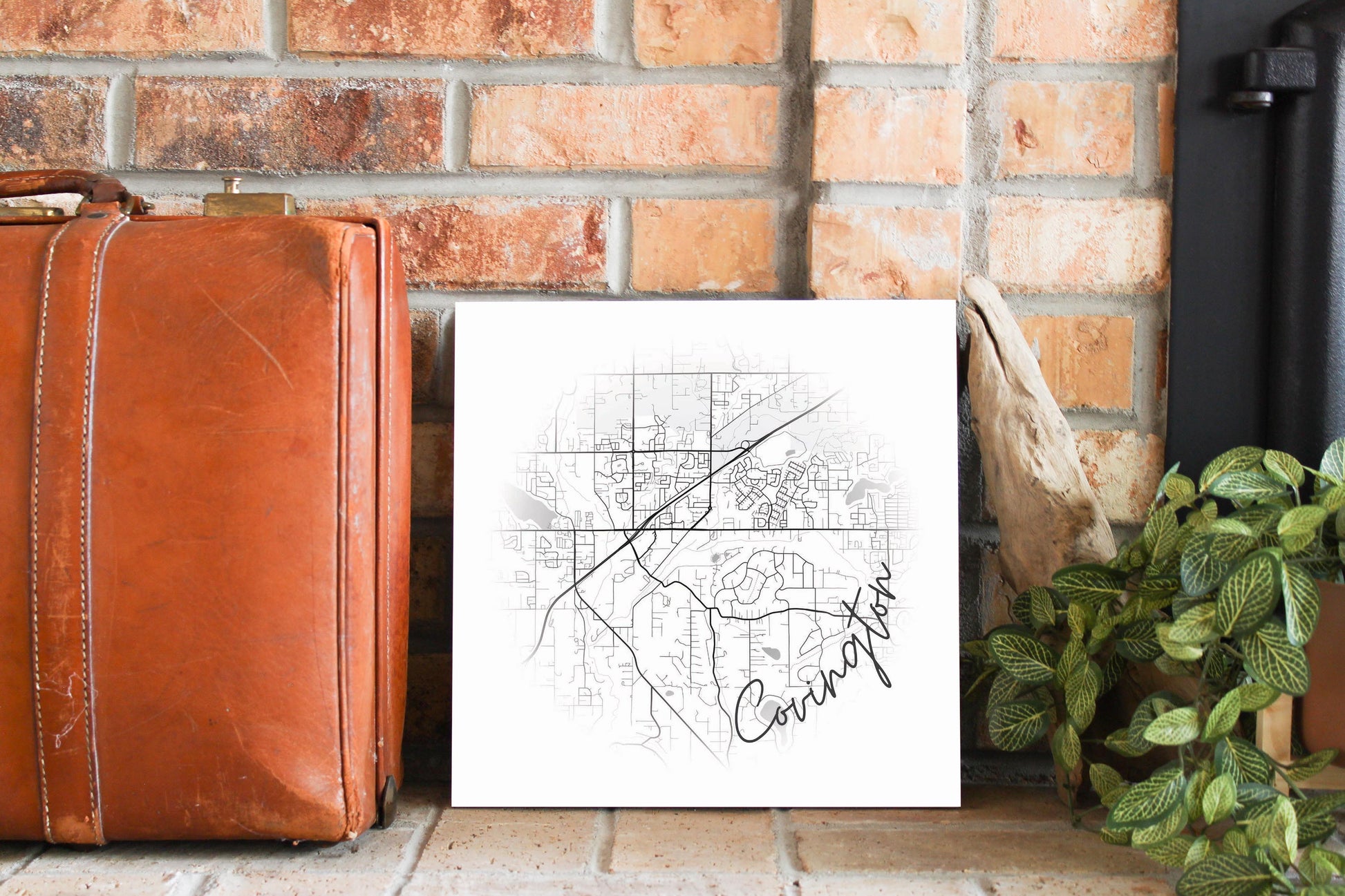 Minimalistic B&W Washington Covington Circle Map | Wood Sign | Eaches | Min 2