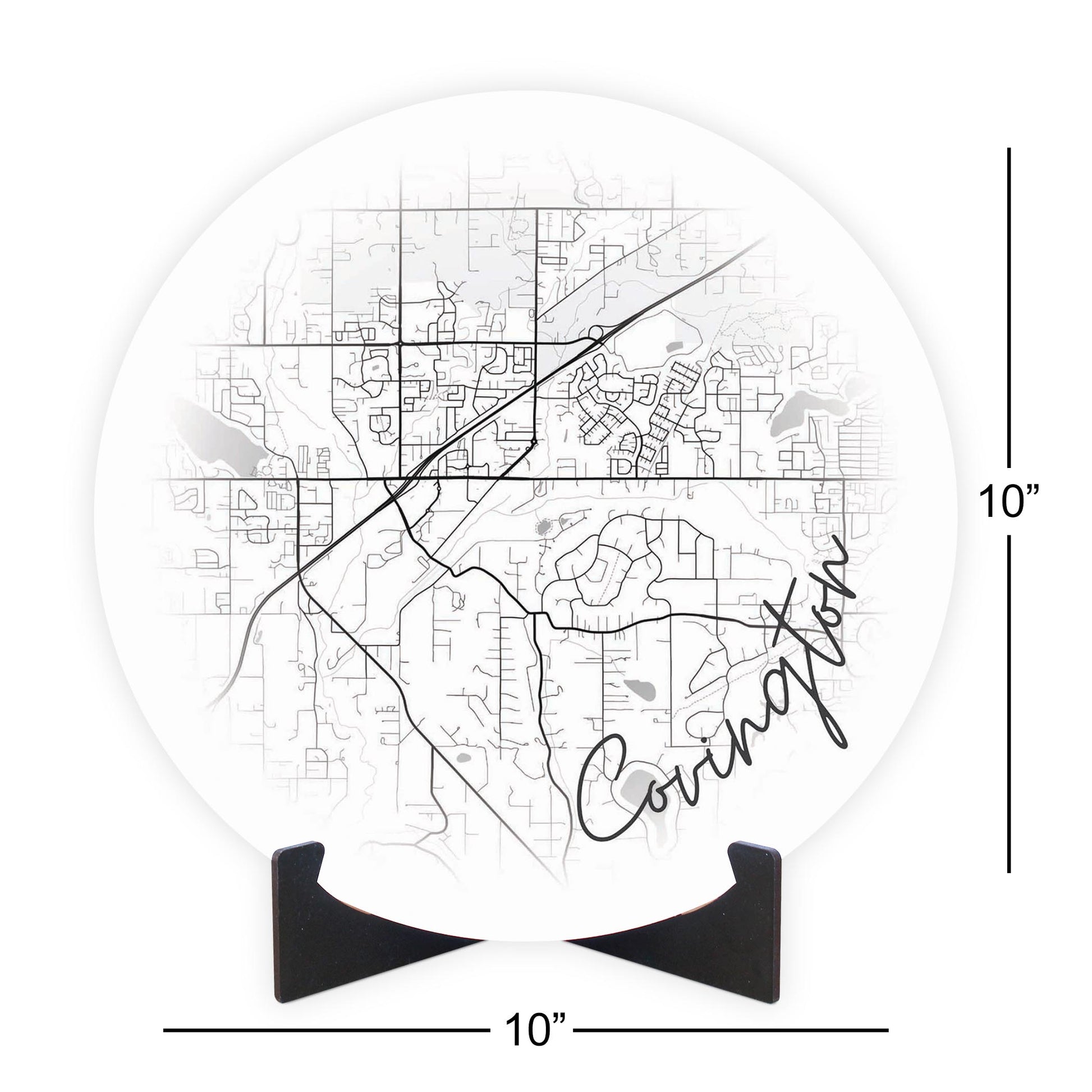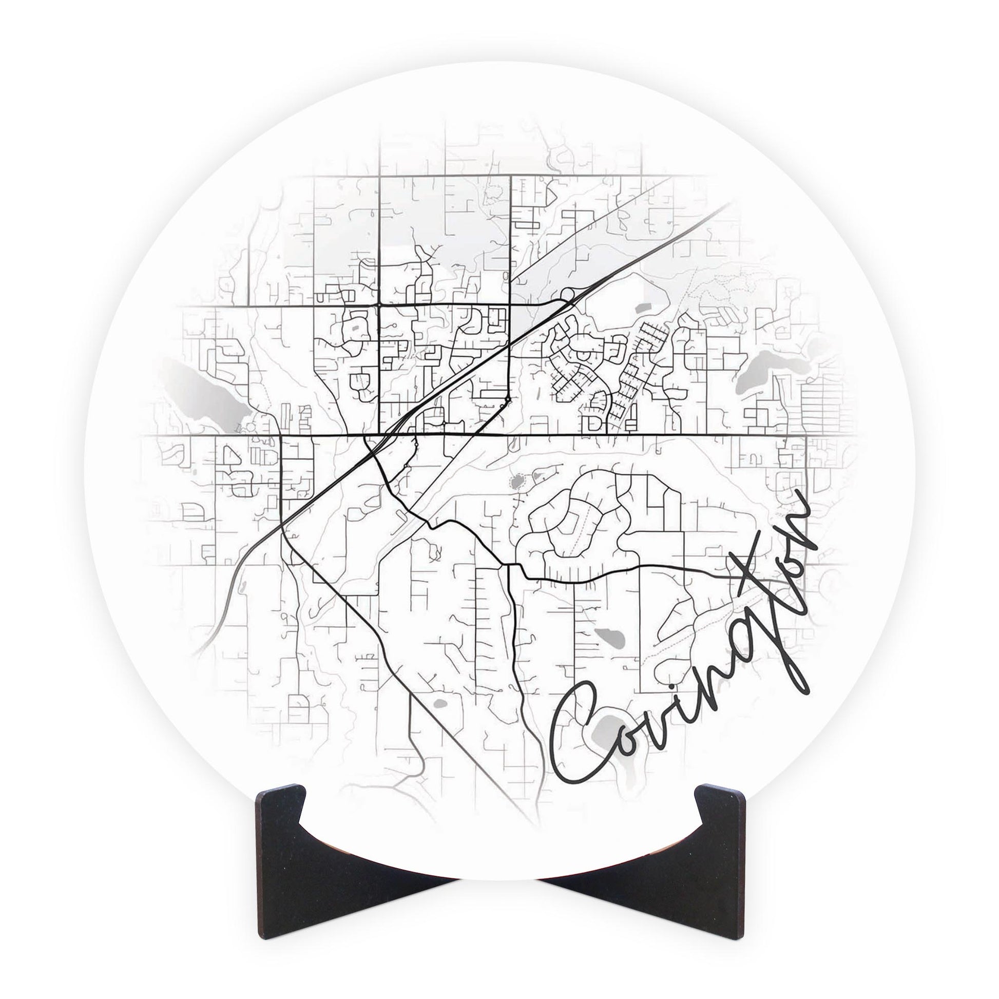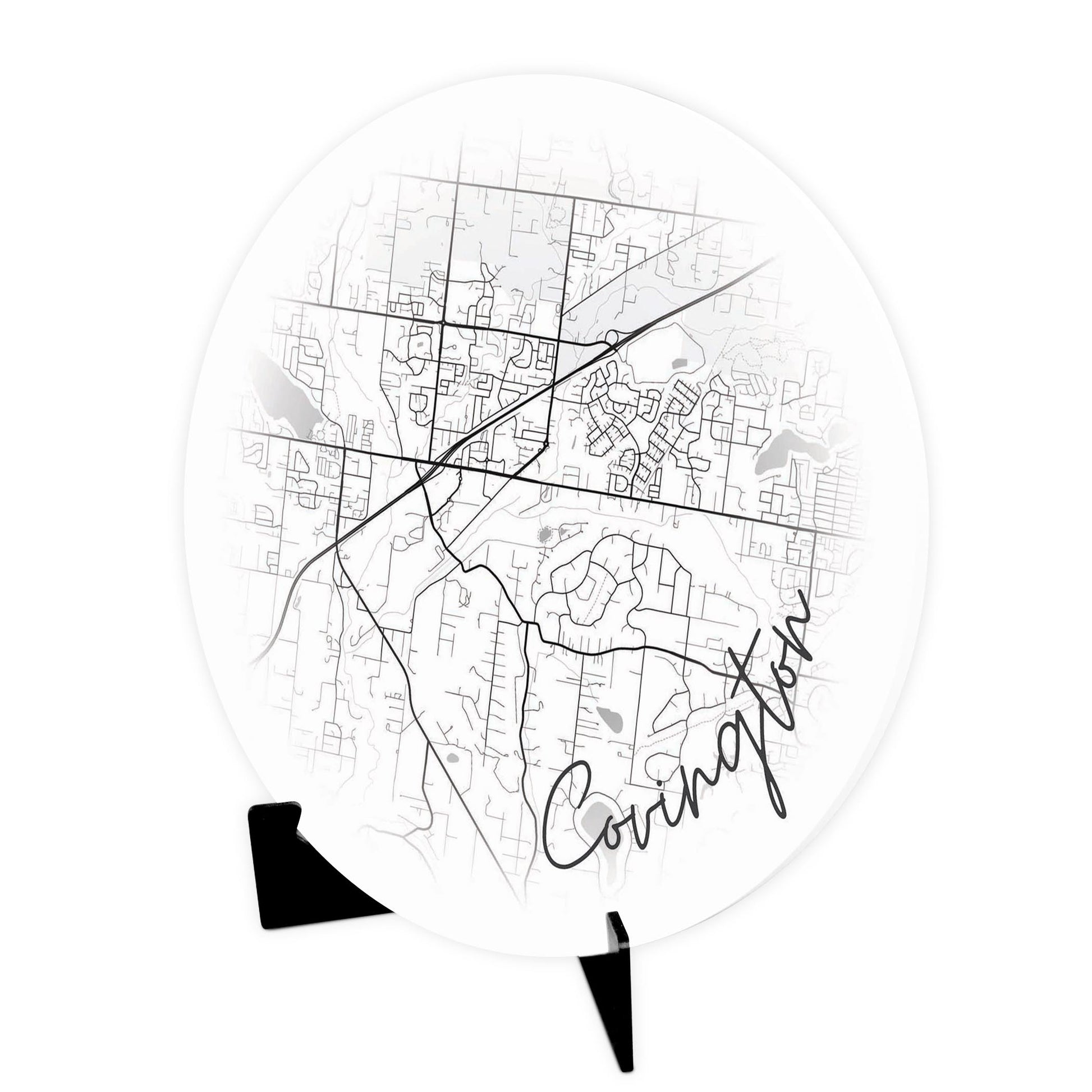 Minimalistic B&W Washington Covington Circle Map | Wood Sign | Eaches | Min 1