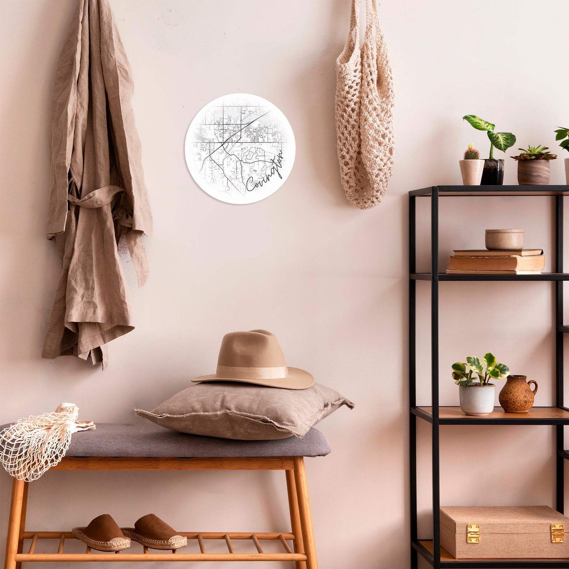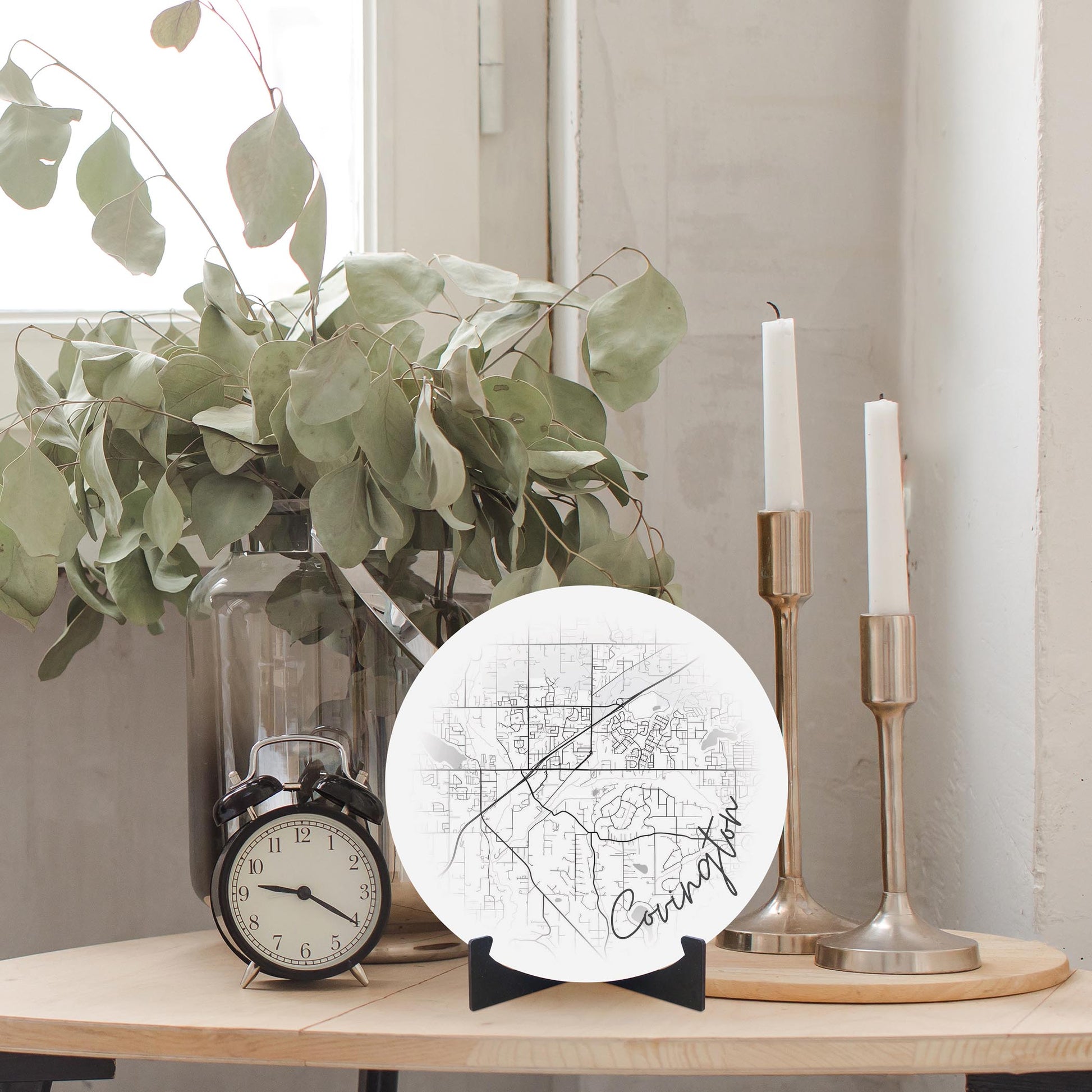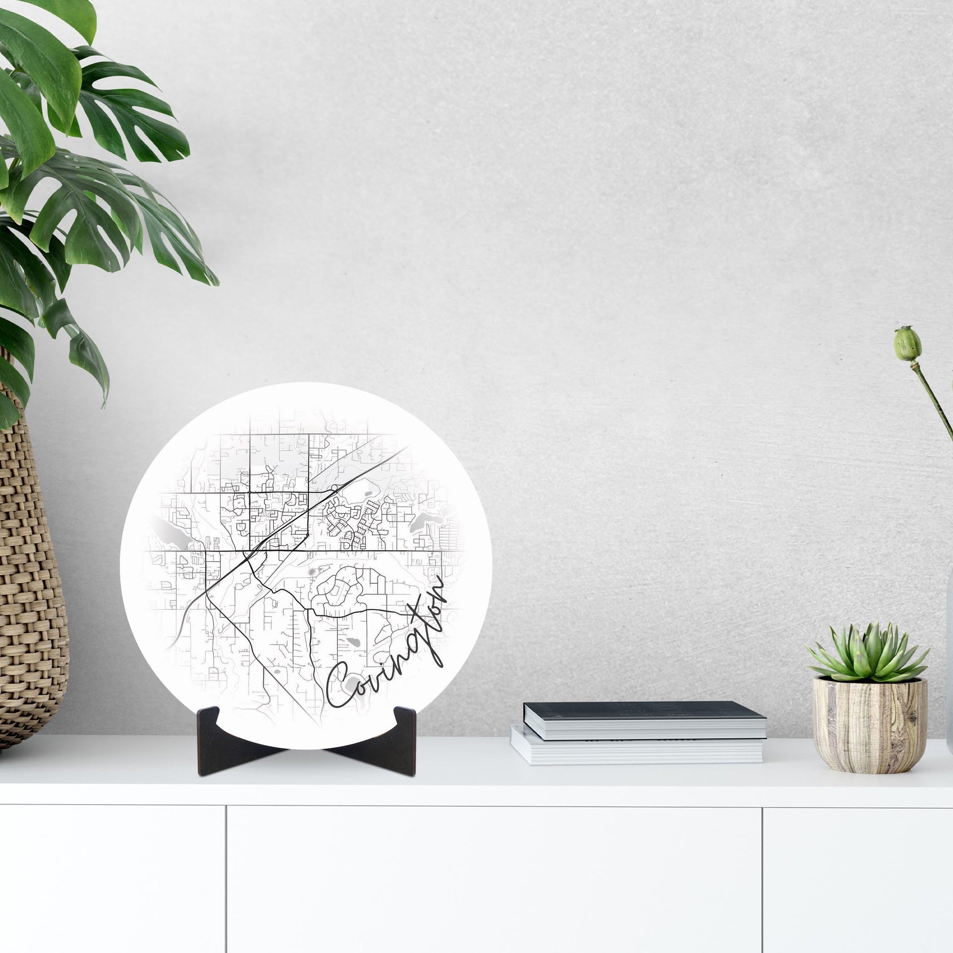 Minimalistic B&W Washington Covington Circle Map | Wood Sign | Eaches | Min 1