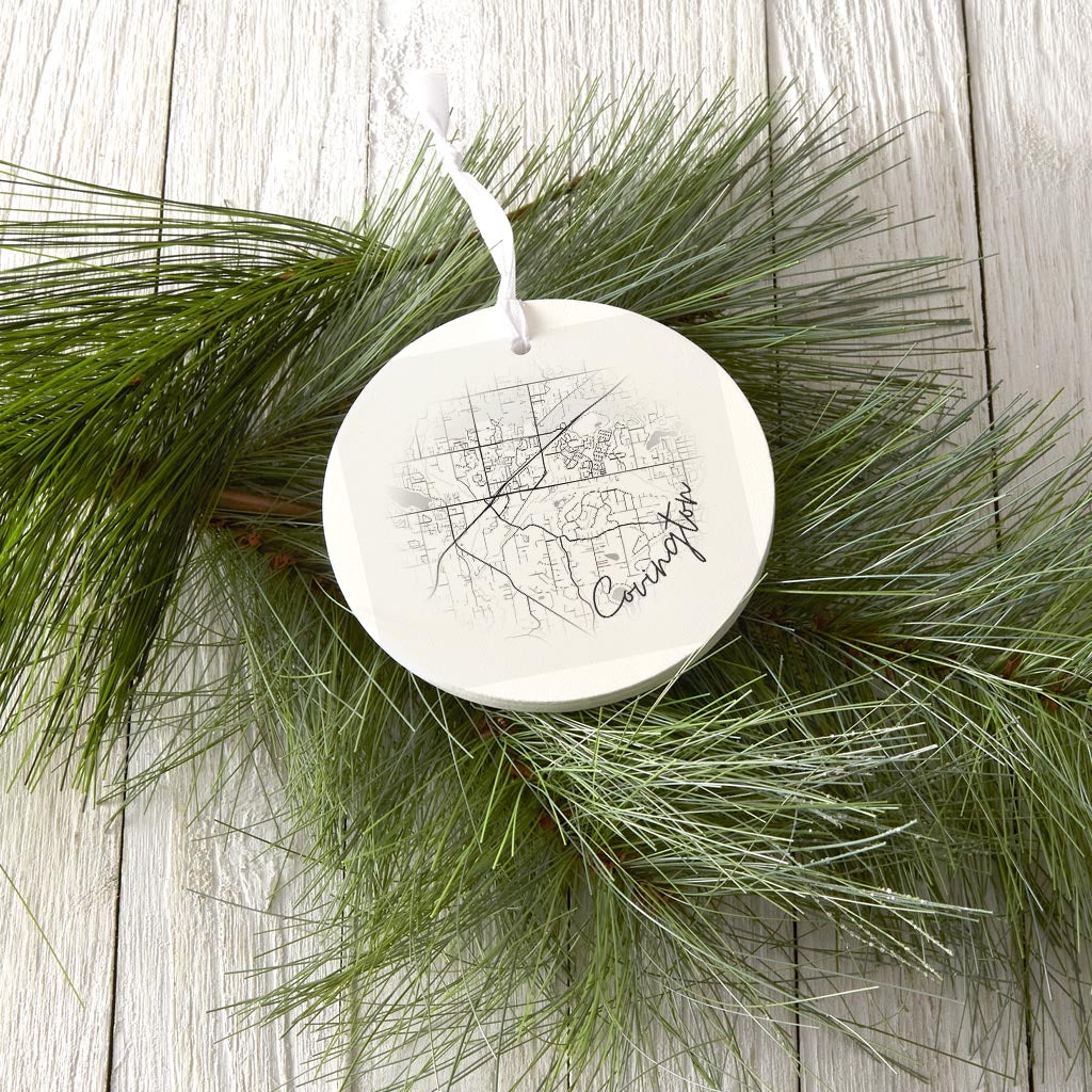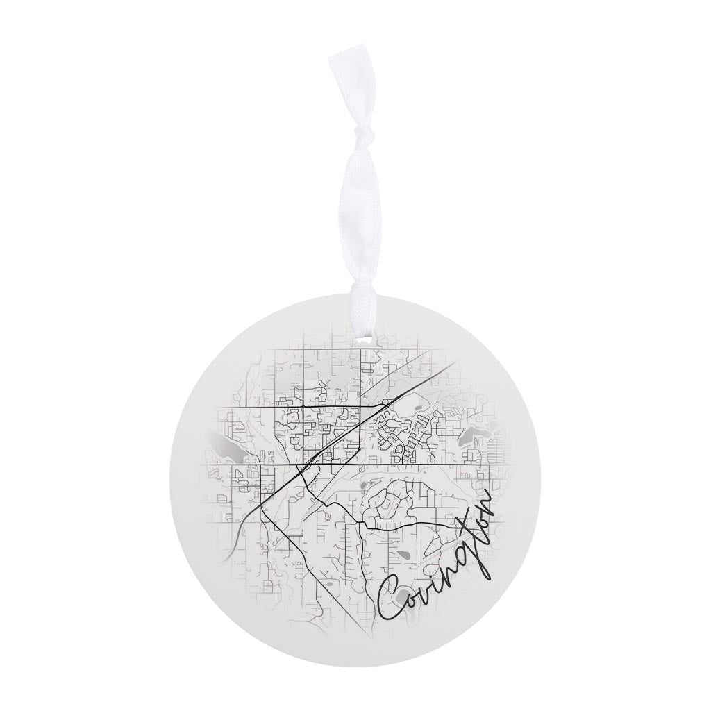 Minimalistic B&W Washington Covington Circle Map | Wood Ornament | Eaches | Min 6