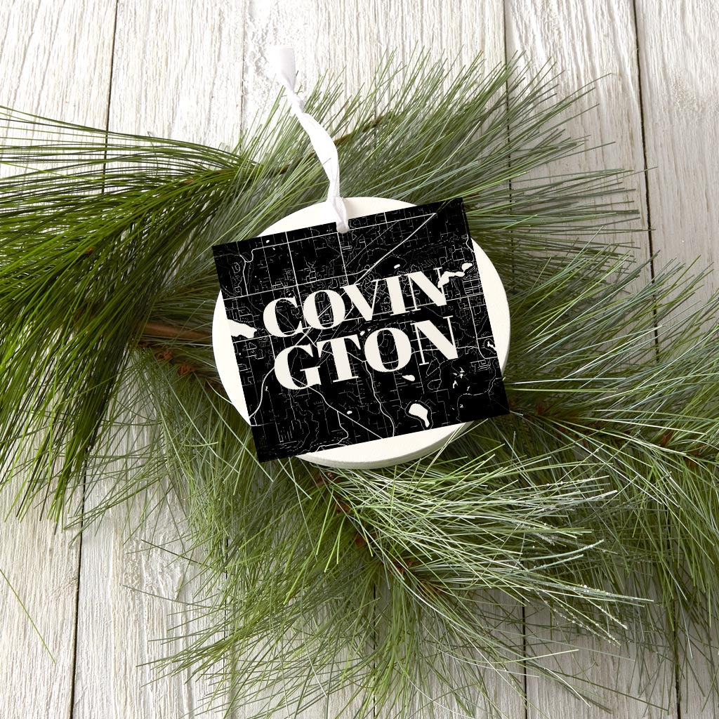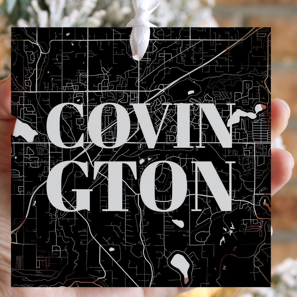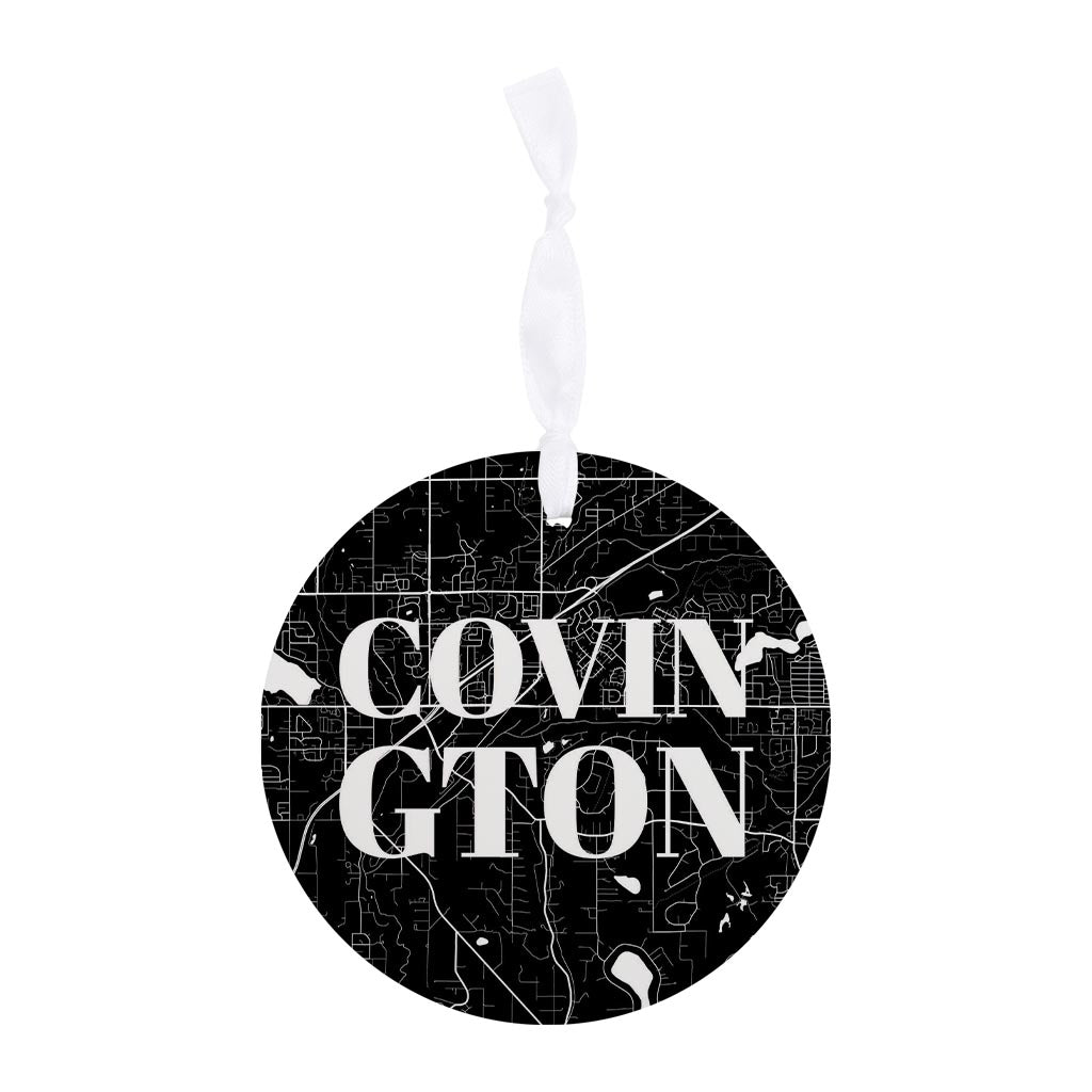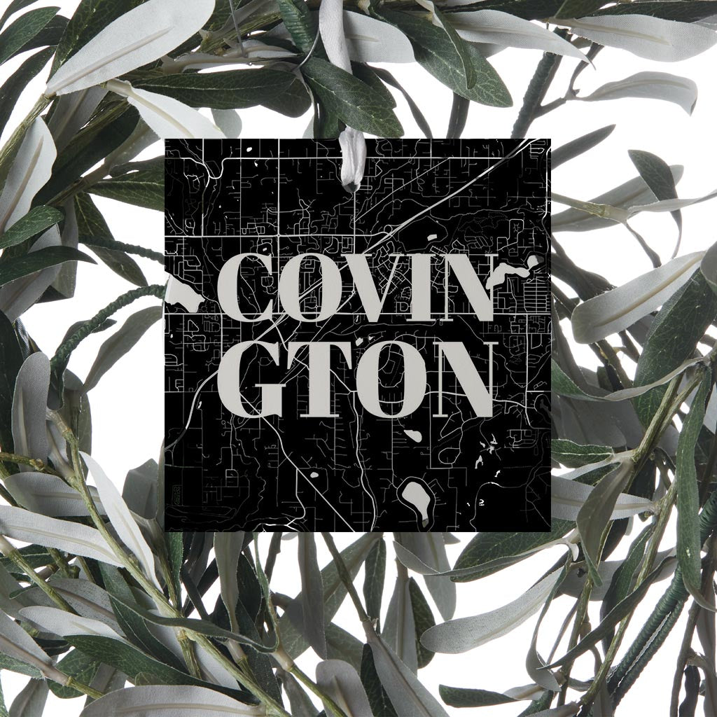 Minimalistic B&W Washington Covington Map | Wood Ornament | Eaches | Min 6