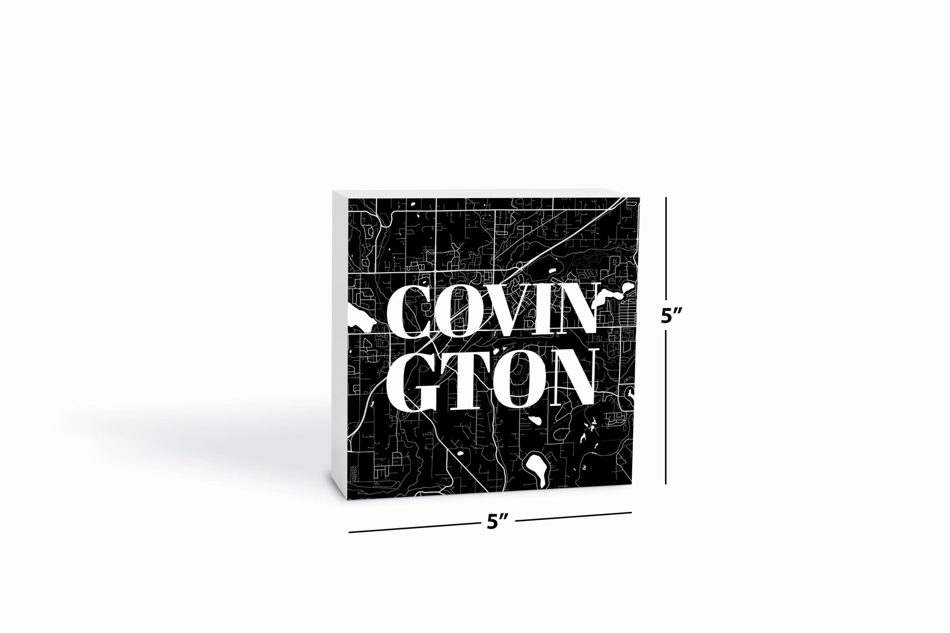 Minimalistic B&W Washington Covington Map | Wood Block | Eaches | Min 4