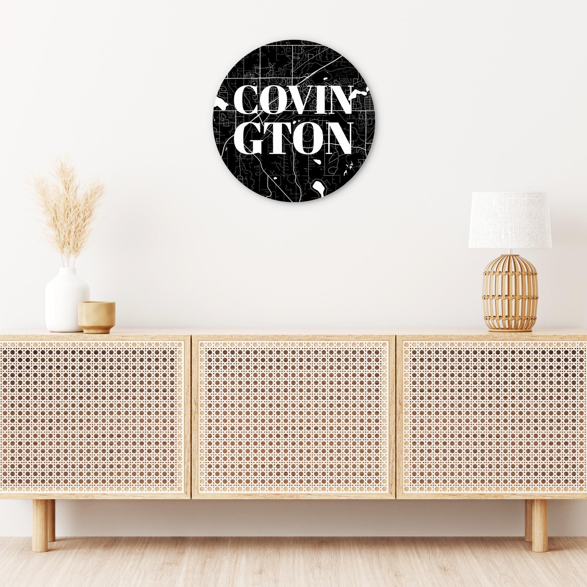 Minimalistic B&W Washington Covington Map | Wood Sign | Eaches | Min 1