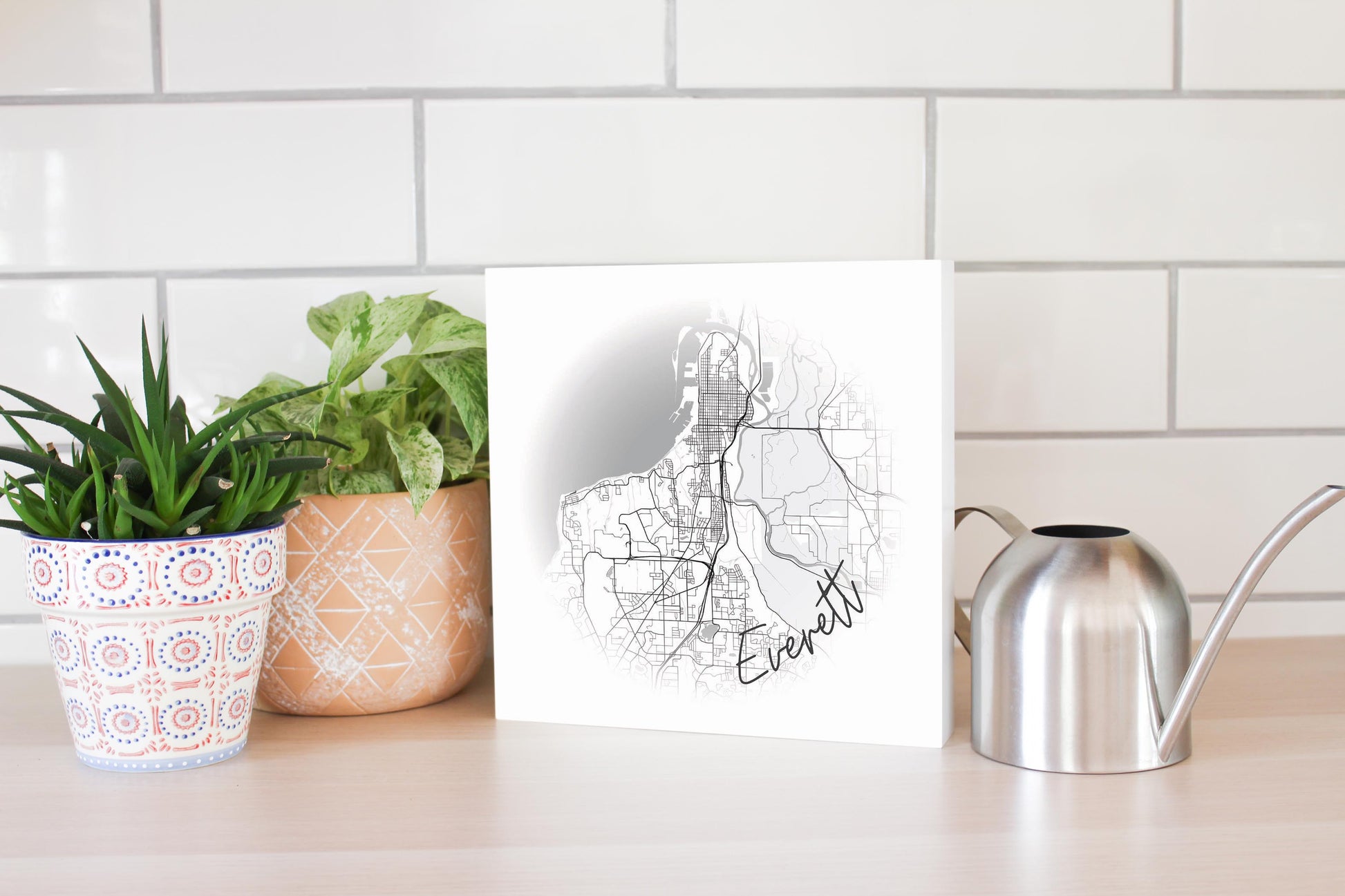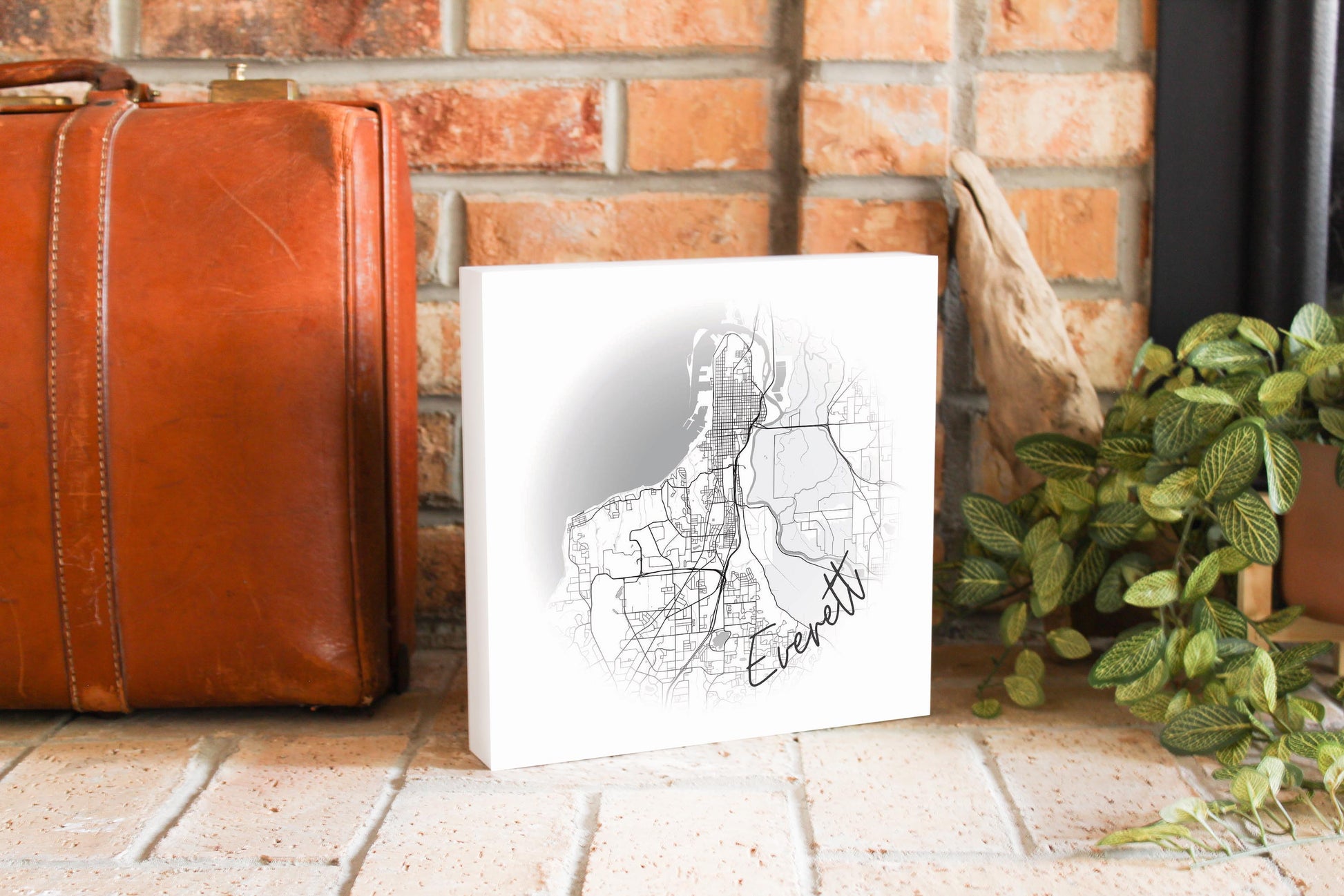 Minimalistic B&W Washington Everett Circle Map | Wood Block | Eaches | Min 2