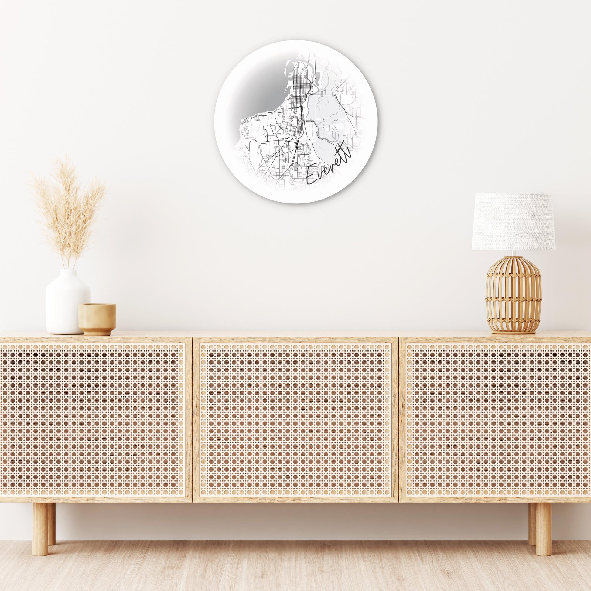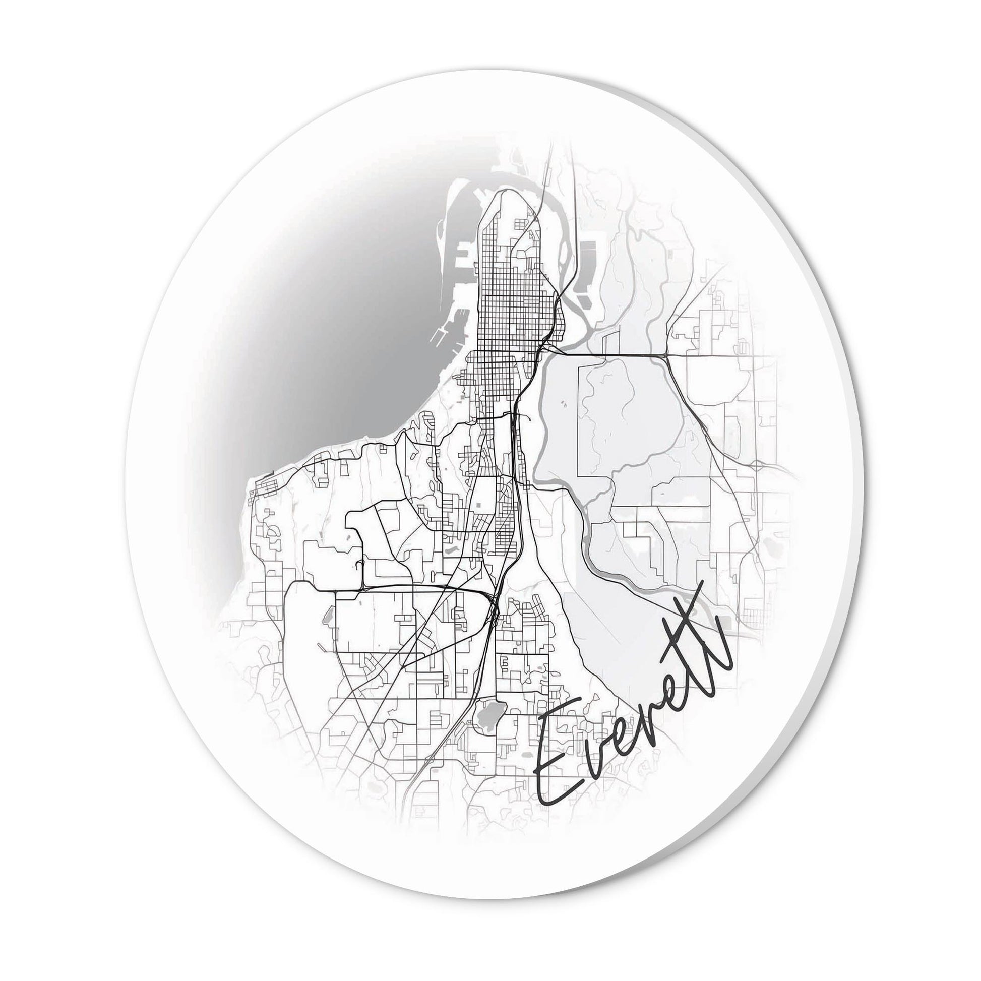 Minimalistic B&W Washington Everett Circle Map | Wood Sign | Eaches | Min 1