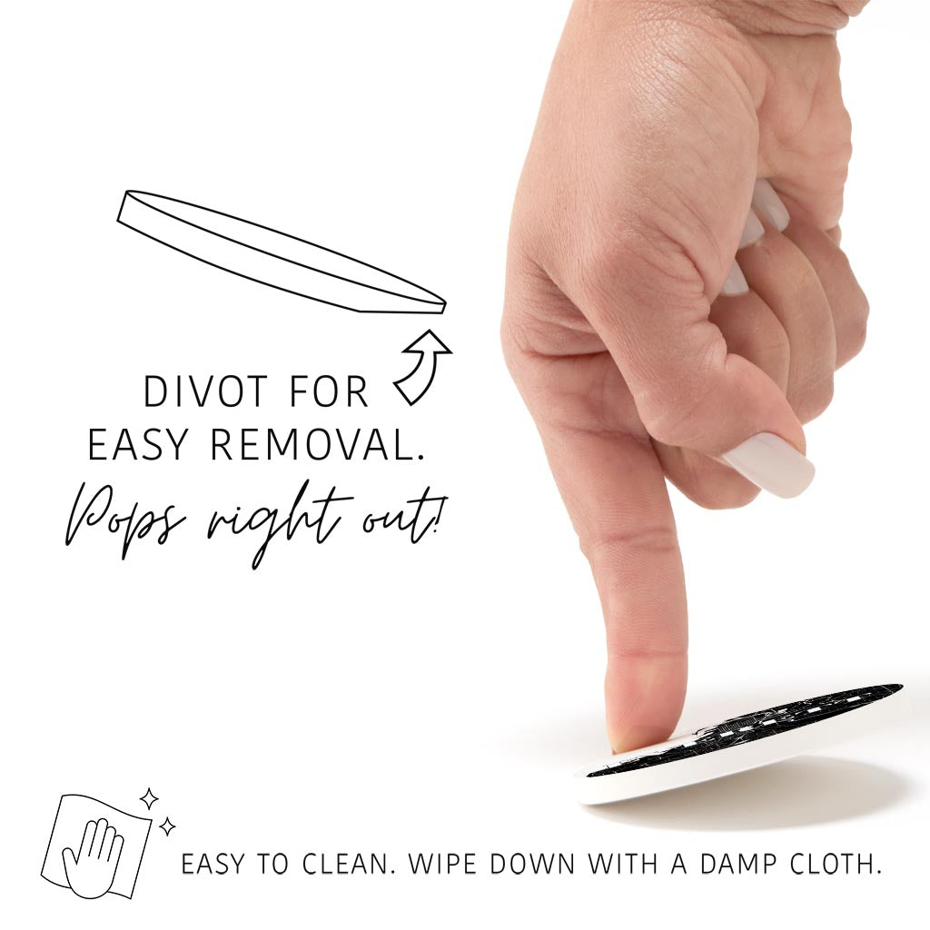 Car coasters are that little accessory that you didn’t know you needed but now consider an essential. Your cupholders are protected and kept clean by absorbing drips from your morning coffee to sticky juice boxes. The strategic divot edge allows you to easily pop it out and wipe clean. No more grime stuck in the cupholder abyss. While car coasters are wonderfully utilitarian, they also inject a little personality and design into the space you spend so much time in. Order a few to mix and match to your mood, season, or newest trends. We love when function and design coincide!