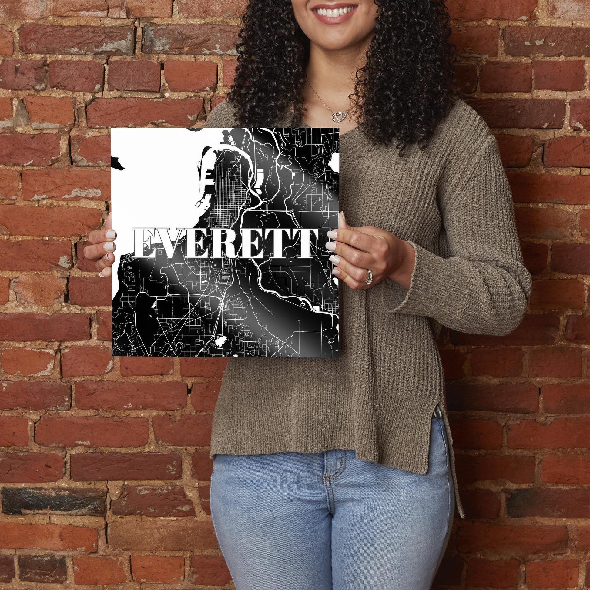 Minimalistic B&W Washington Everett Map | Hi-Def Glass Art | Eaches | Min 1