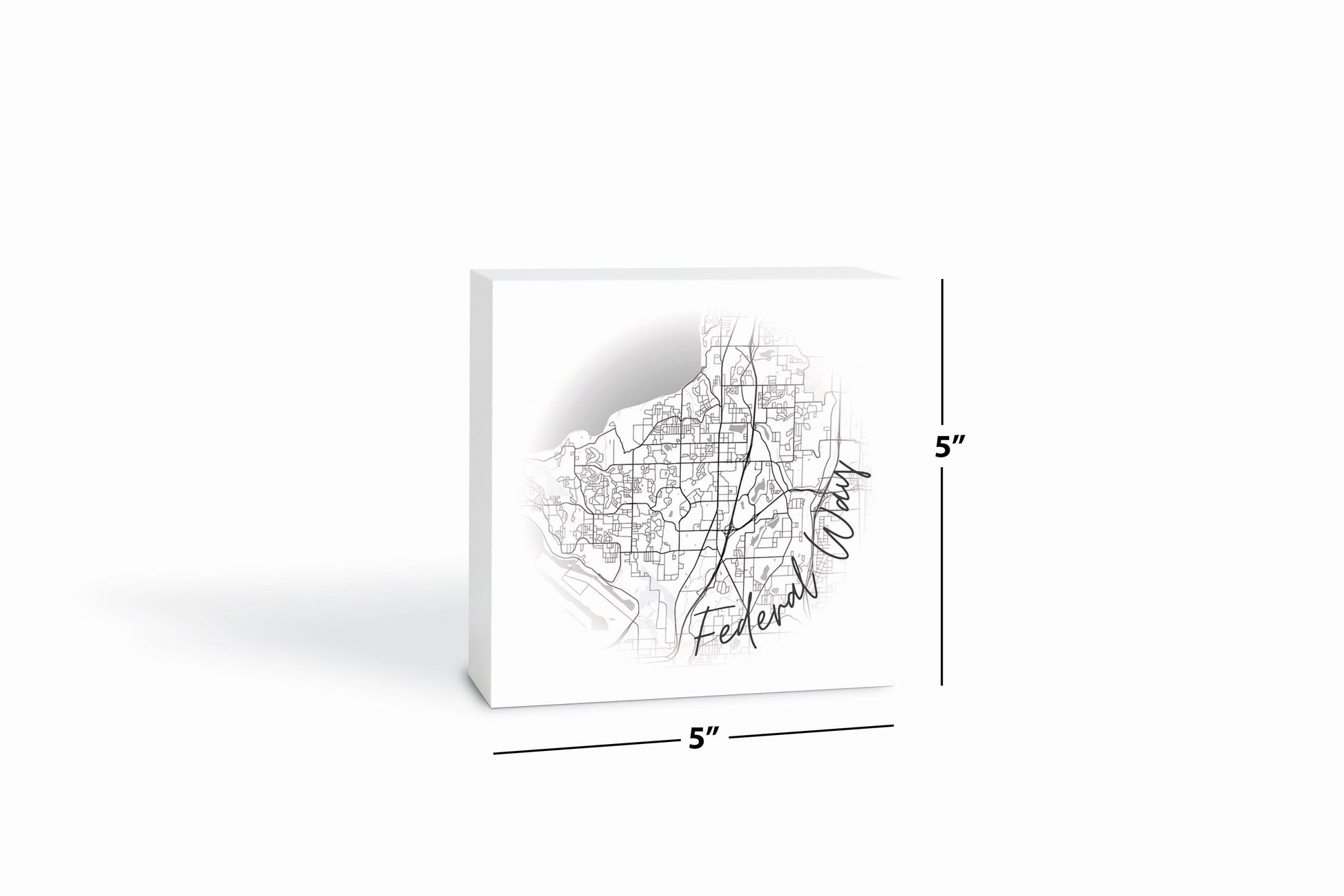 Minimalistic B&W Washington Federal Way Circle Map | Wood Block | Eaches | Min 4