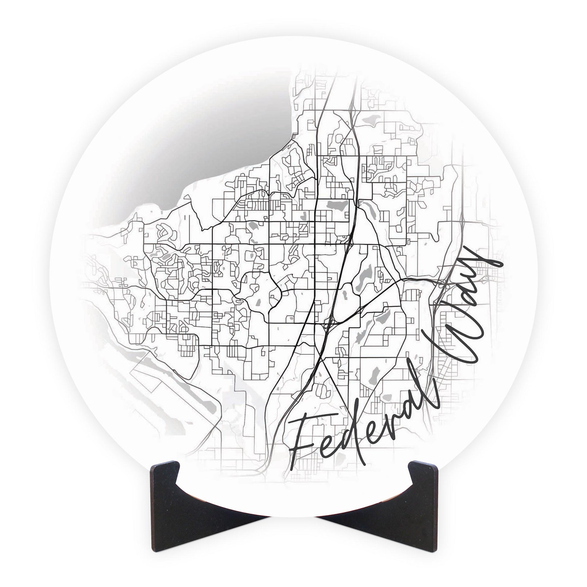 Minimalistic B&W Washington Federal Way Circle Map | Wood Sign | Eaches | Min 1