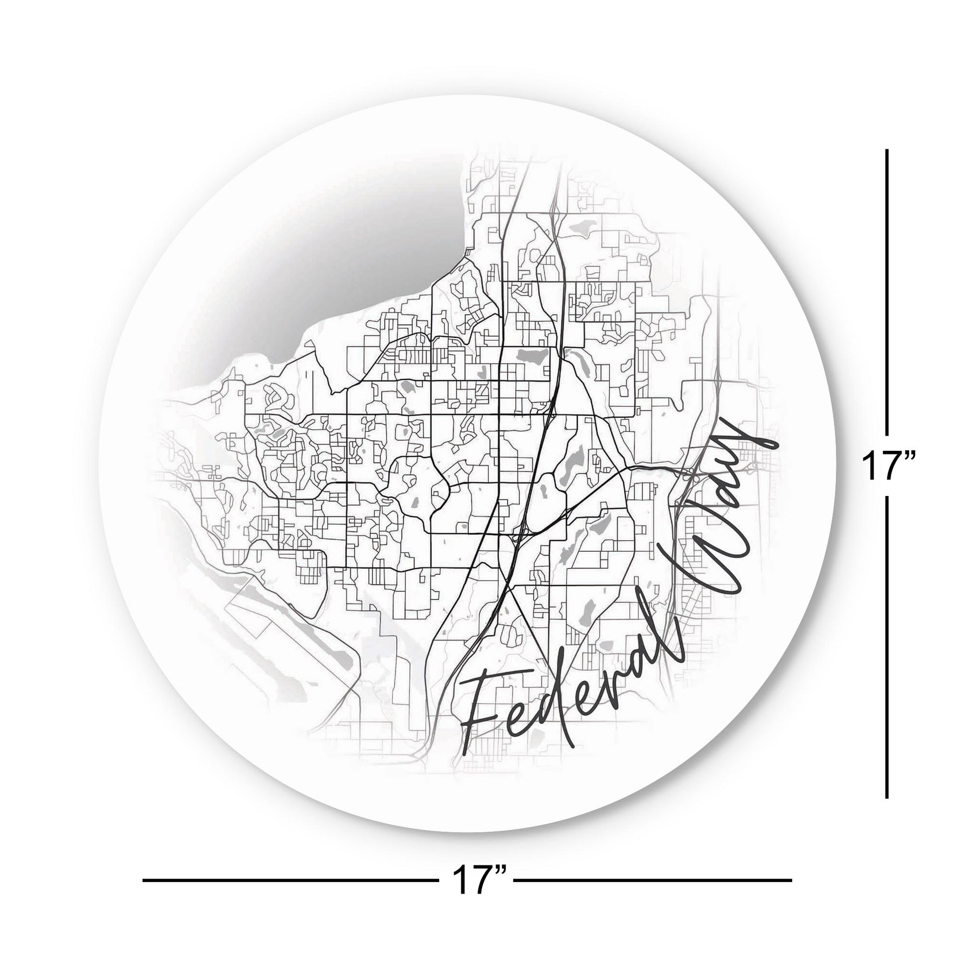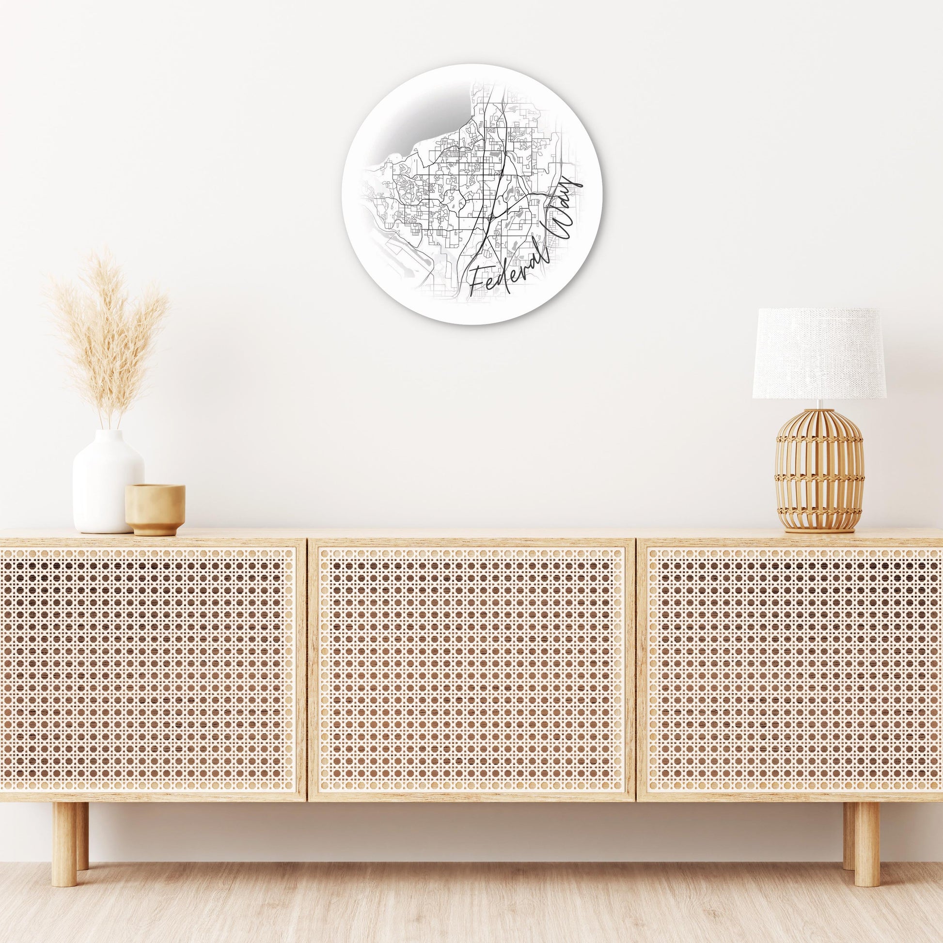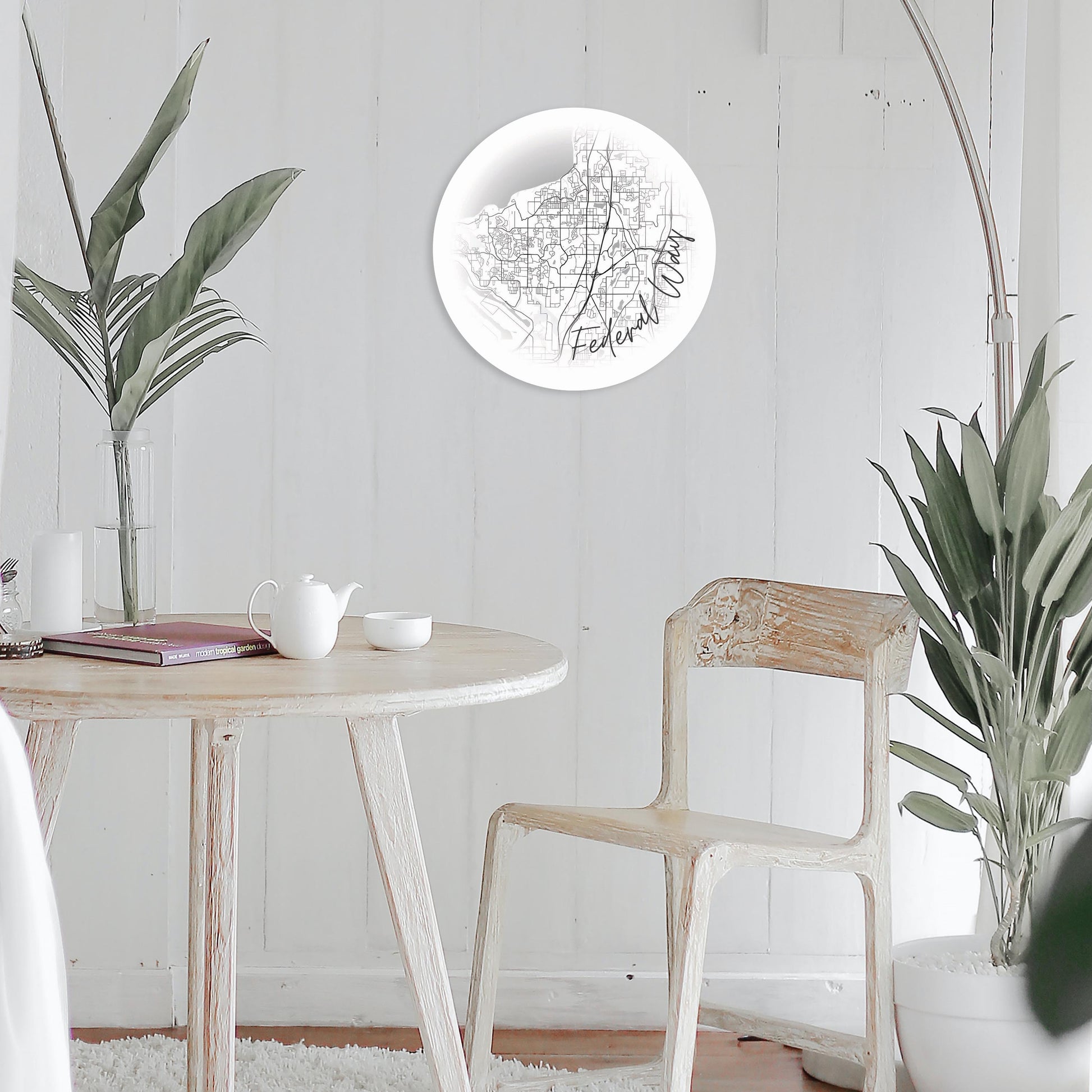 Minimalistic B&W Washington Federal Way Circle Map | Wood Sign | Eaches | Min 1