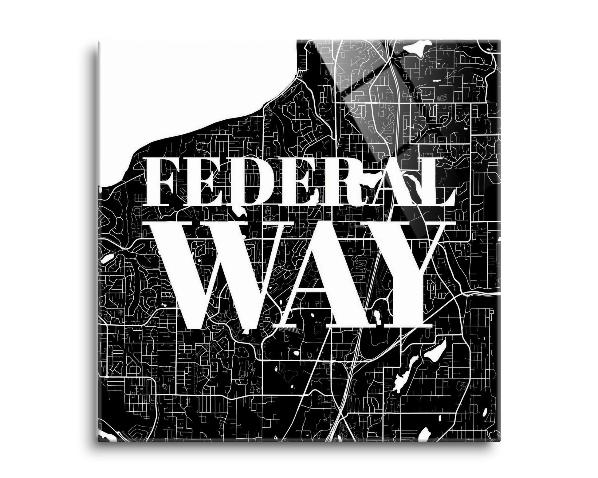 Minimalistic B&W Washington Federal Way Map | Hi-Def Glass Art | Eaches | Min 2